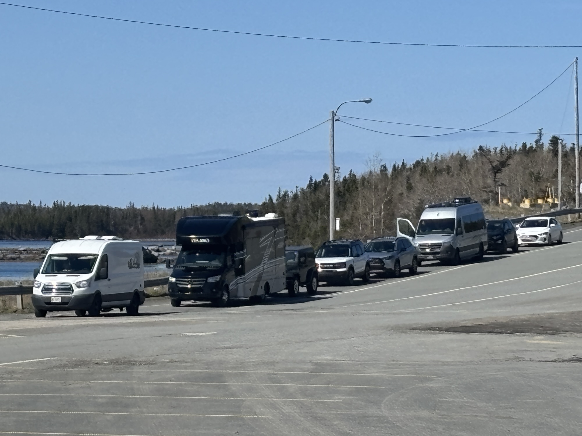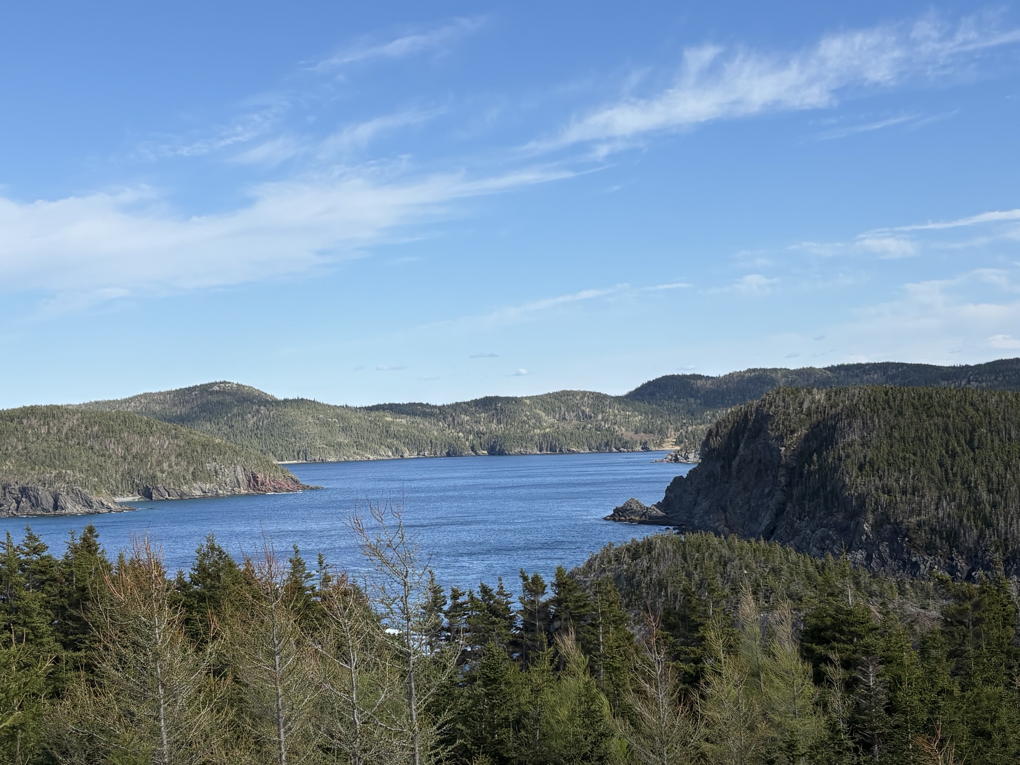 We headed off to Leading Tickles about 130 miles away. (BTW – Tickles is not about making someone laugh! Used only in the Atlantic Provinces of Canada, it means a narrow straight of water or small harbor or bay. It is used a lot around here.) The temperature was climbing to almost 80 deg! And Gail commented about the trees beginning to leaf and turning green! Such a quick change!