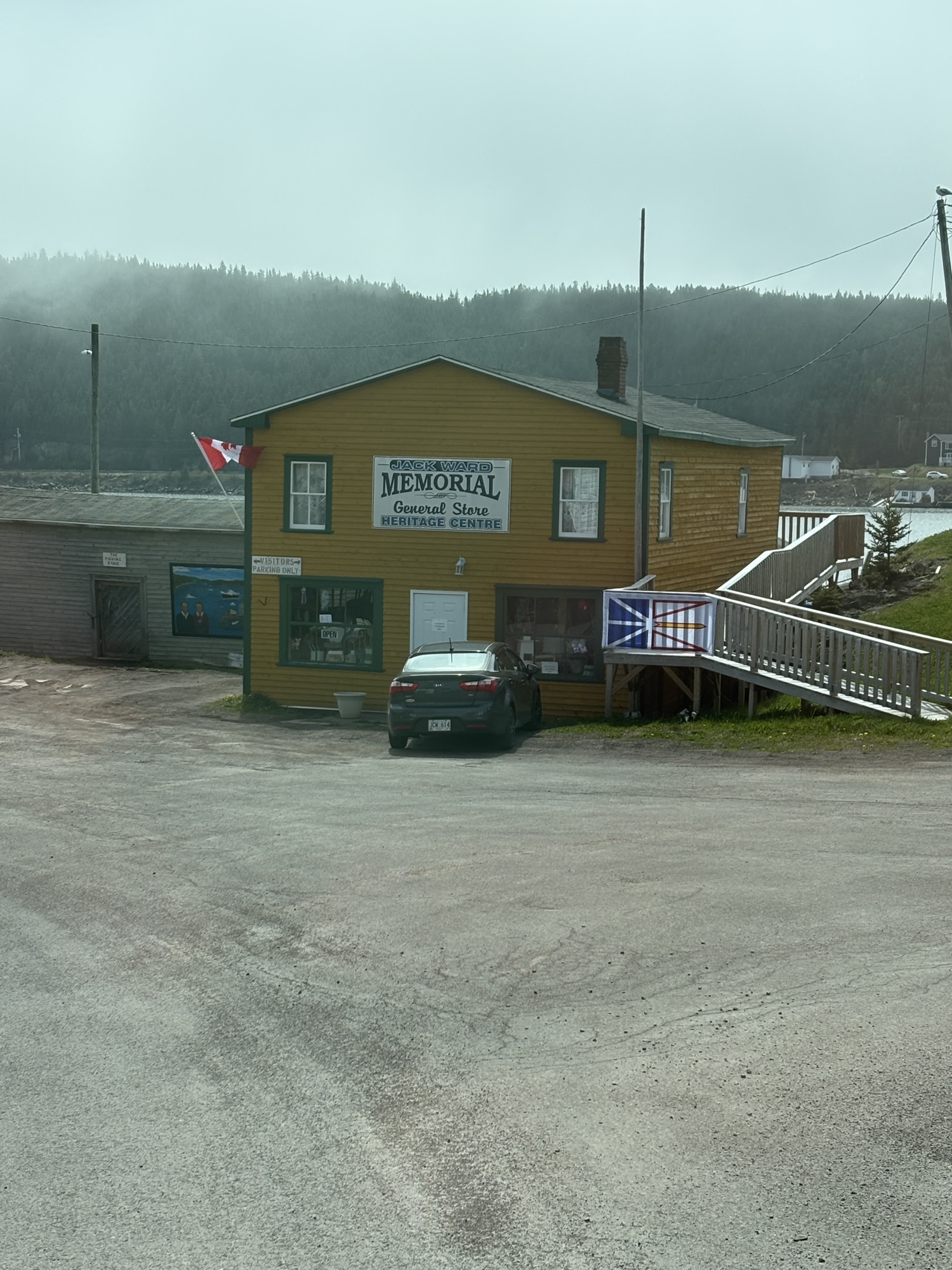 Woke up to fog, wind and cold! Such a change from yesterday. And that put a kibosh on our hiking plans. Couldn’t see anything anyway. So, we modified our plan and just went to see the Heritage Center down at the marina. This is a building that was the general store for the town with the home for the owner upstairs. It is now a craft store and museum of the way that life was in Leading Tickles over the past 100 years. There were some familiar items that both Gail and I remembered from our life as well. Interesting! We must be getting old.