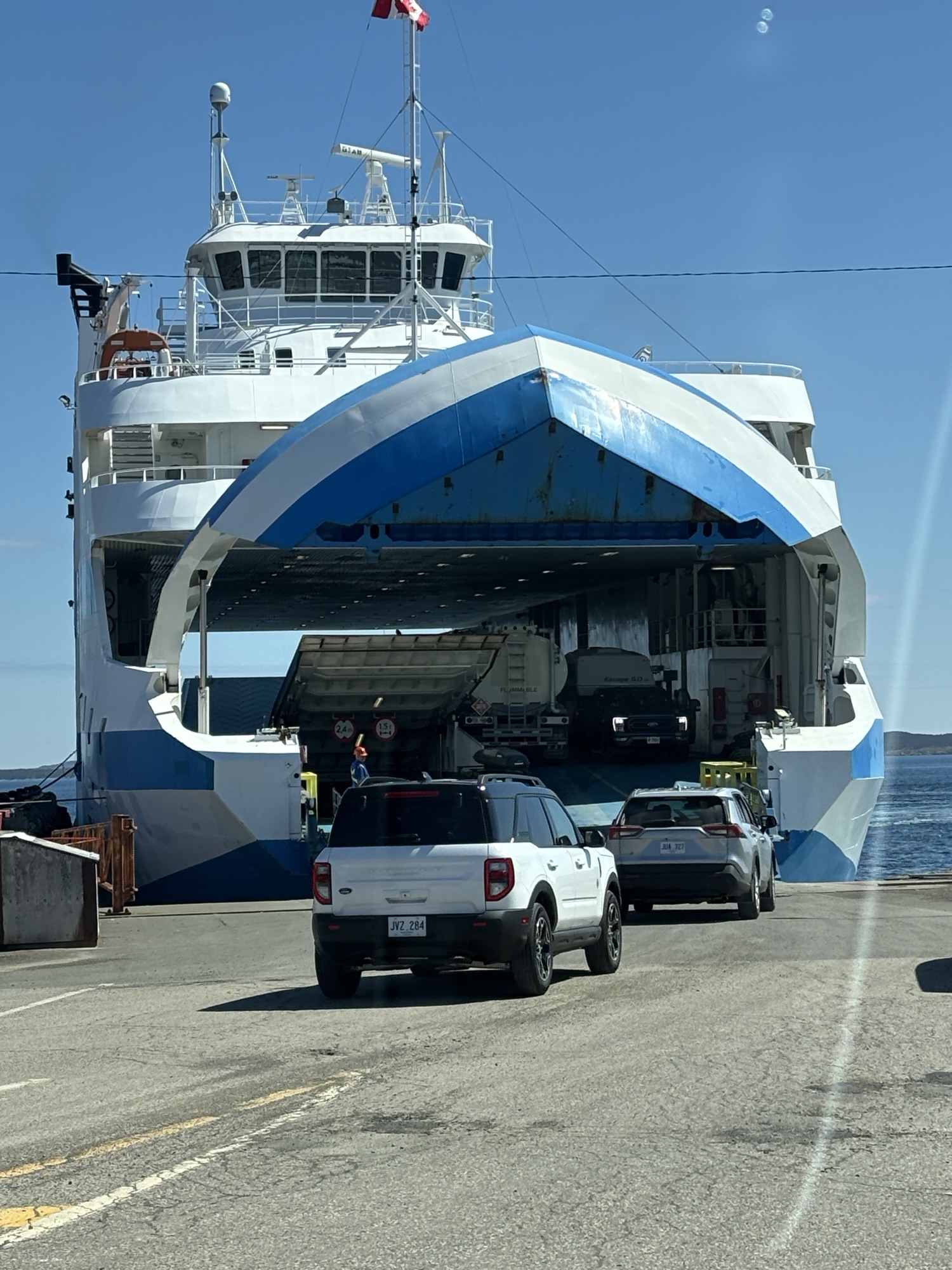 The next morning we were off to Fogo Island. We had a 45-mile drive to the ferry in Farewell and needed to be there an hour early for the 11:30 departure. We arrived and were second in line after a few others that did not get on the earlier ferry. We ended up needing to disconnect the Jeep to make the U-turn once inside the ferry to be ready to exit upon arrival. Once in, we reconnected it and were ready for the departure. The trip across was smooth and only lasted about an hour.