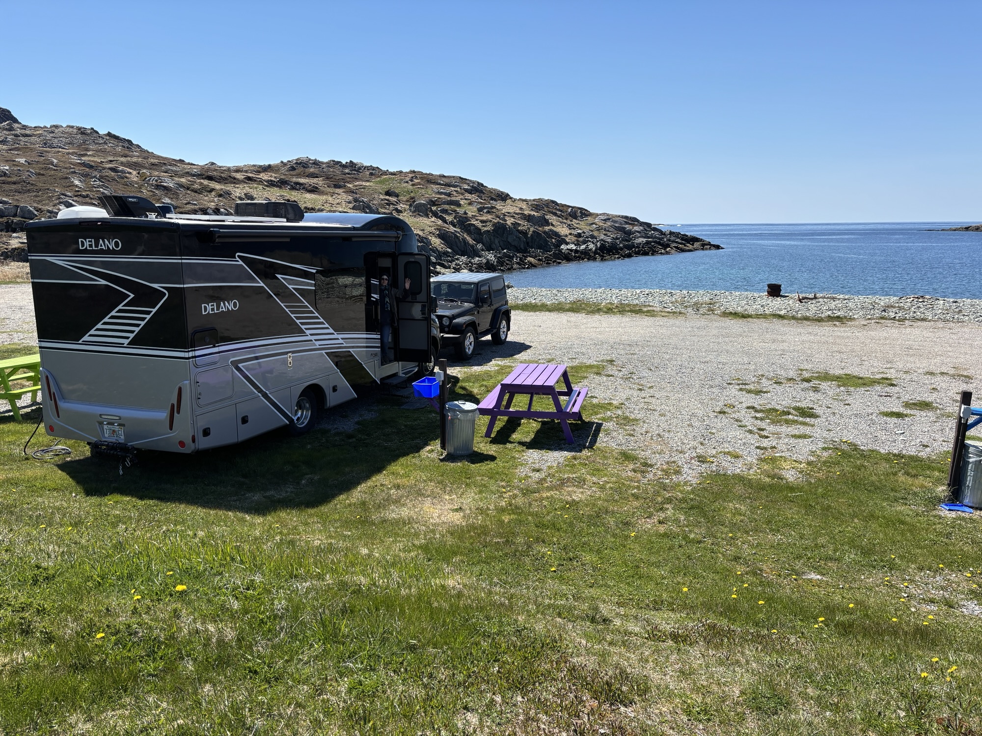 Leading Tickles had been recommended by some RVers we met last year so I added it to the agenda. The drive was easy and partly back on the TCH Hwy 1. It is at the end of the road on another peninsula in Notre Dame Bay. The RV park is called Oceanview and it is that! We got a pad right on the water. Gail commented that it is one of the prettiest spots we have stopped at on the whole trip!
