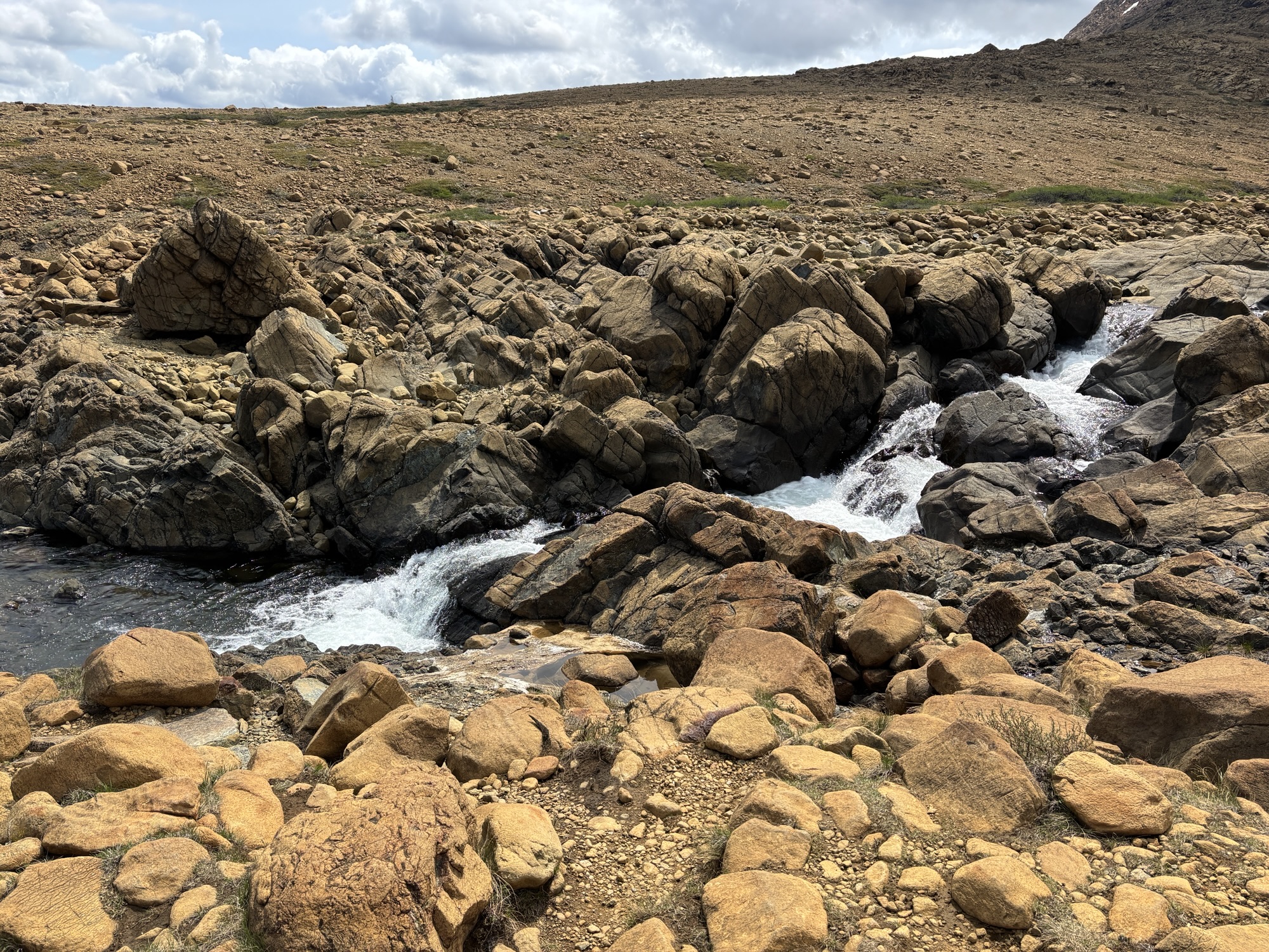 The approach was hard enough. It is about 6 miles round trip with an elevation change of about 1500 ft. It had a lot of very steep sections, and we would stop often. Mostly the trail was gravel-ish with sections of larger rocks covering the lower “dips” for water flow. Later toward the end, the trail became narrow, rocky and more difficult. The views were fantastic. A dramatic waterfall at about the 1/2 mark was quite photographic. And the views, including across the valley to Tableland where the snow was still on the mountain, were fantastic.