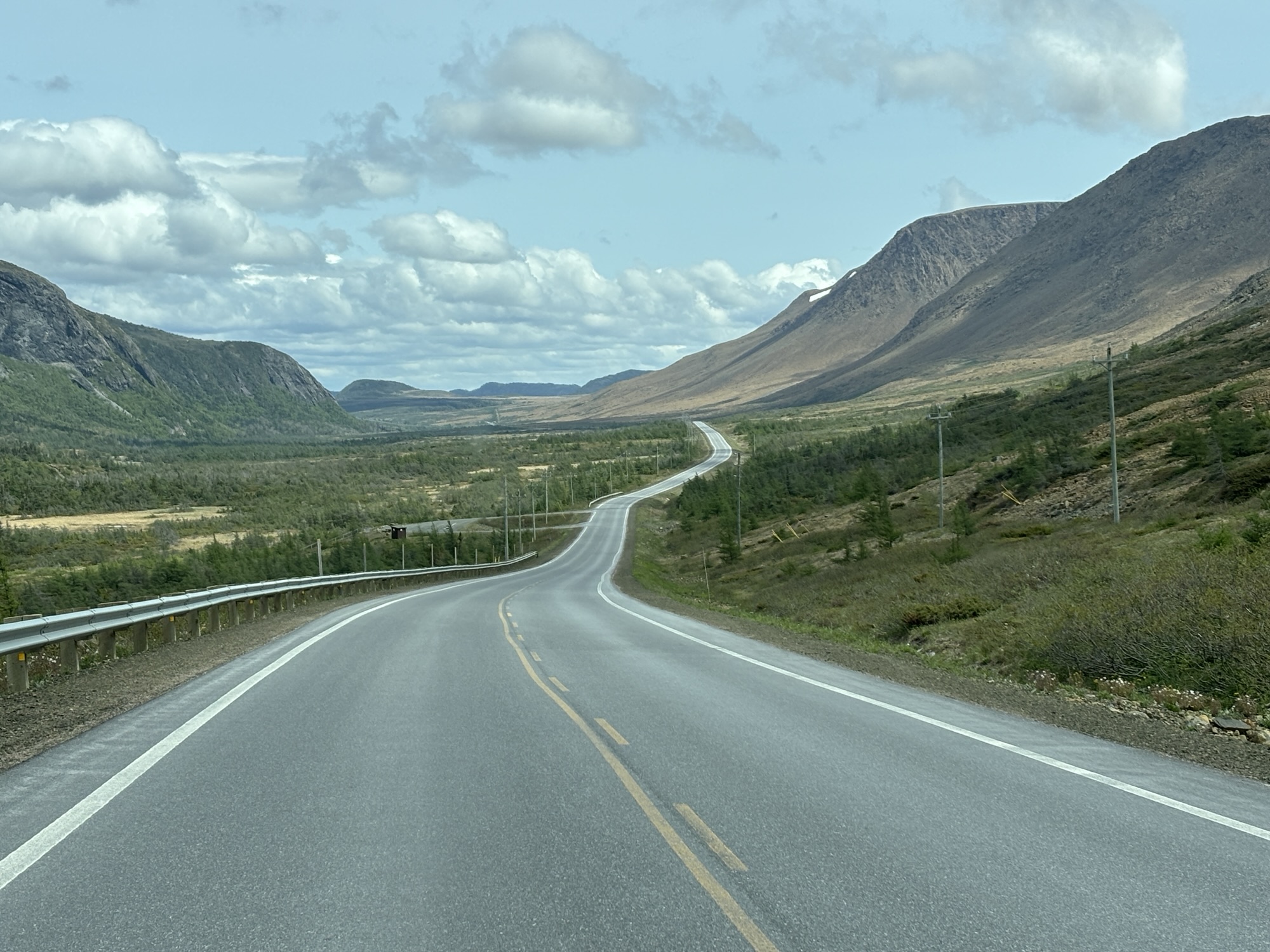 From Leading Tickles, we retraced our route south and picked up the Trans Canada Highway 1 again. On this leg, we were to stay on the TCH until we reached Gros Morne Park, but the distance was to be about 240 miles. We normally like to travel only 3-4 hours a day and at the safe speed for the RV at 55-60 mph (even with the posted speed limit of 62 mph (100 kph)), the distance was a little more than we wanted.