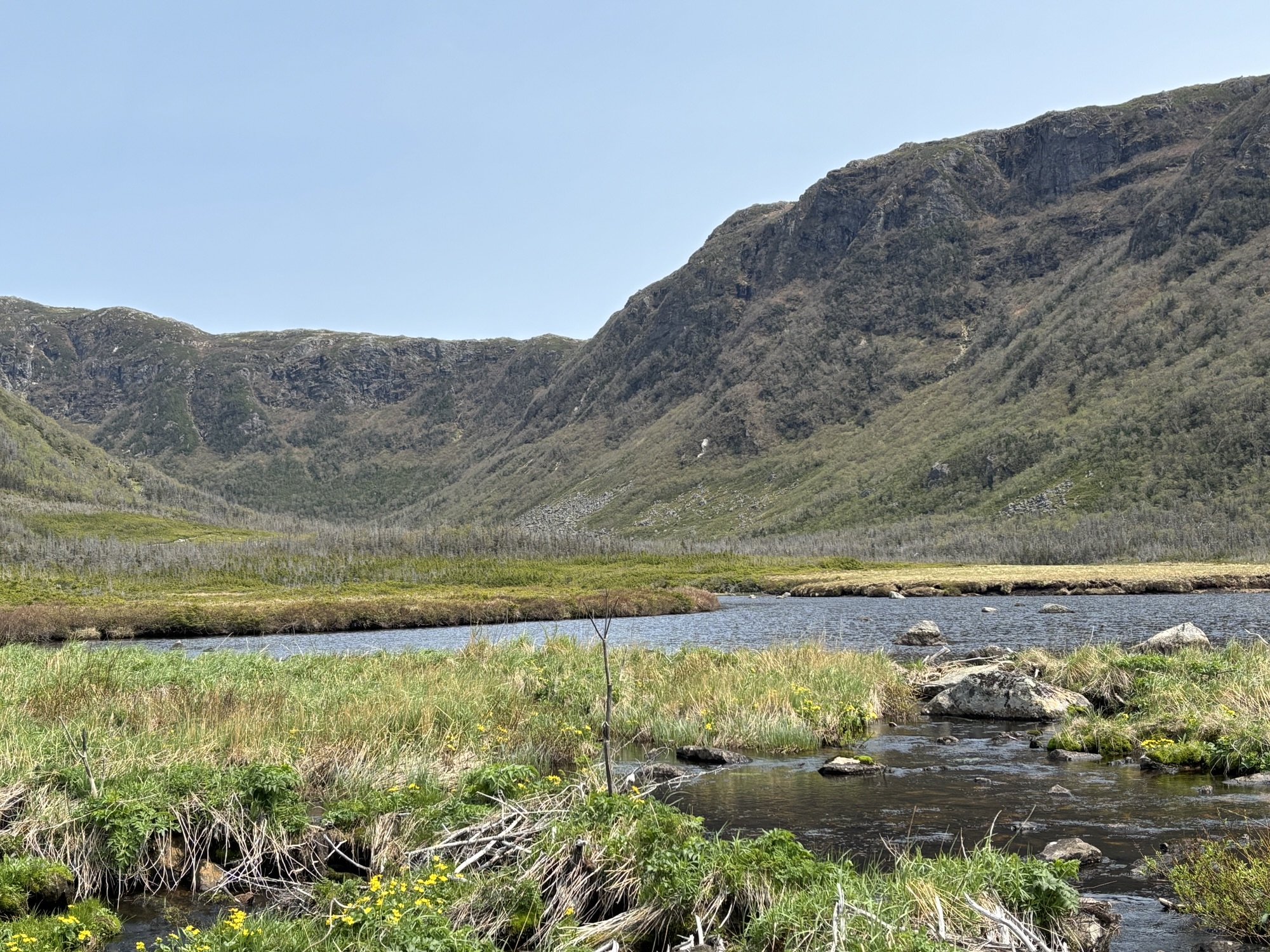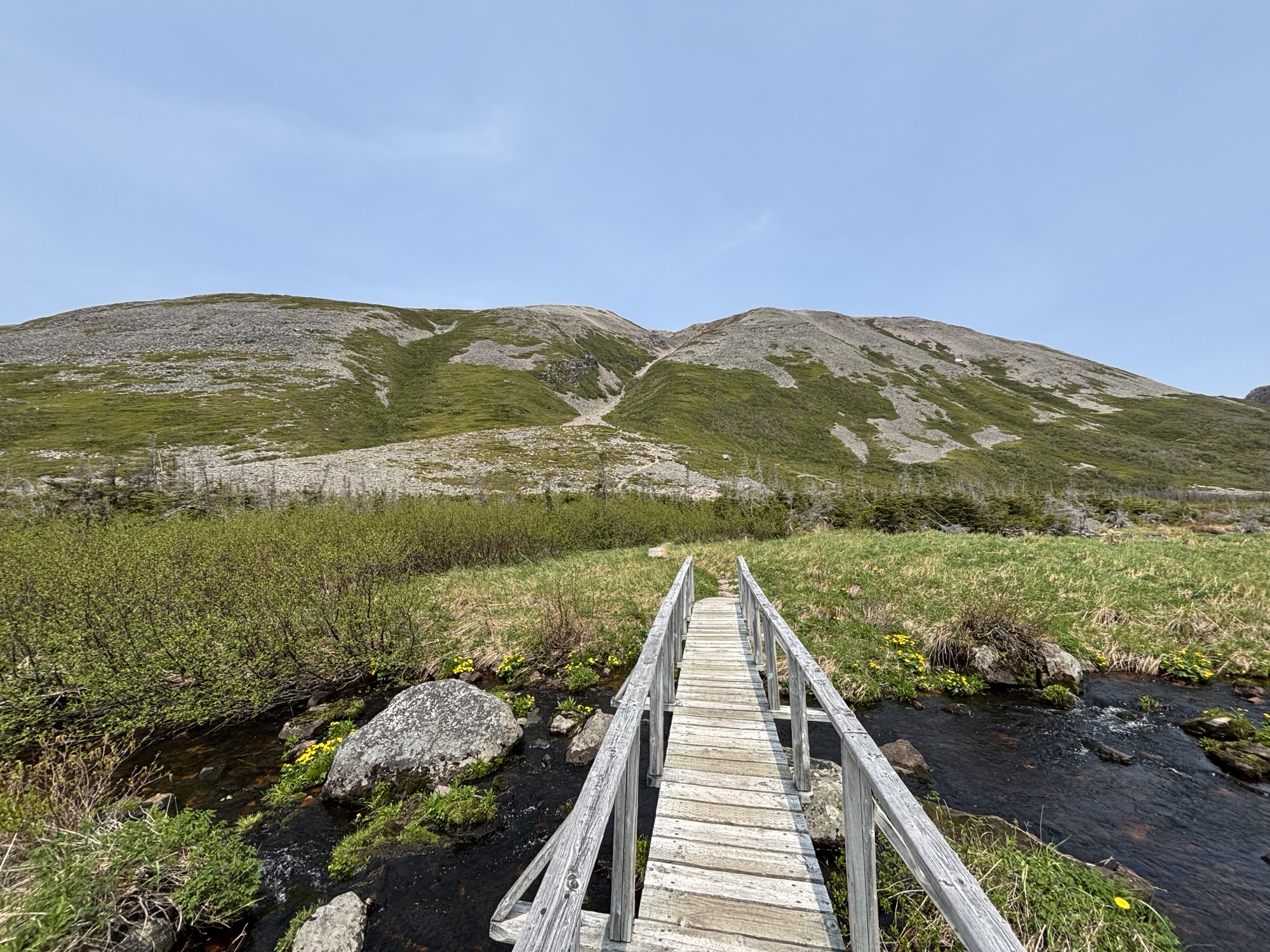 And finally, the weather was agreeable, and we headed over to the parking lot for the hike on Gros Morne. The hike is broken into two sections: the Approach and the Summit. We were planning only the approach section which is classified on the high side of Moderate. The summit is very difficult, long and somewhat dangerous. And until June 27, it is closed for wildlife safety. So, we were not even tempted to try it.