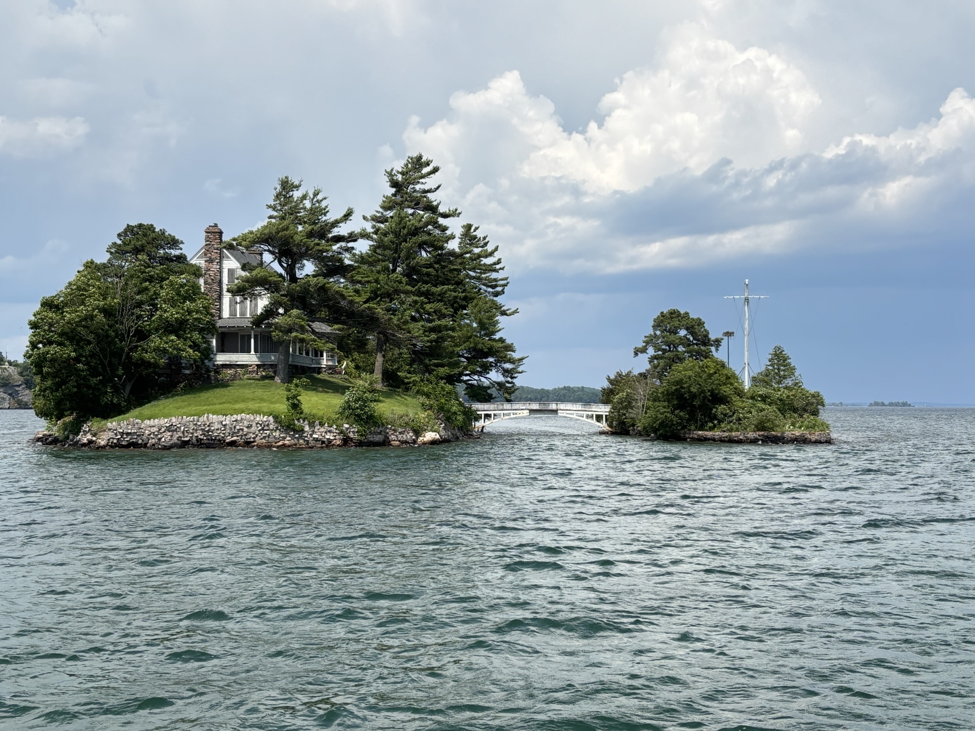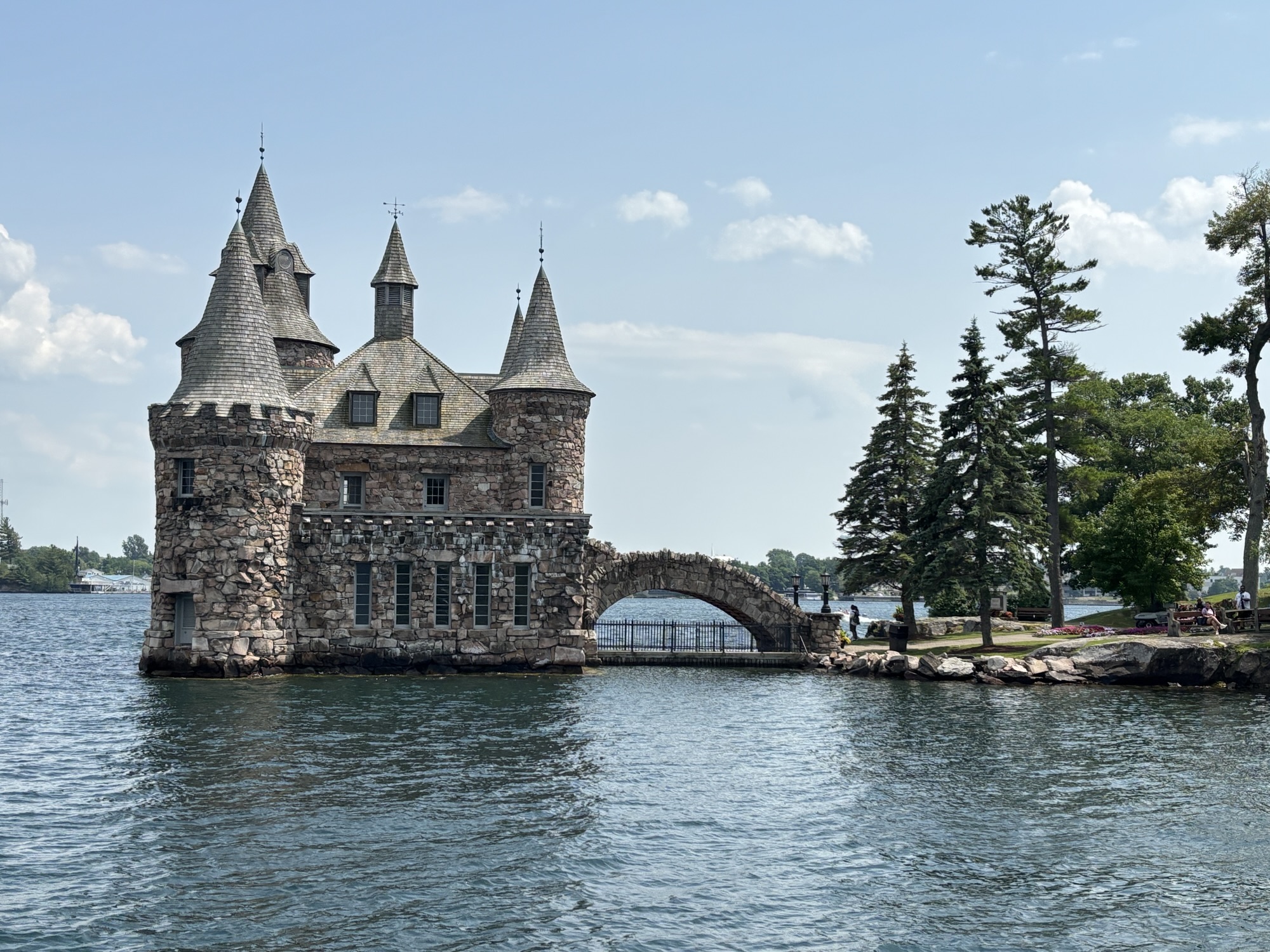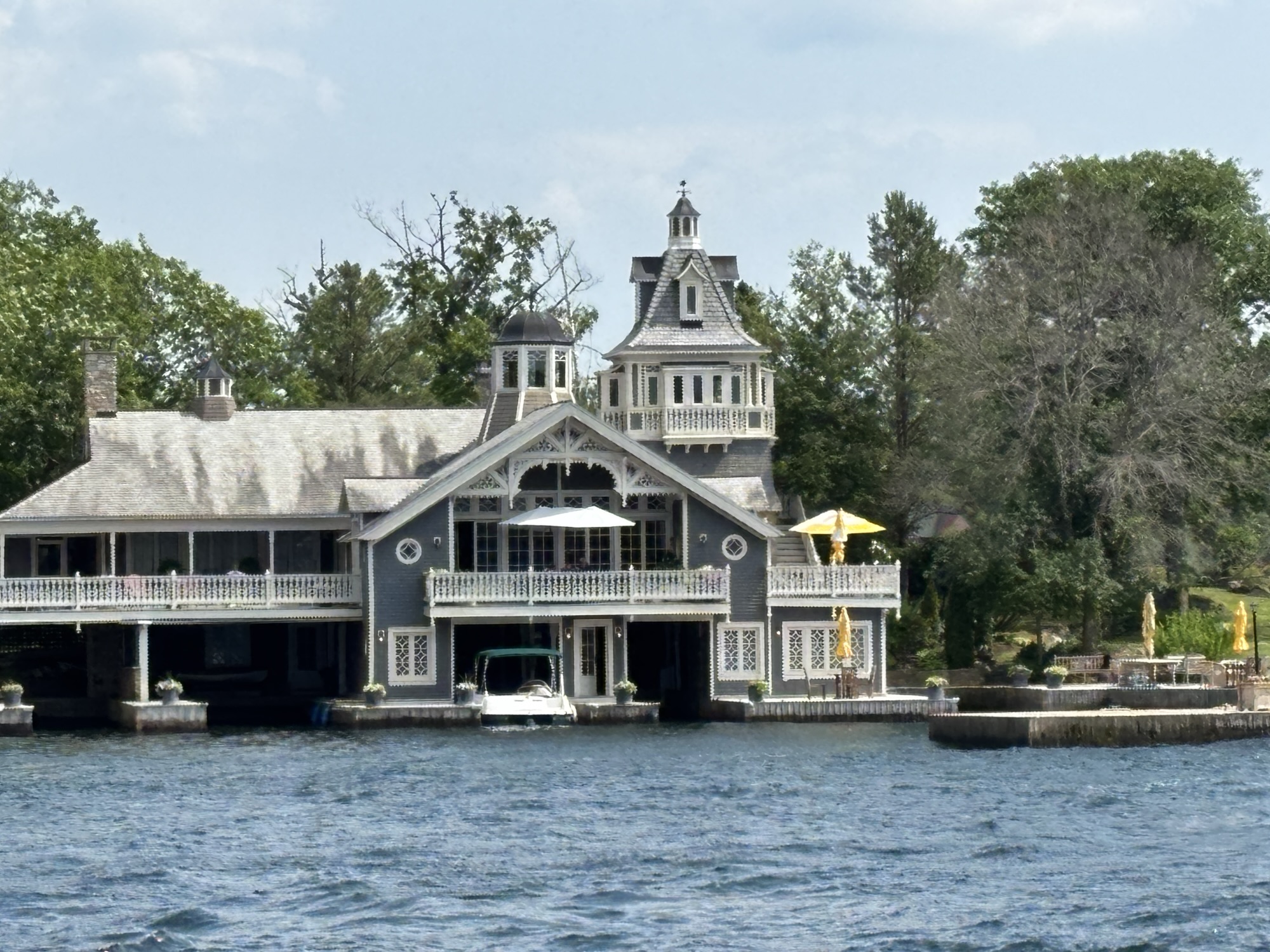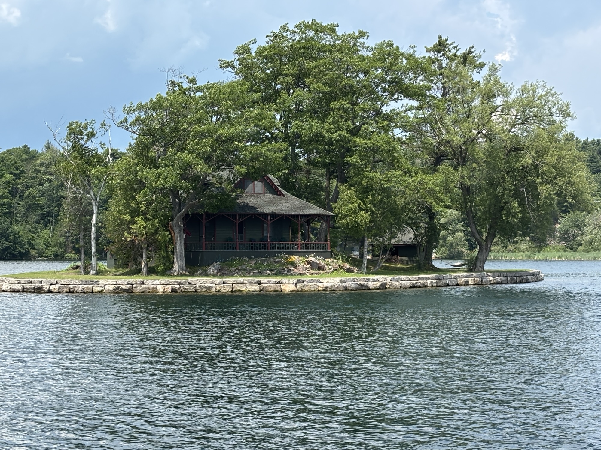 The area is called 1000 islands, but there are actually over 1800 islands. The most famous is an island with a home that was built by William Boldt who owned the Waldorf Astoria and other hotels at the time. He was building the Boldt Castle for his wife and he actually had the island modified into the shape of a heart. It is called Heart Island! It was almost finished when his wife died. He never set foot on the island again and the construction was halted. It went into disrepair and vandalized until it was purchased as a regional park and semi-restored although it was still never finished.