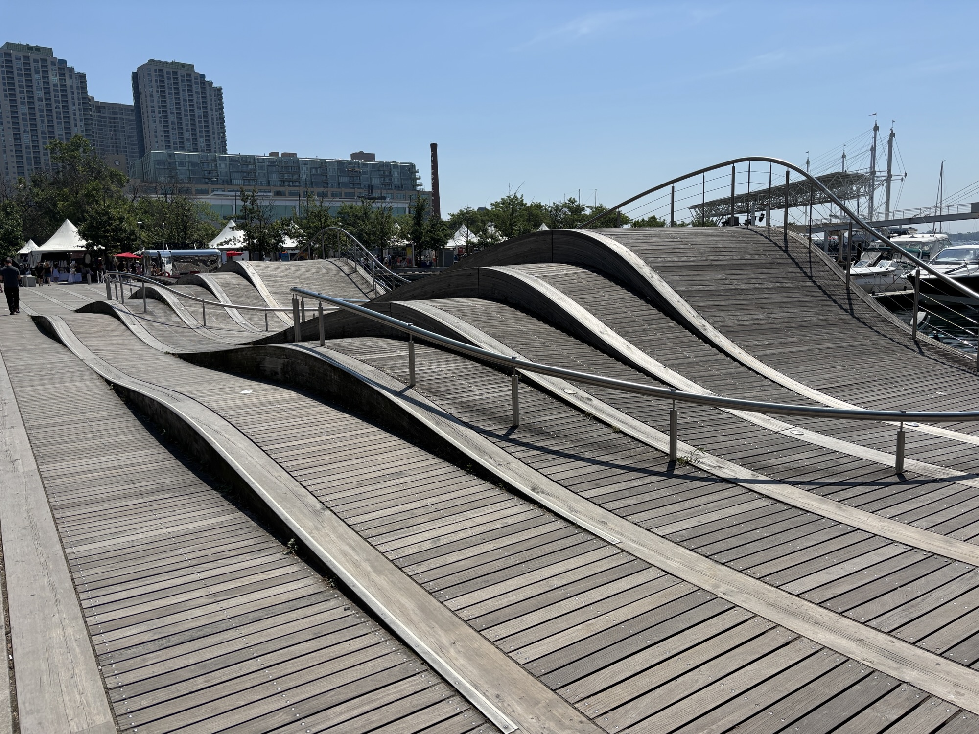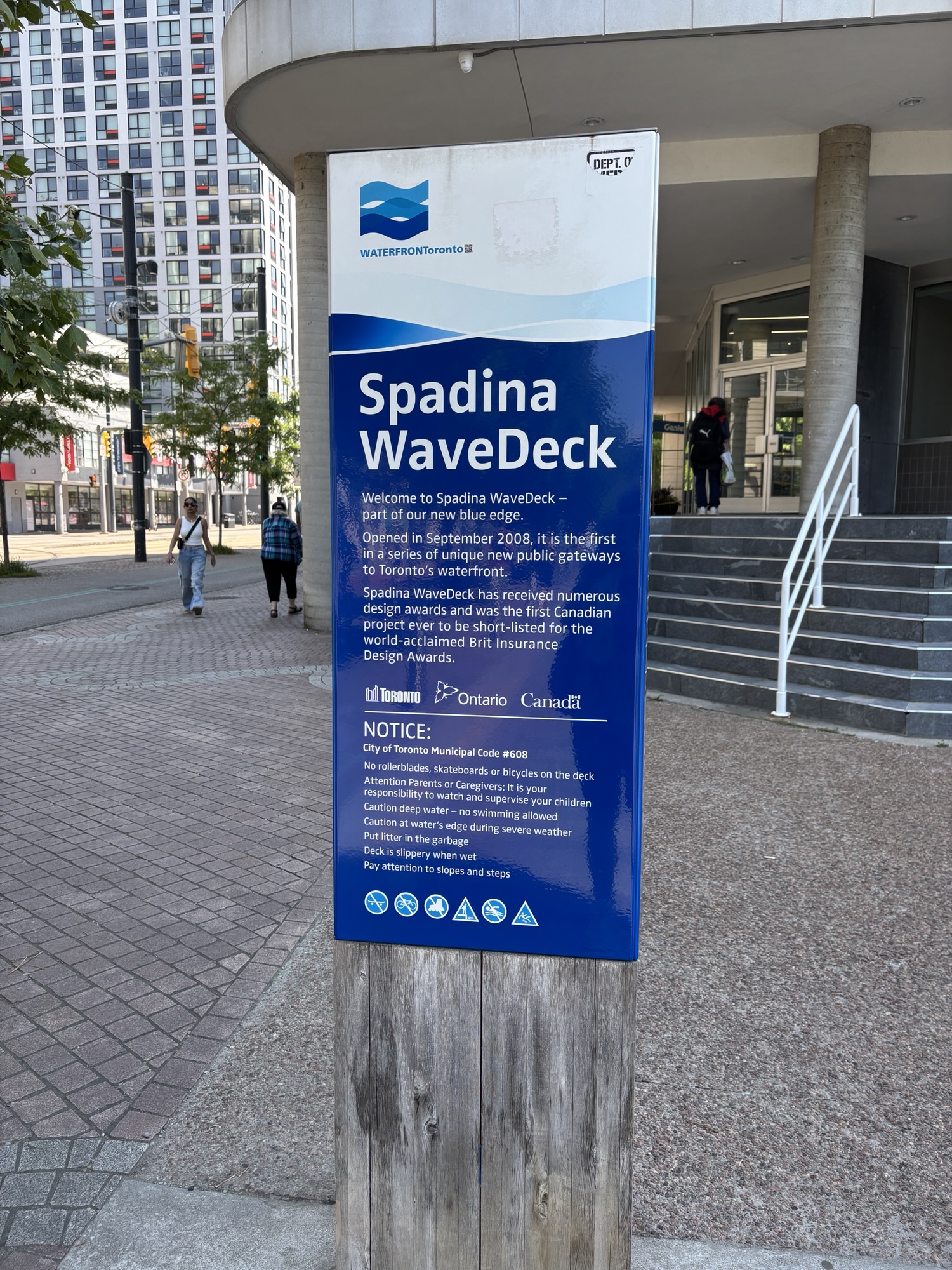 Our sightseeing in Toronto was planned around visiting a few other of Gail’s friends from work. We went downtown to meet Sarah. We parked at her condo and then walked down to the waterfront via the Toronto Water Garden and the Spadina Wave Deck. It was Saturday so there was lots of activity in the area. We had another nice lunch/brunch and then walked back by the distillery district, the CN tower and the Rogers Center