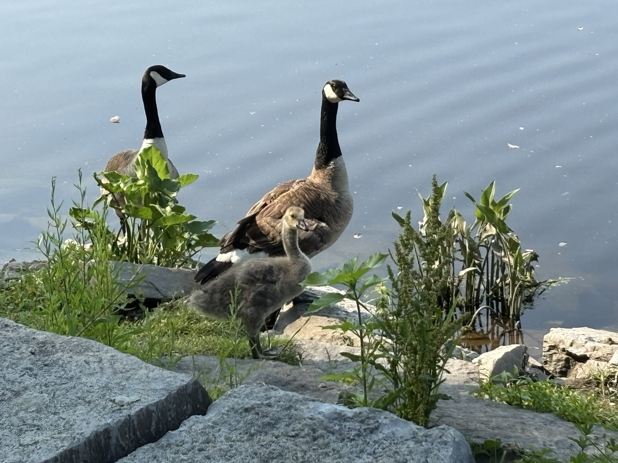 First thing, we took off to check out the Ontario Visitor Center to get more info on the area, including local hikes, then to Rockport to check out the scoop on the boat tours. We went on to Gananoque, the “big town” in the area, and had a nice walk around the park lake which was full of mama and baby geese, some ducks, a pair of swans and 1 heron. We finished up the day with dinner back at the waterfront pub in Rockport.