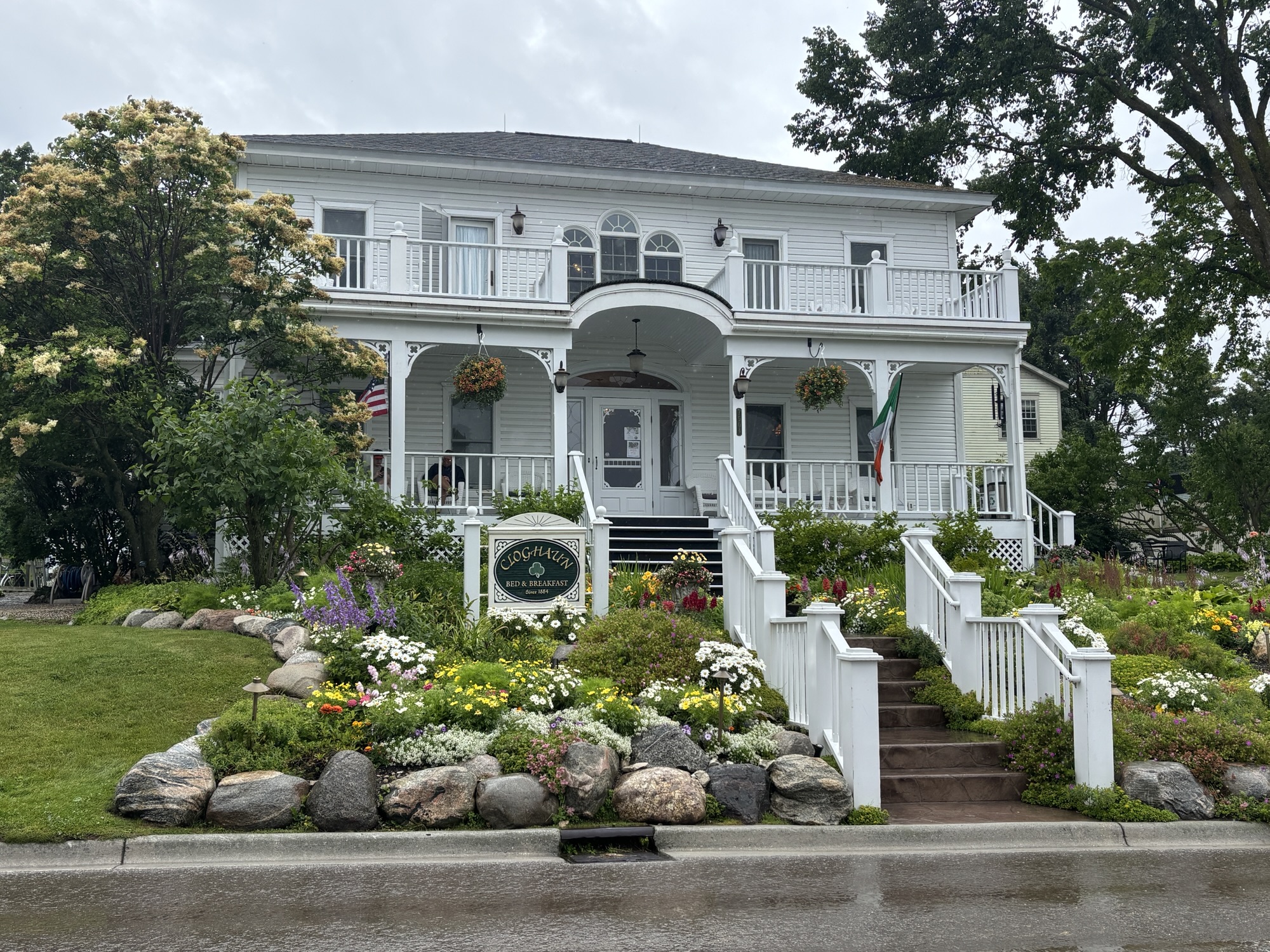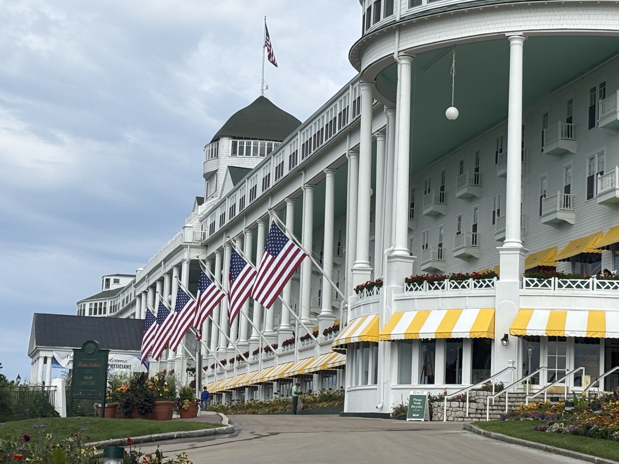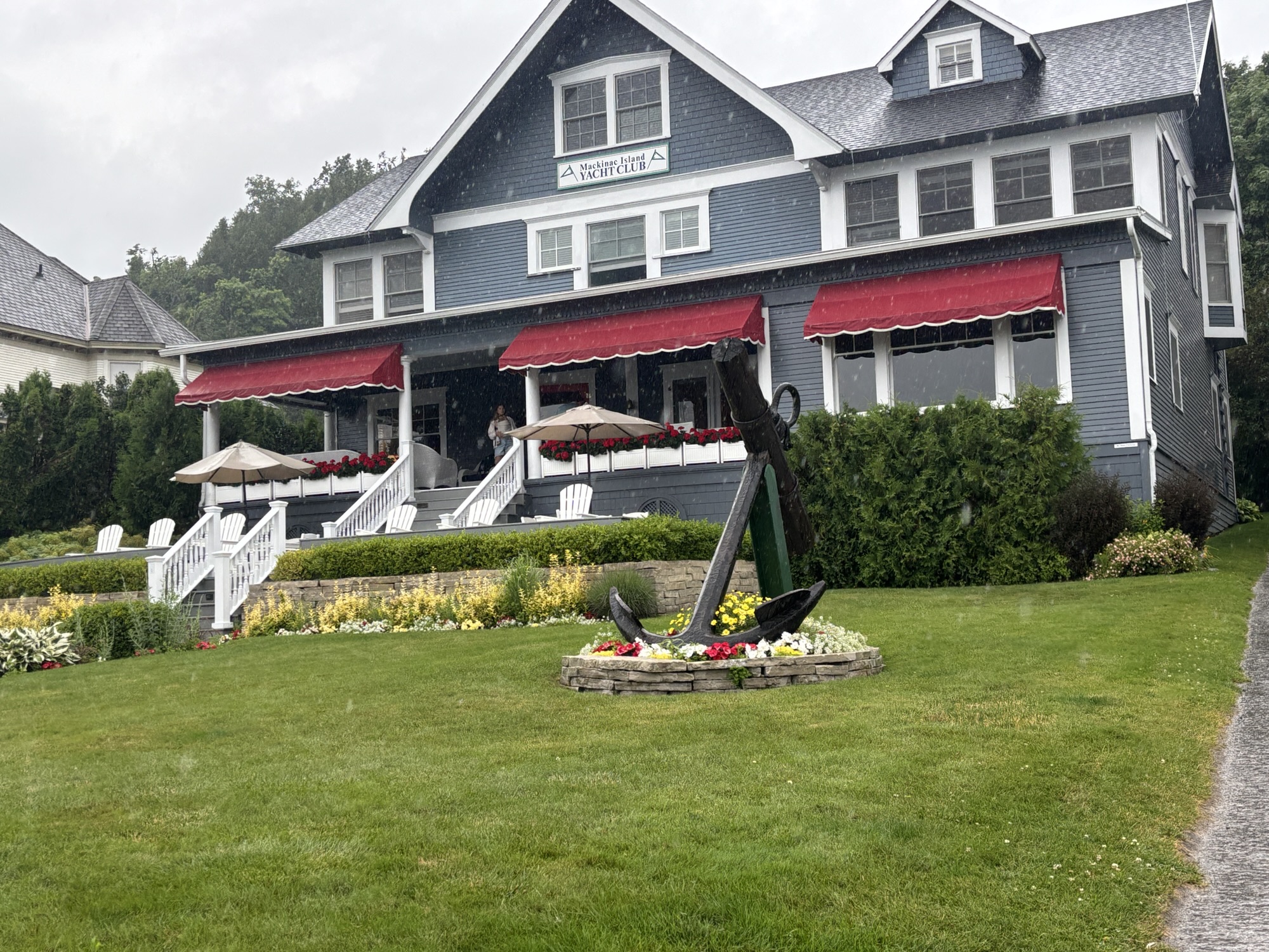 And we learned that this weekend was the famous sailboat race from Chicago to Mackinac. So, we decided to drop in at the Mackinac Yacht Club house and check on the progress of the race. The first cruising classes had departed Chicago the day before and the leader was about halfway to Mackinac. The performance boats were just getting started as we watched their status on the computer screen. So historic and so cool to be in the yacht club headquarters!