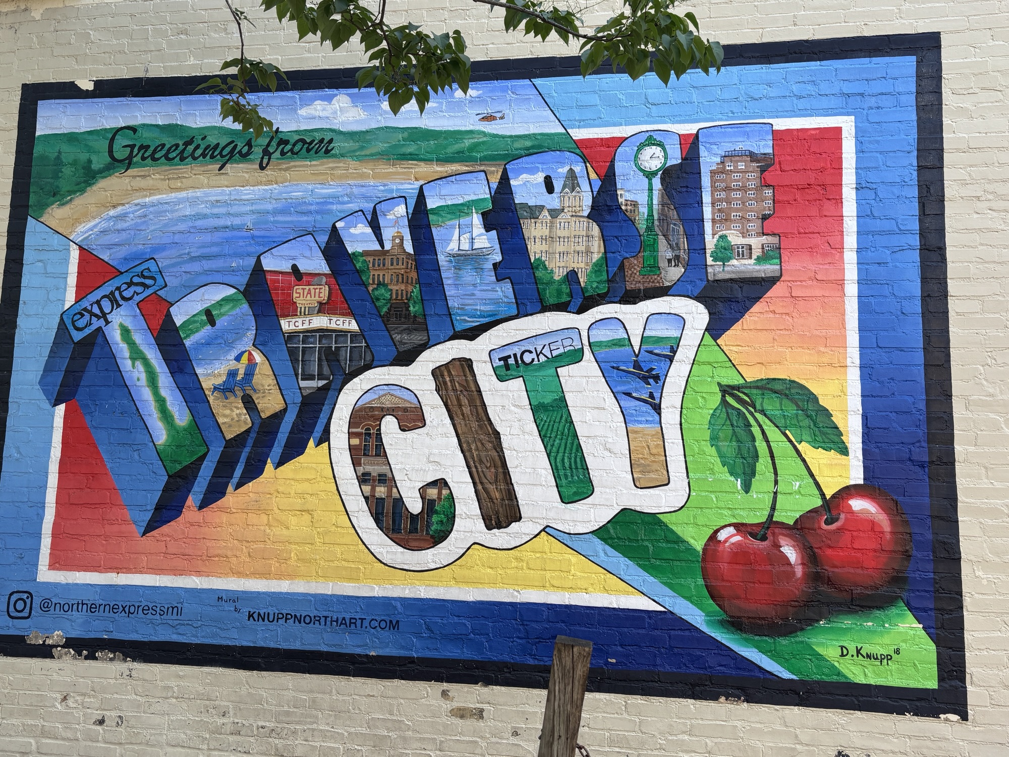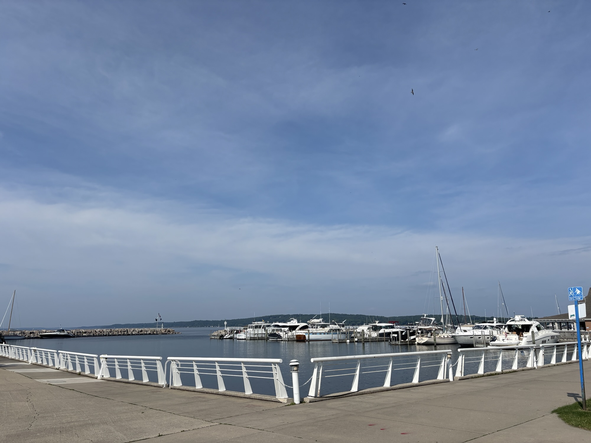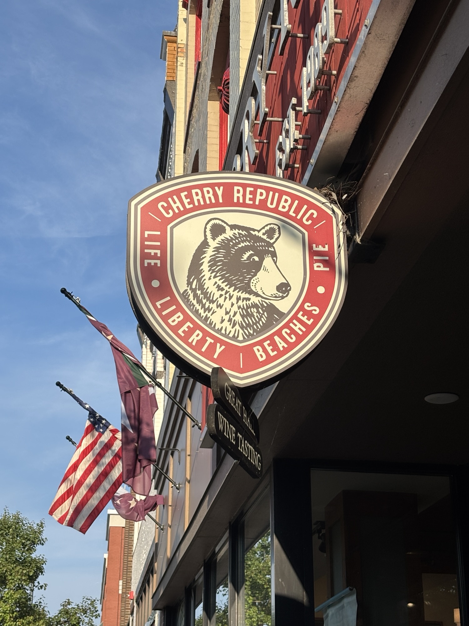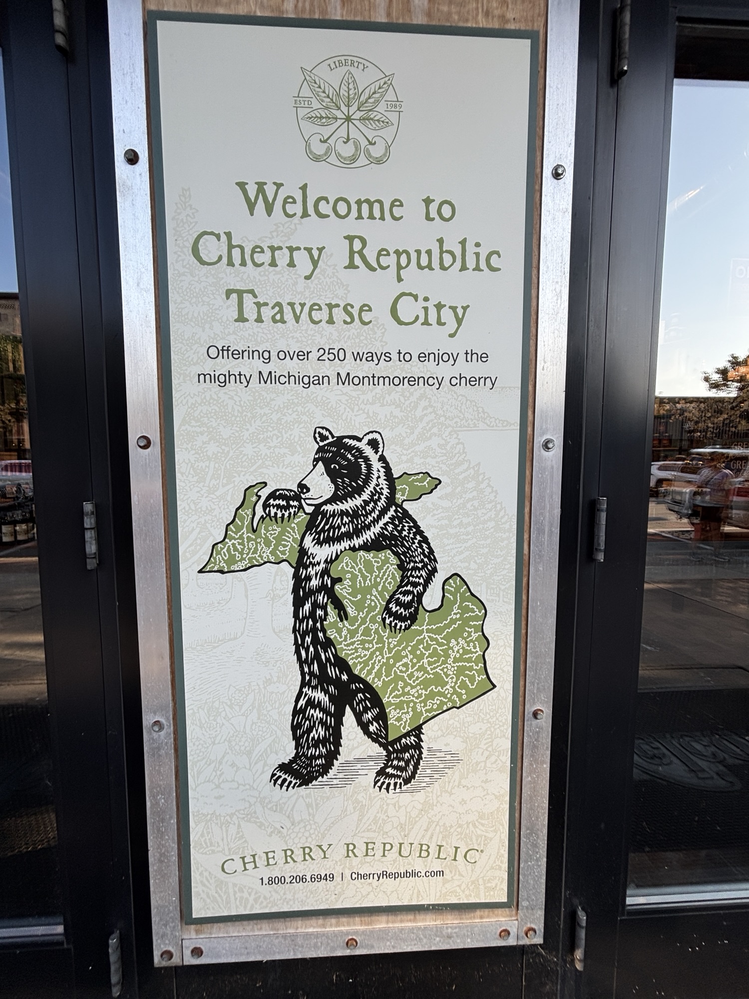 We continued driving the loop to see Glen Lake and then headed back into town to meet up with Jeff and Hindy for dinner. We shopped around and found a nice, soft flamingo rattle for Draven, our new, 2 week old Great Grandson! And stocked up on some cool cherry-based items at the Cherry Republic store.