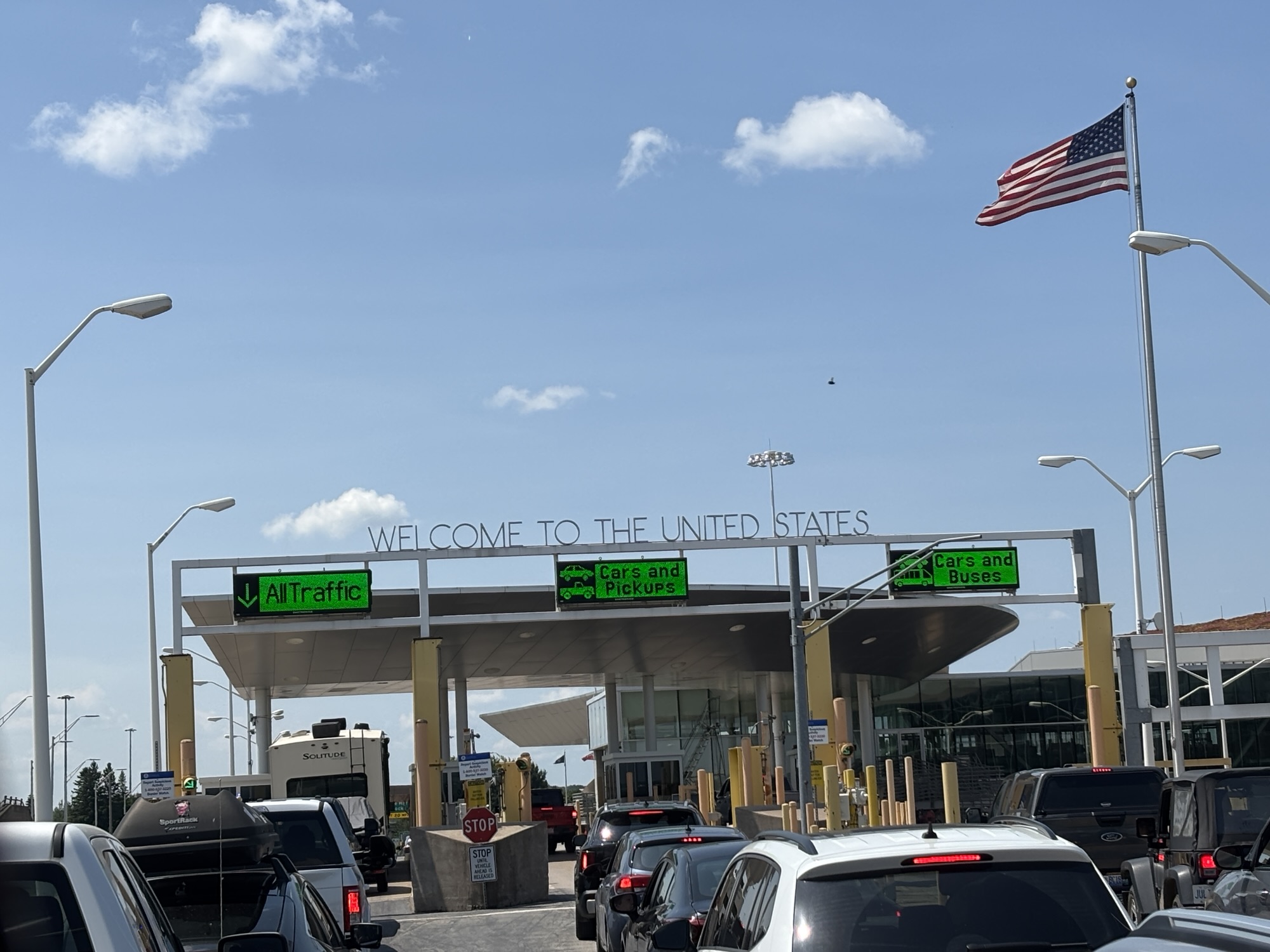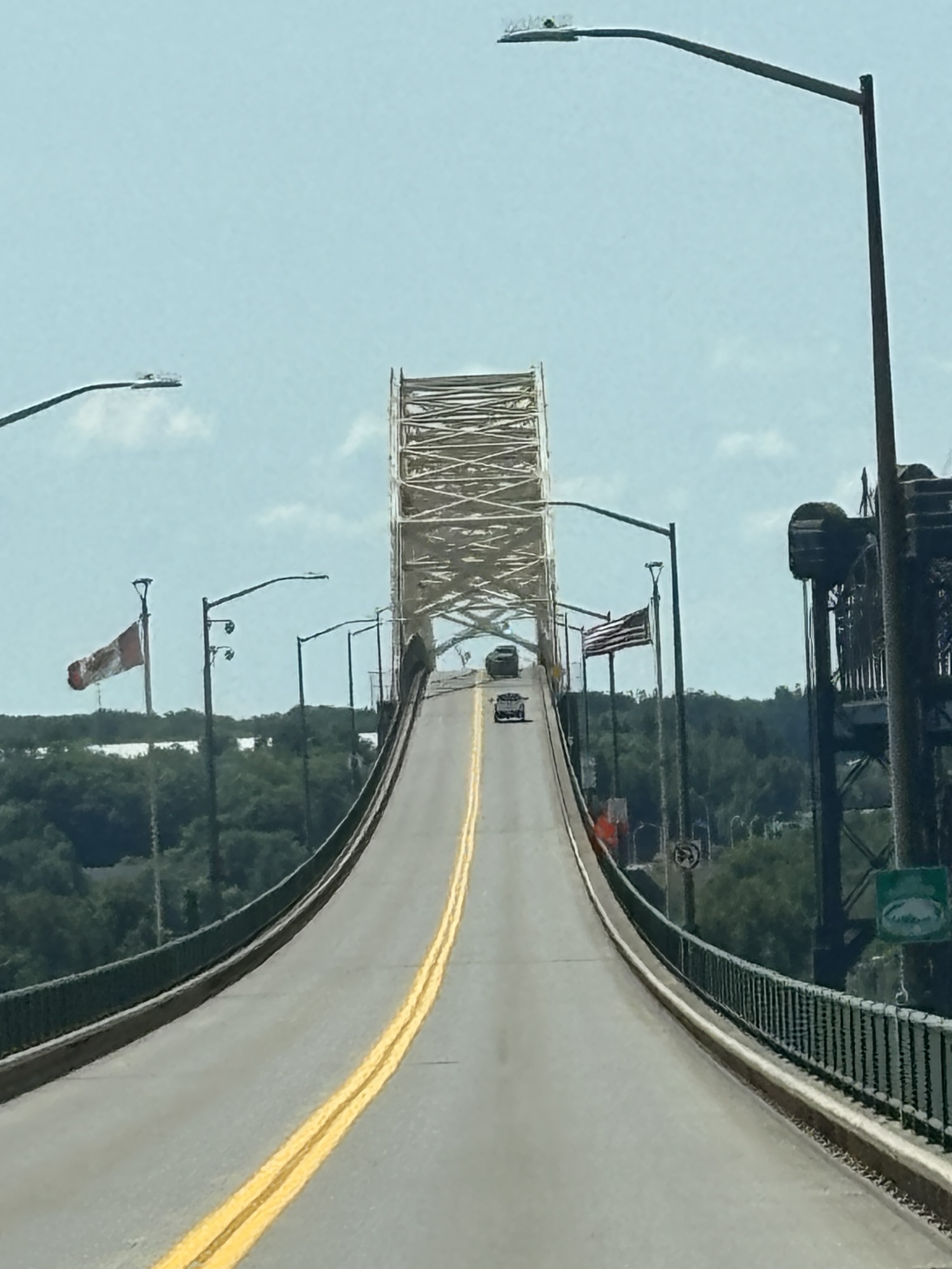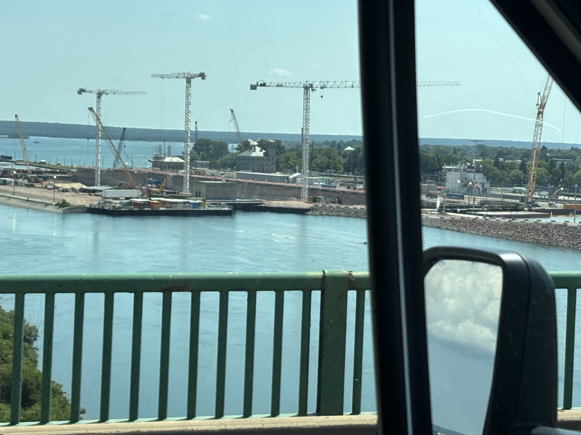 From Massey, ON it was a short drive down Canada 17 to the US border at Sault Ste Marie, ON. (That is pronounced “Sue Saint Marie”). Google Maps guided us through the streets of town until we reached the bridge that crosses the St Mary’s River between Lake Superior and Lake Huron and into the US. We almost missed the last turn but a nice guy on the street gave me a quick directional point, and we made it into the line. He said it happens all the time!