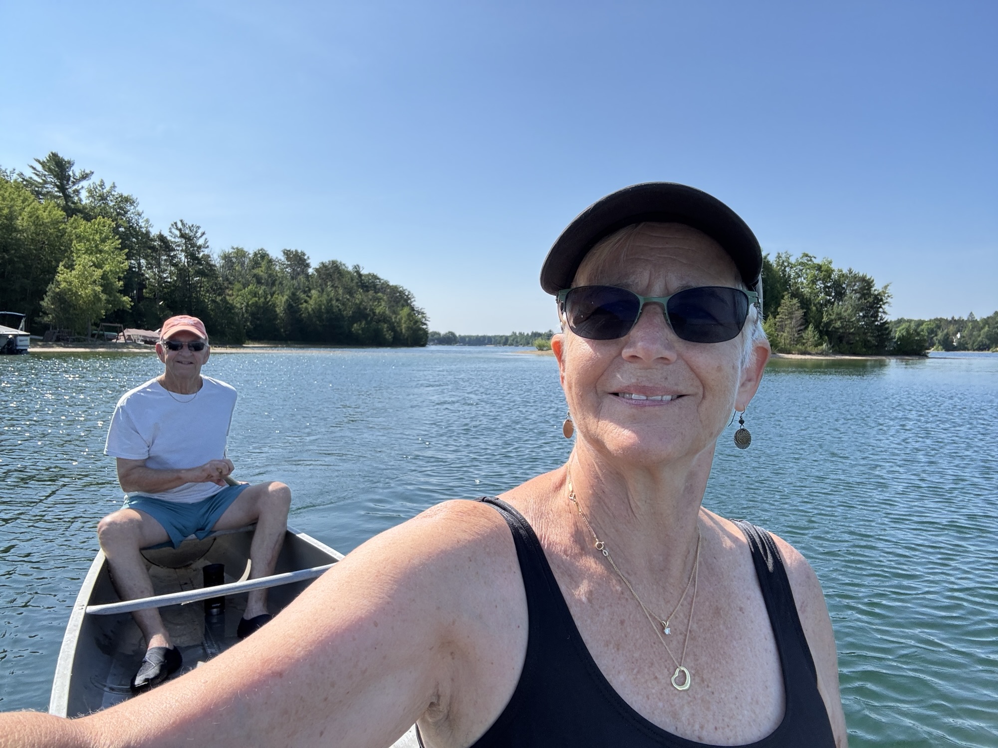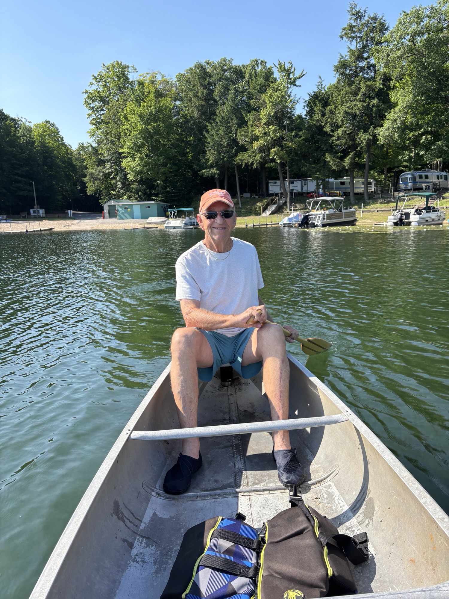 On Monday, after a quick hike around the RV park, we decided to rent a canoe and go out on Silver Lake. The RV park is at one end of the lake that extends about 3.5 miles to the other end. The weather was perfect, and we took off up the east side and then around the west side to get back. Lots of nice houses along the shore, most with boat docks and nice patios or beach areas. One even had a float plane parked behind their house. Nice to be out on the water!