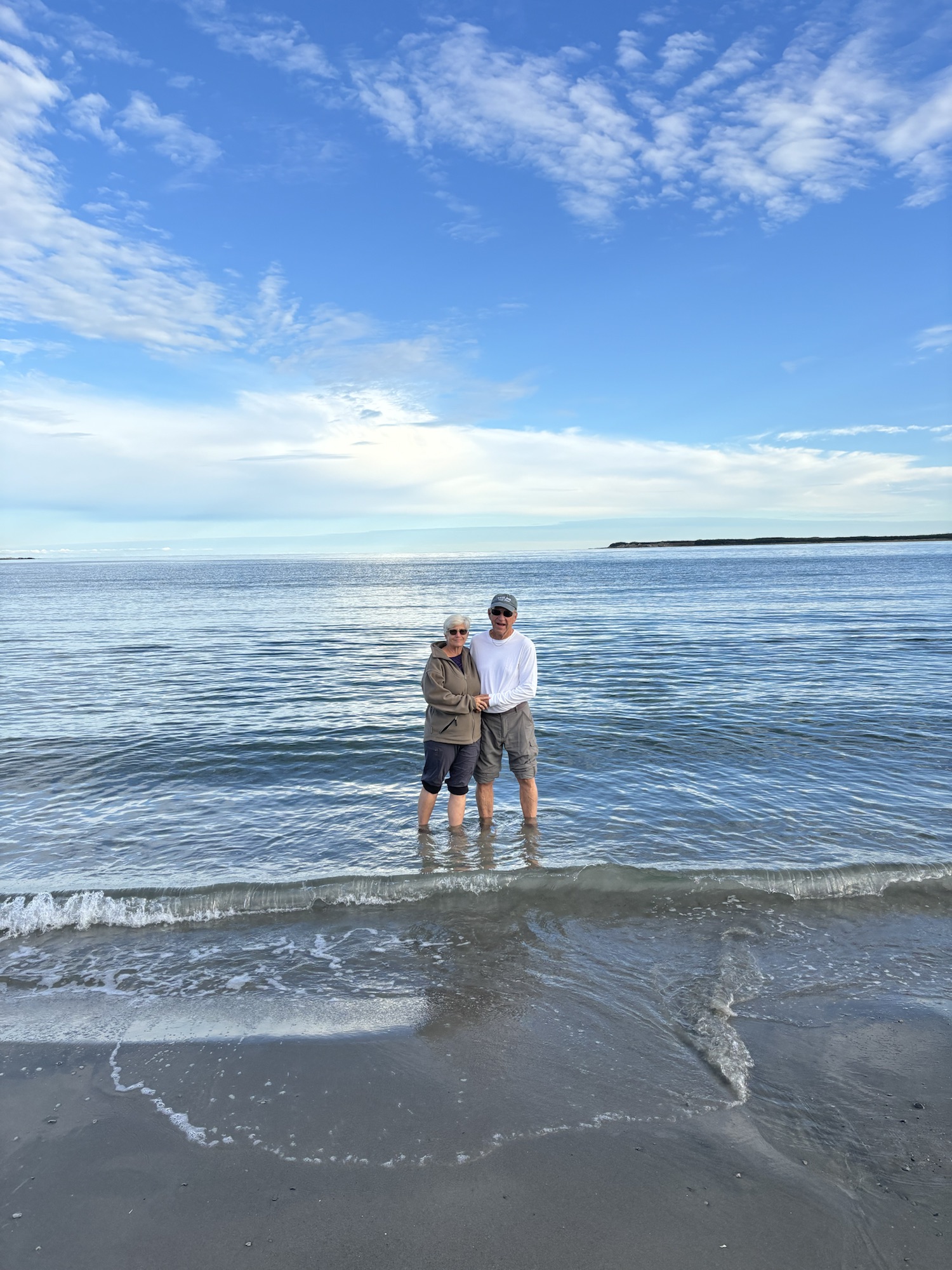 Our last morning in Cow Head, our friends were heading back to the ferry while we were heading more east. One couple left early and the other wanted to go walk on the beach again before they left. And we wanted to recreate our “toes in the water” test. So, they unhooked and we all headed to the beach, and we had a nice walk.