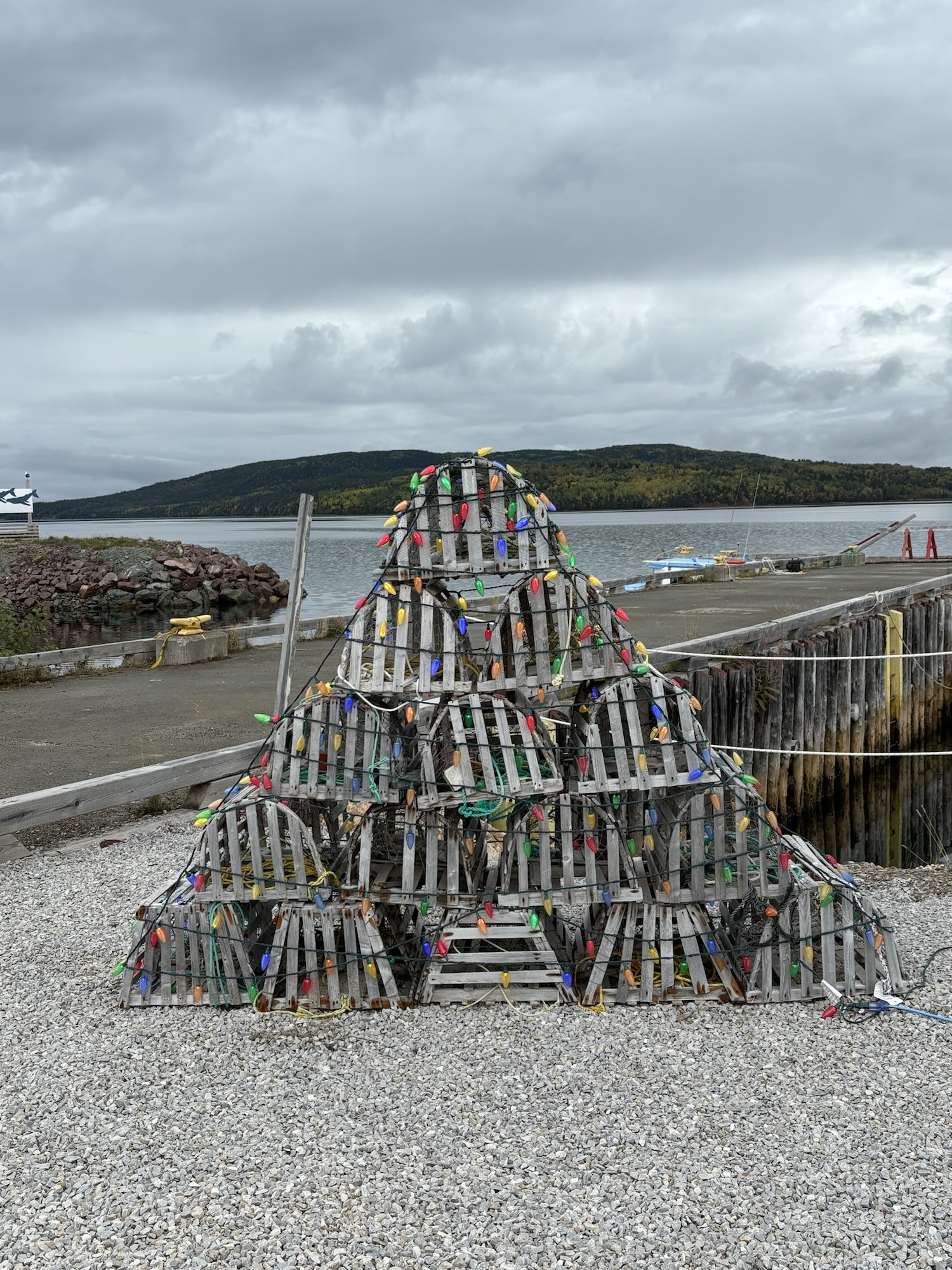We also stopped in Kings Point, where there is a humpback whale skeleton on display. The museum was closed, but they have large windows on the back side so we could see it! And they were getting ready for Christmas already. Interesting use of lobster traps! All in all, a very nice day.
