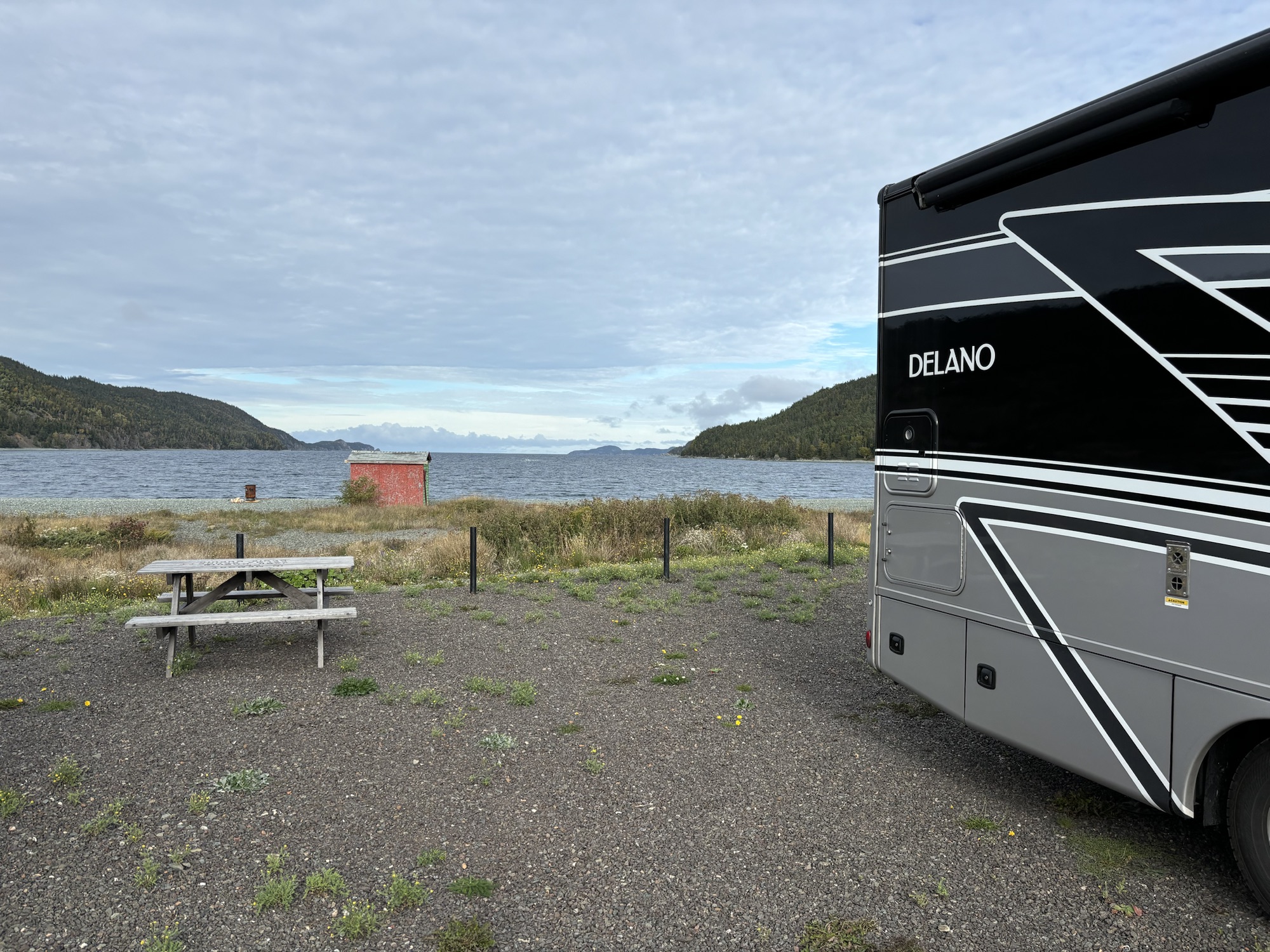 After we thawed out and our friends left, we went back to the park and unhooked ourselves. Our next stop was going to be in Little Bay. But Gail couldn’t find her scarf that she wore last night at the dinner. We ran back to the church where they were having a festival breakfast and asked about the scarf. It happened to be lying on the table by the door. A lady (named Sid) from the night before had found it. She had also seen our water travel cup on the street (see the last blog!) and when we told her we were going to stay in Sunnyside at the RV park, she got very excited because the owner was a friend and highly recommended that we stay there. Small island, small world.