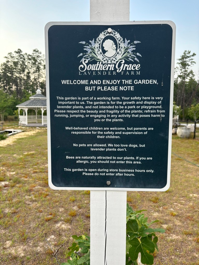 Next morning we were off early for the Panama City area to Southern Grace Lavender Farm that specializes in lavender by-products. They are part of a group called Harvest Hosts, who sponsor RVs for a night for free. They usually have some main operation like this farm (or a brewery, vineyard, etc) that they can promote their products at the same time. It was another long day and quite eventful (more details later) but we arrived and settled in. Gail bought some items in the gift shop, and we met another relatively new RV couples from Minnesota parked next to us.