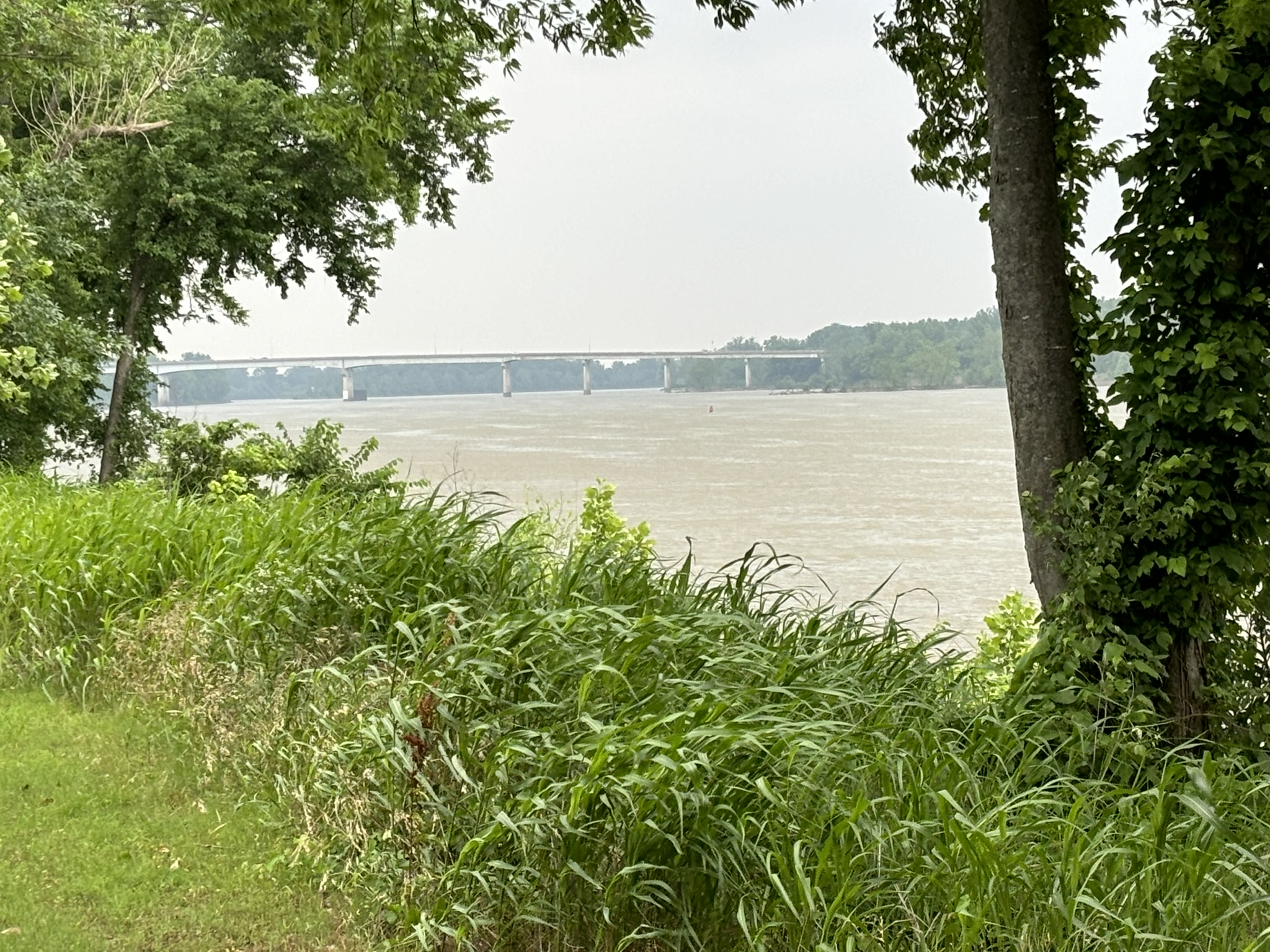 We ended up being one of the last to leave the Off Road Park after a nice coffee and Danish breakfast supplied by the coffee sponsor of the event. Our next stop was going to be only about 100 miles to an RV park in Ft. Smith, AR. So, we took off thru the middle of the Ouachita National Forest on Hwy 270 and really enjoyed the drive. Good road and beautiful scenery. We arrived in the Riverfront RV Park along the Arkansas River by early afternoon. We go a spot in the back corner of the park overlooking the river. We were ready to hook up as the Off Road park had no waste water hookup, and after 5 days it was really needed.
