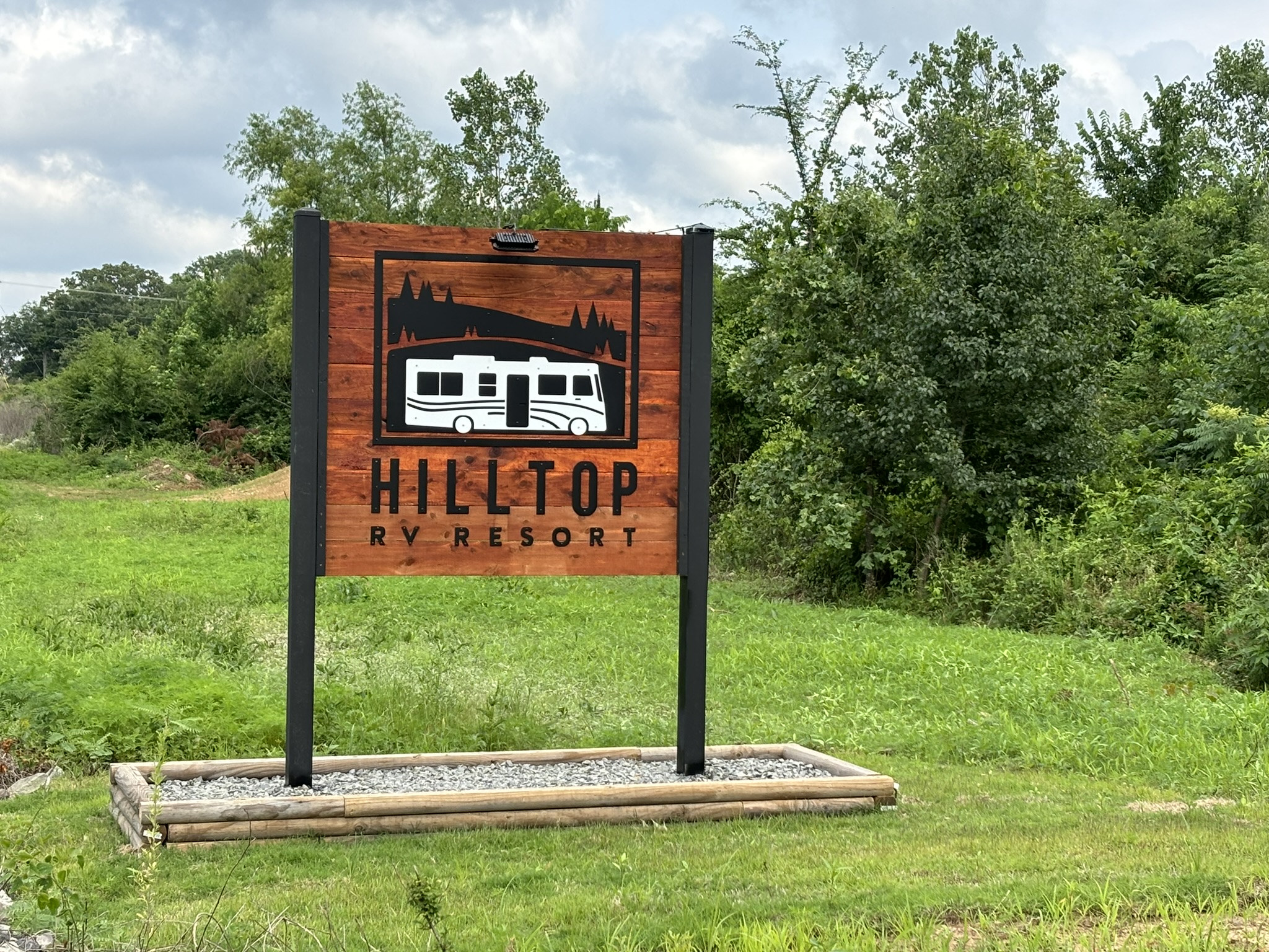 Our stop was called Hilltop RV Resort off of Hwy 85 near Greenbriar, AR about 5 miles north of Conway. As the name suggests, it sits on top of a hill with a nice view back south and is not too big. We got one of the best spots with nothing blocking the view.