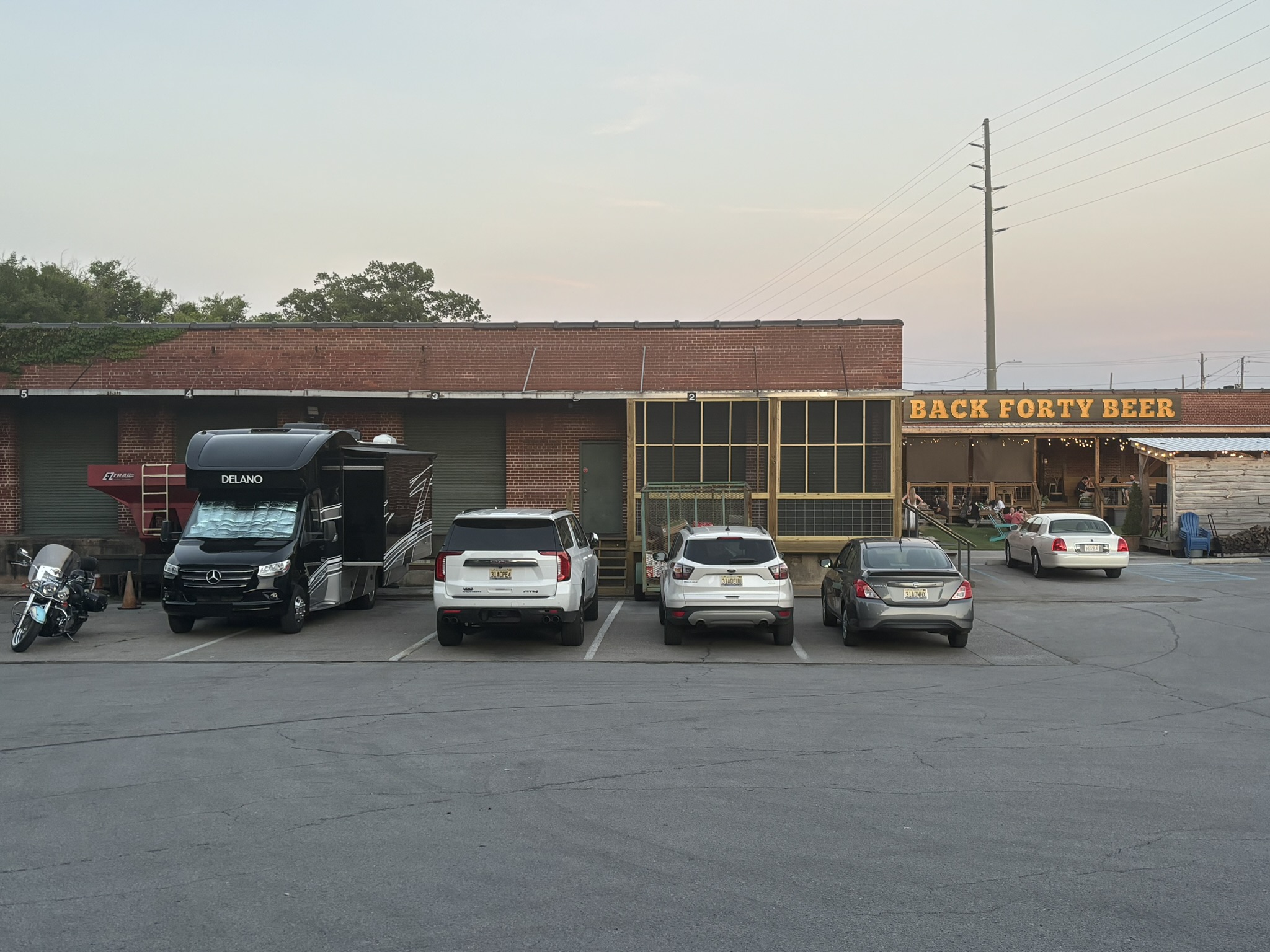 We had reserved a Harvest Host spot again and this time it was a brewery and restaurant called Back Forty Beer Company. Being a Saturday, they didn’t have limits on the arrival time, but we still got it about 6:00 pm. This was our 3rd Harvest Host location, and it was free and with no hookups. But we were “encouraged” to have dinner and sample the beers, which we did. The fried catfish dinner, the bread pudding and the Italian Pilsner were all very good. Luckily, they closed at 9:00 and the live music ended by about 10:00 so we still got a very good, and quiet, night’s sleep.