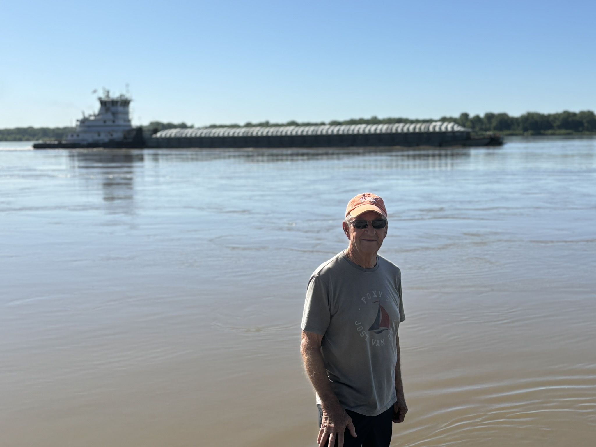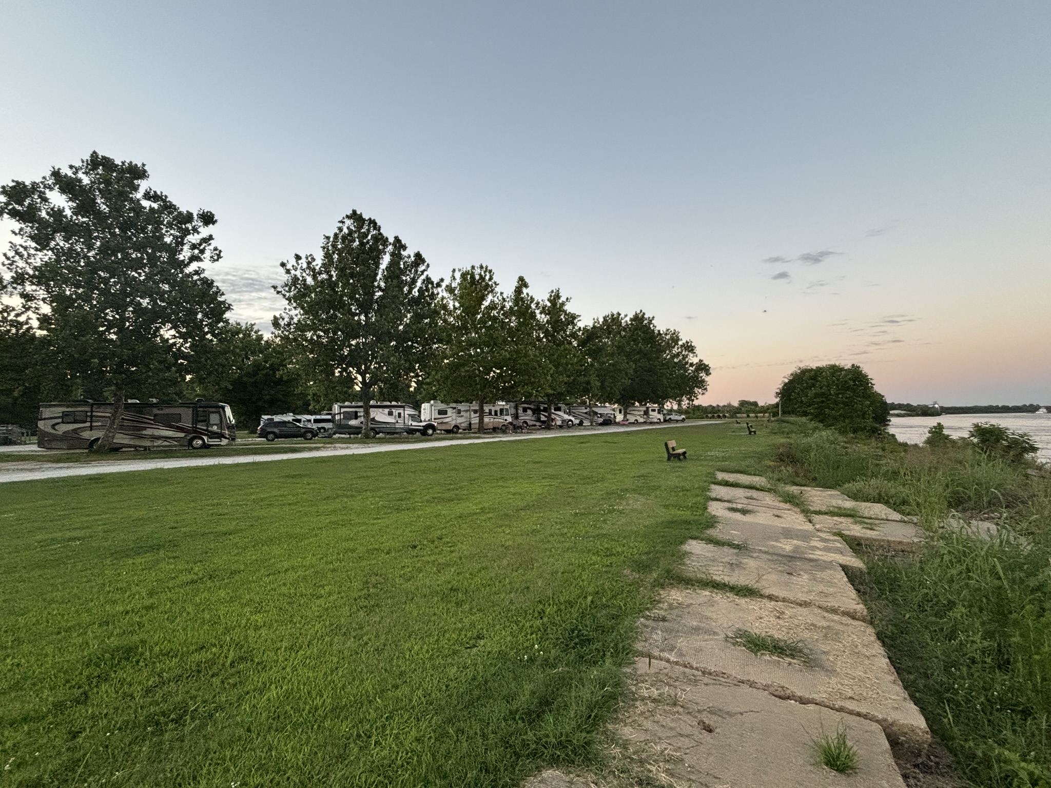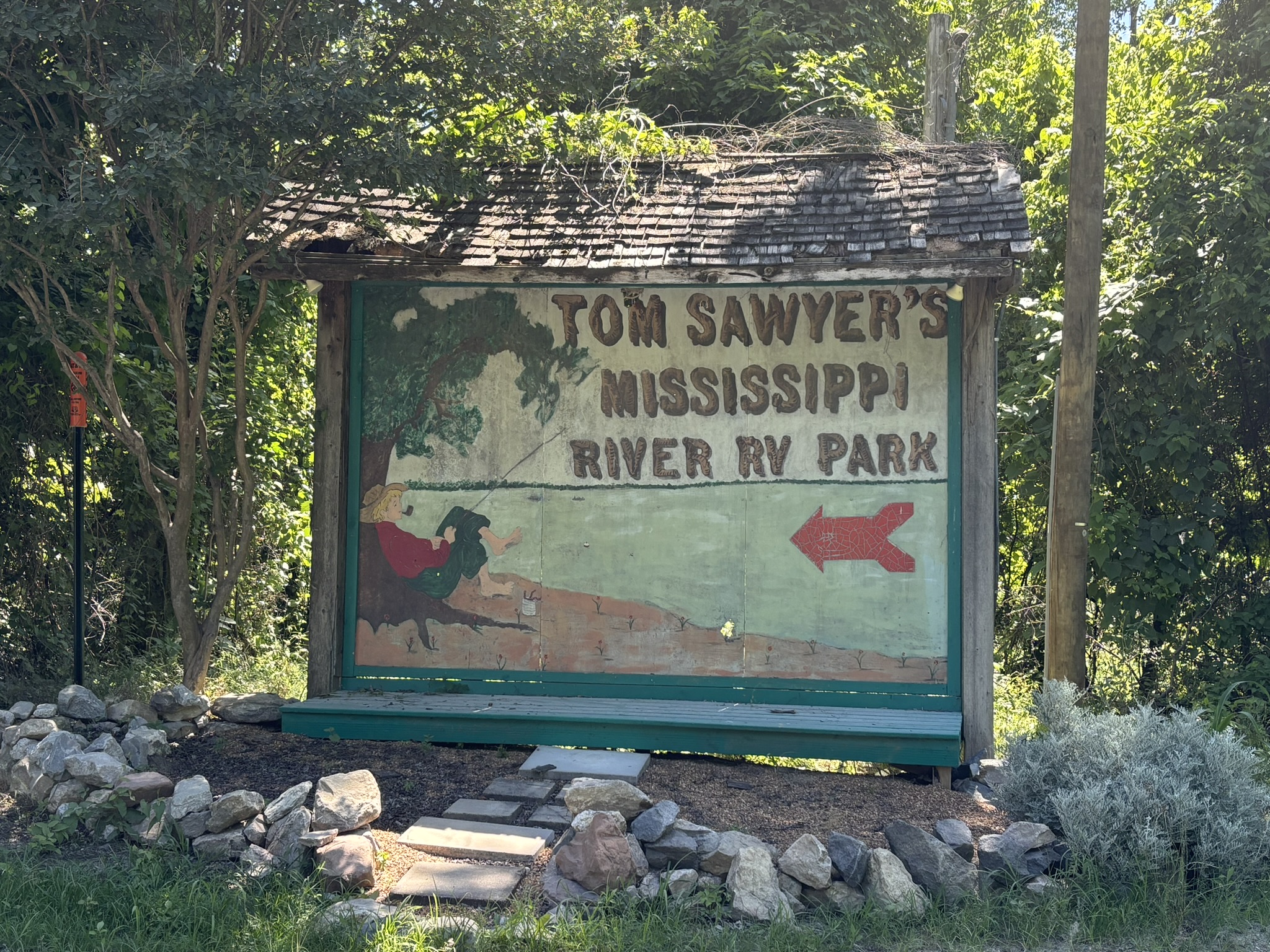 Our first stop was almost 300 miles and took about 7 hours. The park was called Tom Sawyer’s RV and located in West Memphis, AR right on the Mississippi River! I mean we were 100 ft from the riverbank with a very nice hook up. Since it was late in the day, we didn’t explore much but just sat along the river and watched the barges slowly work their way upstream against the current! We also waded into the water to say we had touched the Mississippi River!
