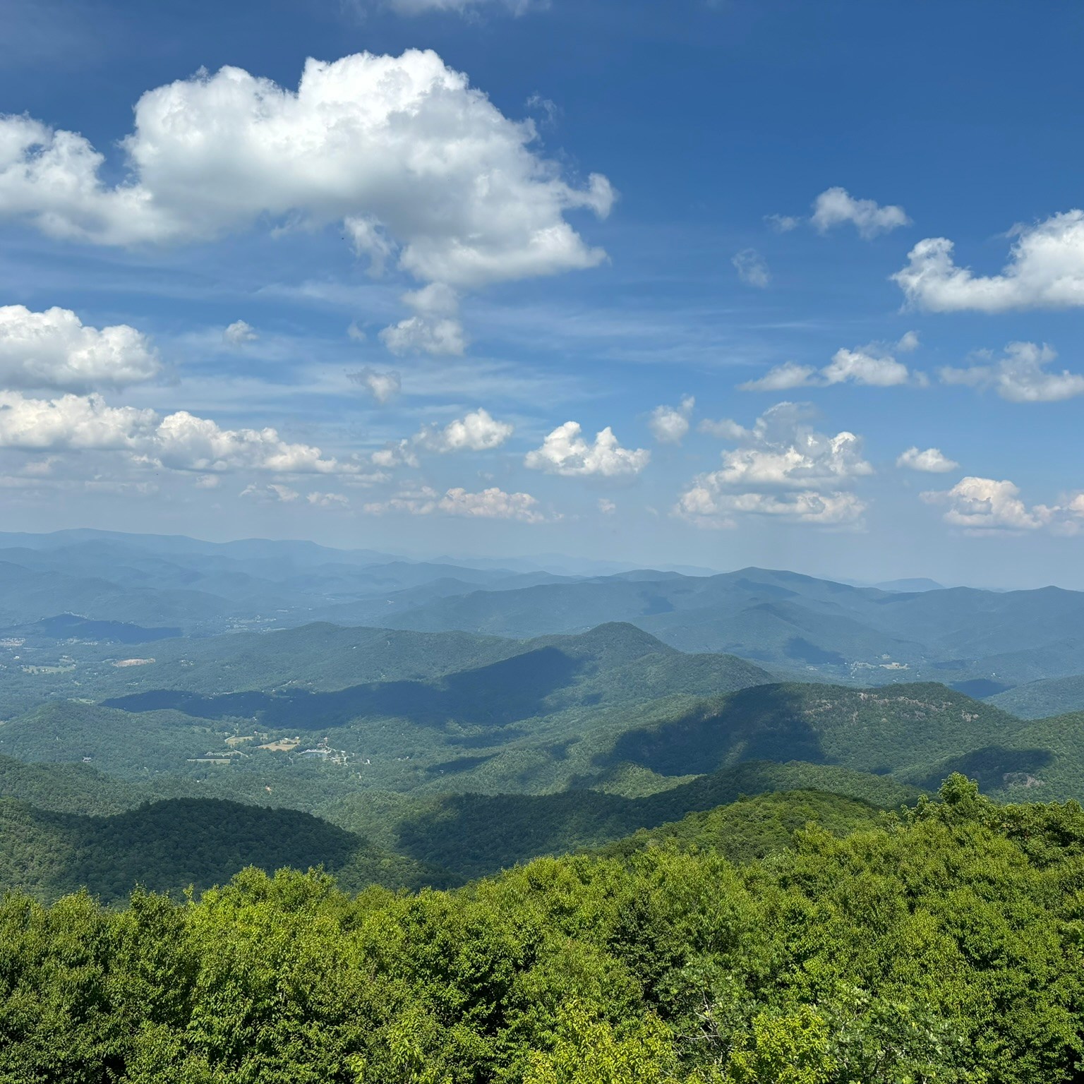 Our first destination was Brasstown Bald which is the highest point in Georgia at 4794 ft. There is a walking path up to the lookout, but we decided on taking the shuttle up and walking down. Good idea! The view from the top was amazing as you might expect! (This was our third highest point after Florida and Arkansas.) After a round about trip back through Hiawassee and Blairsville just to see, we headed back to camp.