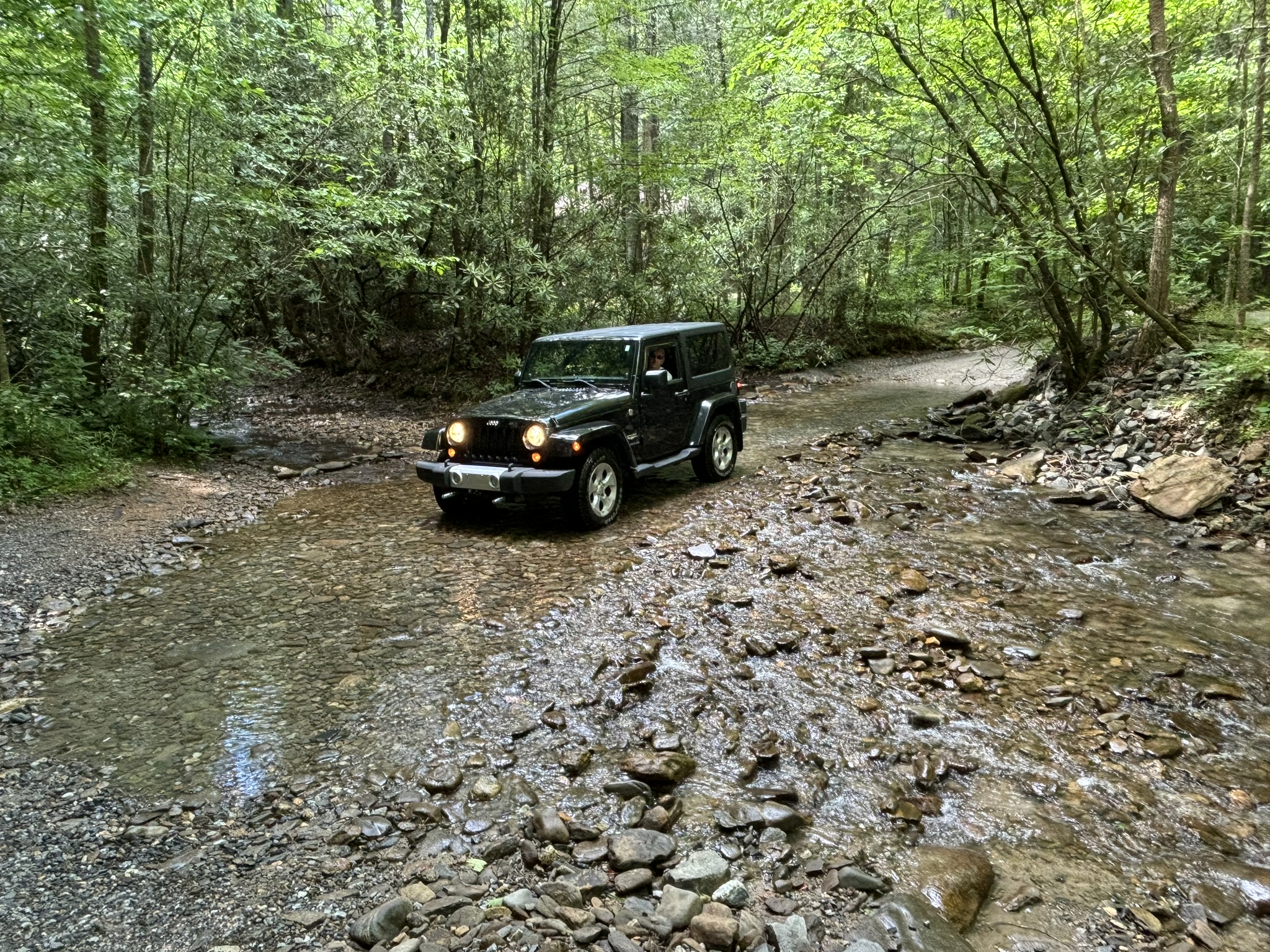 The first was Helton Creek Falls and involved a short drive on an unpaved road and through some shallow streams. We actually put the Jeep into 4-wheel drive just to make sure and give her a workout. The falls still required a ½ mile walk and were well worth it.