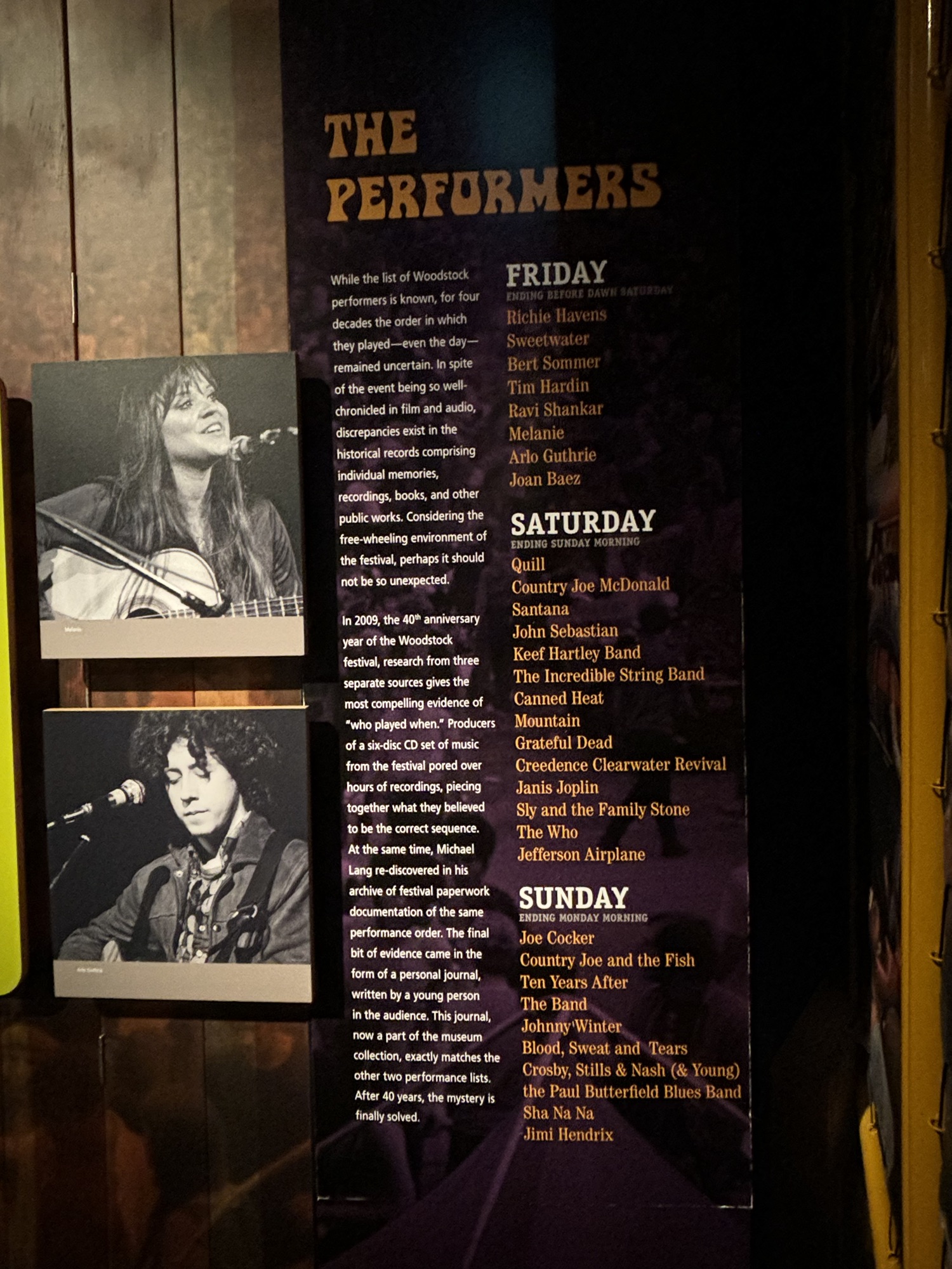 Again, we all know of the concert, but the museum tells the history, and the grounds are still “sacred” today. It was originally called “an Aquarian Art and Music Festival”. Did you know there was also an art show there? We took a guided tour (with only 2 other people) of the new, modern concert facilities including going on stage and seeing the backstage rooms and operations.