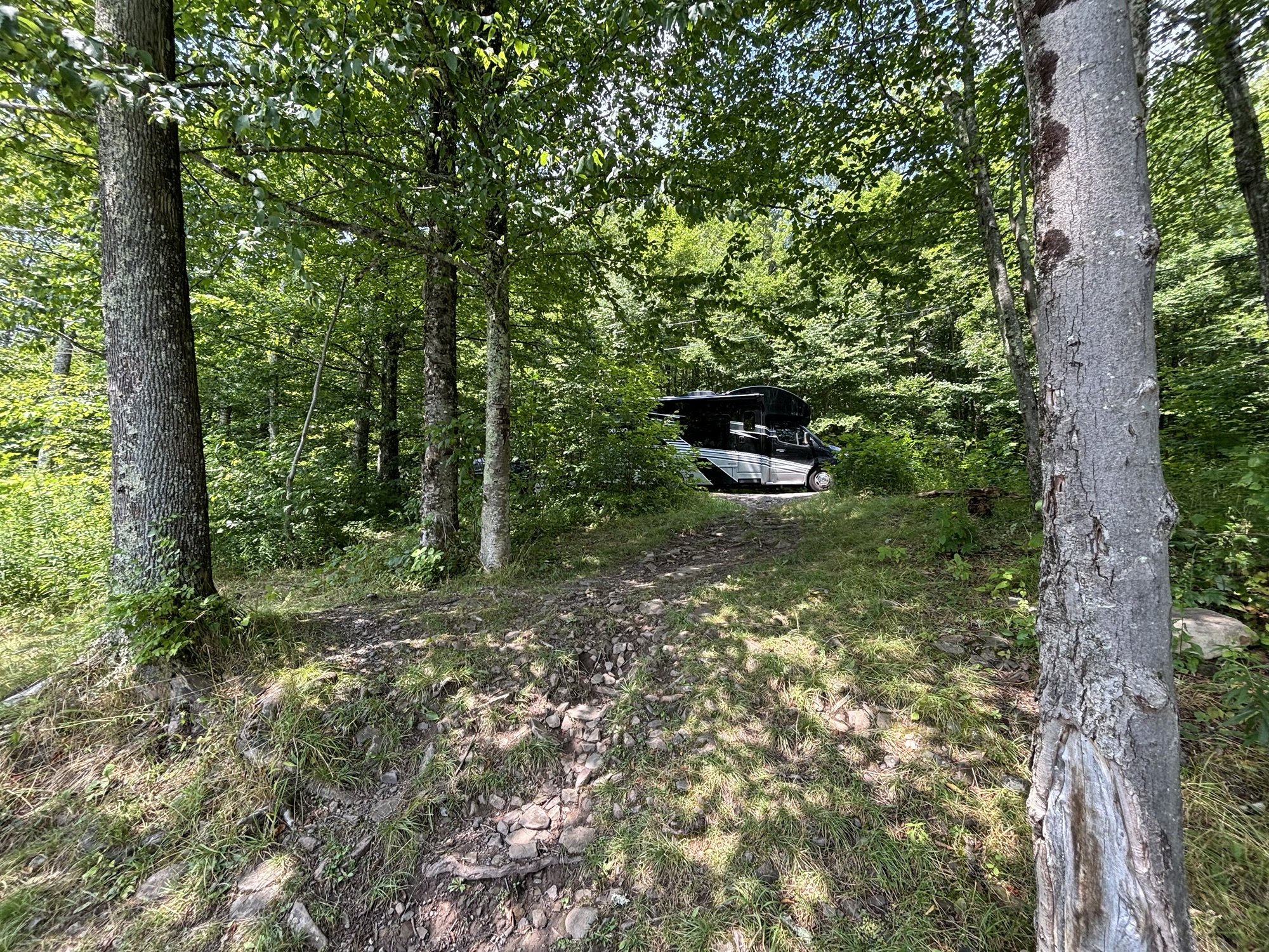 A comment is needed here to say that we did not have the scenic overlooks (and therefore, not the photos) along the routes through these mountains that we had in previous blogs. We seemed to be in the valley vs on the crests that we had in the Smokeys and the Blue Ridge Pkwy. That is not to say the drive was not beautiful. There were lots of streams, rivers and lakes as well that made the drives enjoyable.
