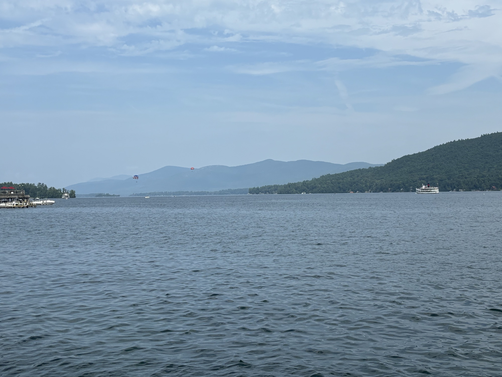 It was highly recommended that we do not leave Lake George until we had gone to the top of Prospect Mountain to see the view of the lake and surrounding mountains. And as promised, the view was very good even with some hazy clouds. But back in town, it was a very busy tourist location with lots of traffic, hotels, shops, and activities. We had a great NY style pizza at a small shop and walked around a bit to actually see the lake before going back to the park.