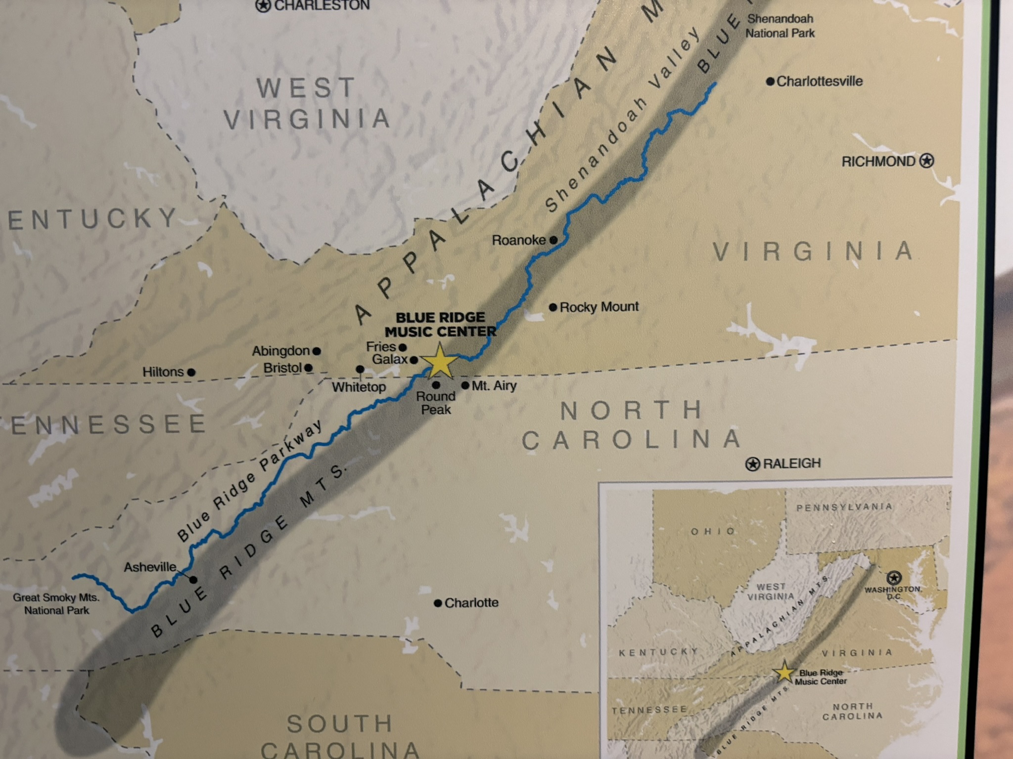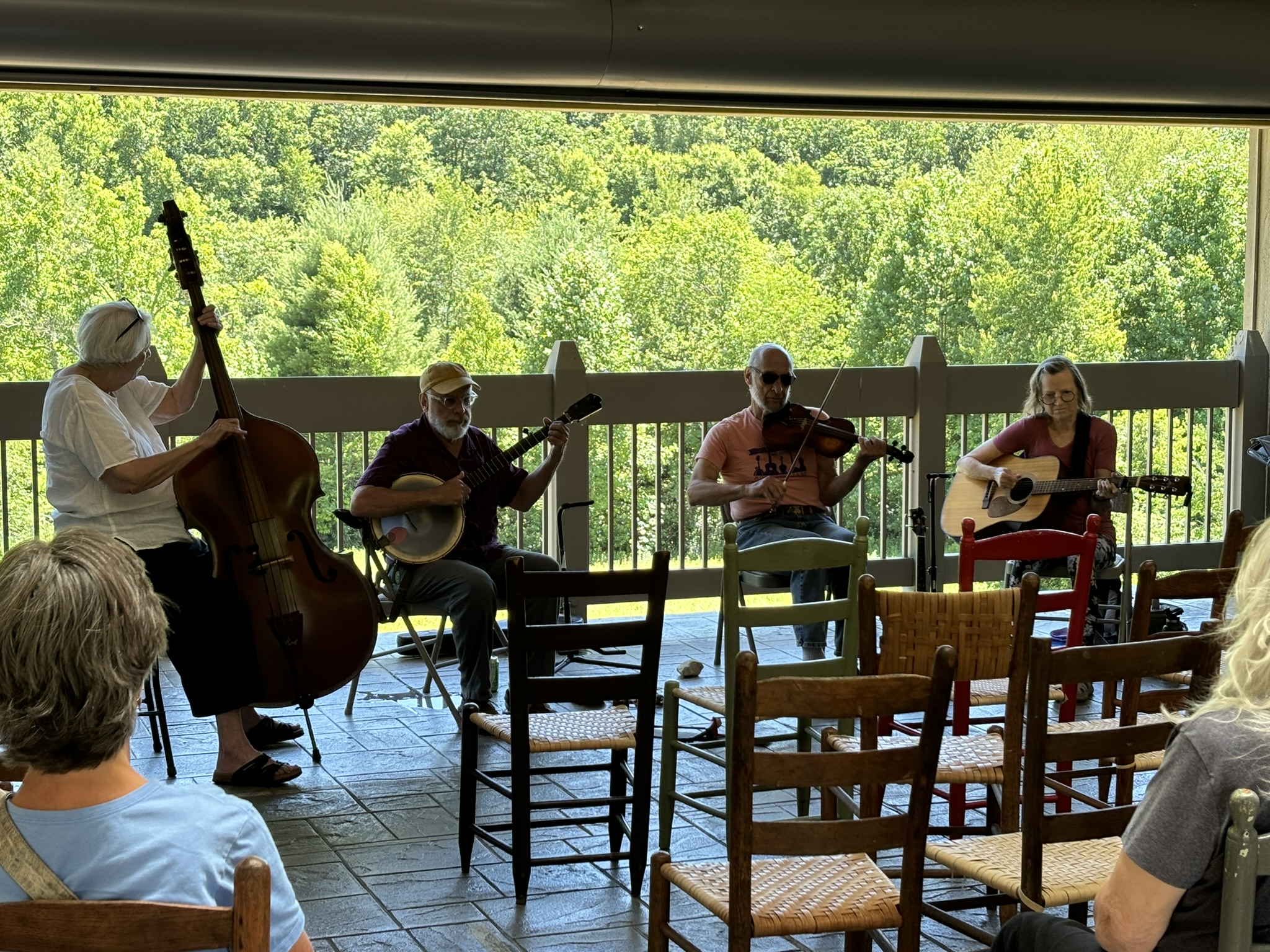 After 3 days, we headed north again. The next stop was to be just across the border in Fancy Gap, VA at an RV park just off the Parkway. Most of this section was the part under construction with a detour already designated. We got back on near the Blue Ridge Music Center and stopped in time to see The Buck Mountaineers do a few numbers and see a demonstration of the wooden “limberjack” dancing doll do a couple of jigs!