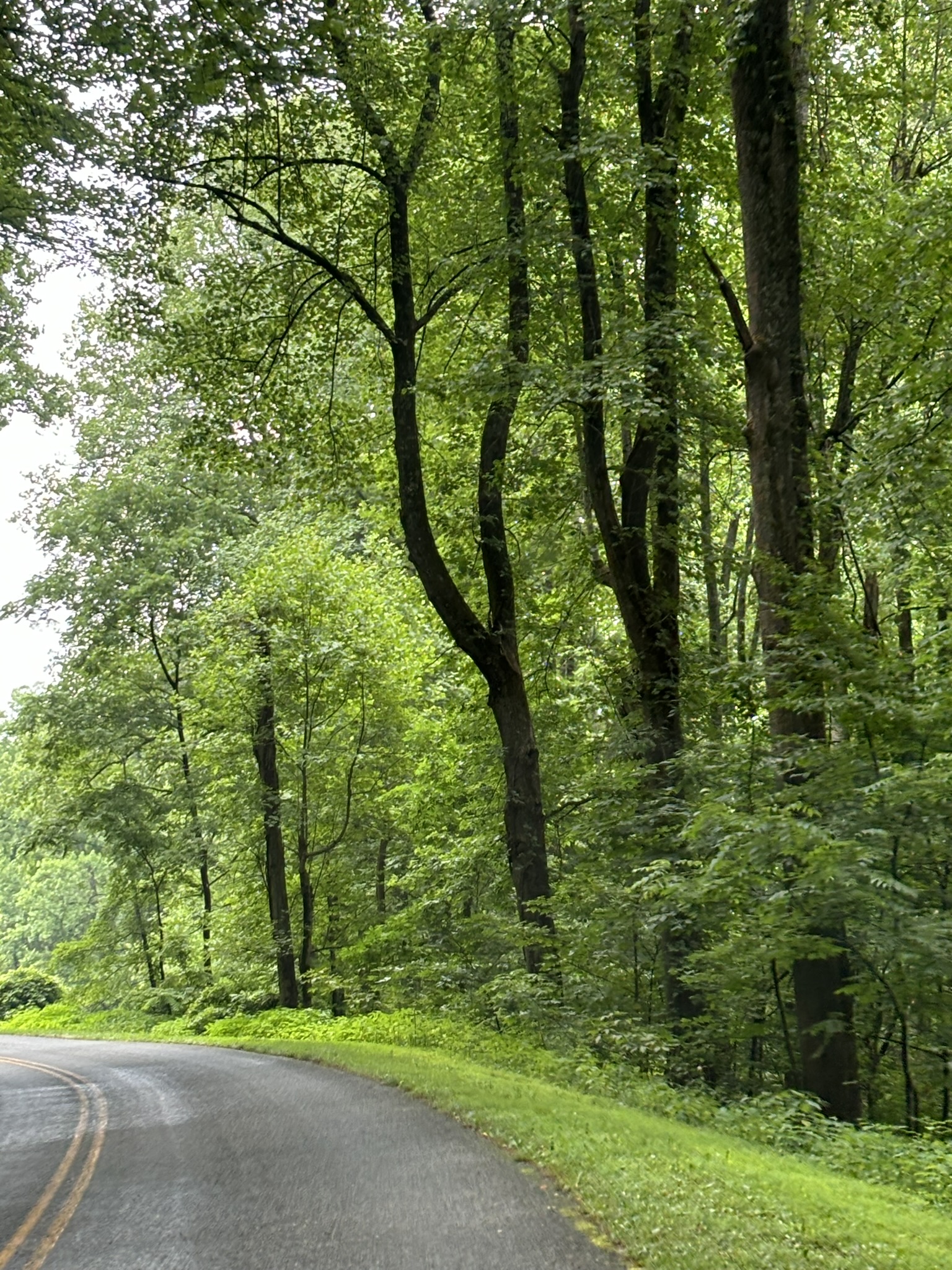 These two features kept coming back over the next 4 days as we drove north on the Parkway. First, it seemed that we were the only ones driving. I would guess that for about 95% of the 4 days on the Parkway, we had no one behind or in front of us that we could actually see. That was good because I was driving slower than the marked speed limit of 45 mph. The hills and curves were tough to navigate much faster with the RV and the Jeep, and it was a lot easier with no one pushing you along. If I got a few cars behind me, I would pull over at a viewing overlook to let them pass.