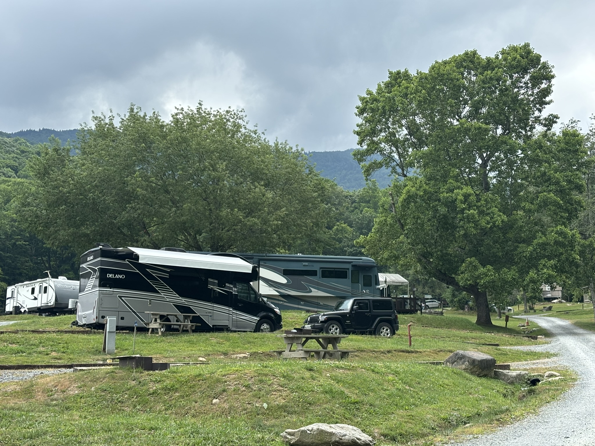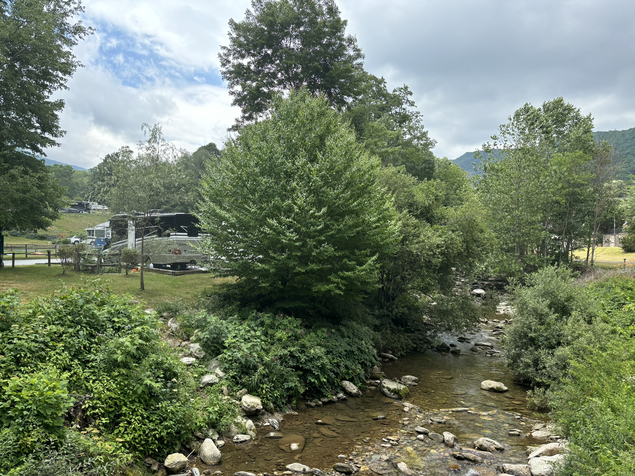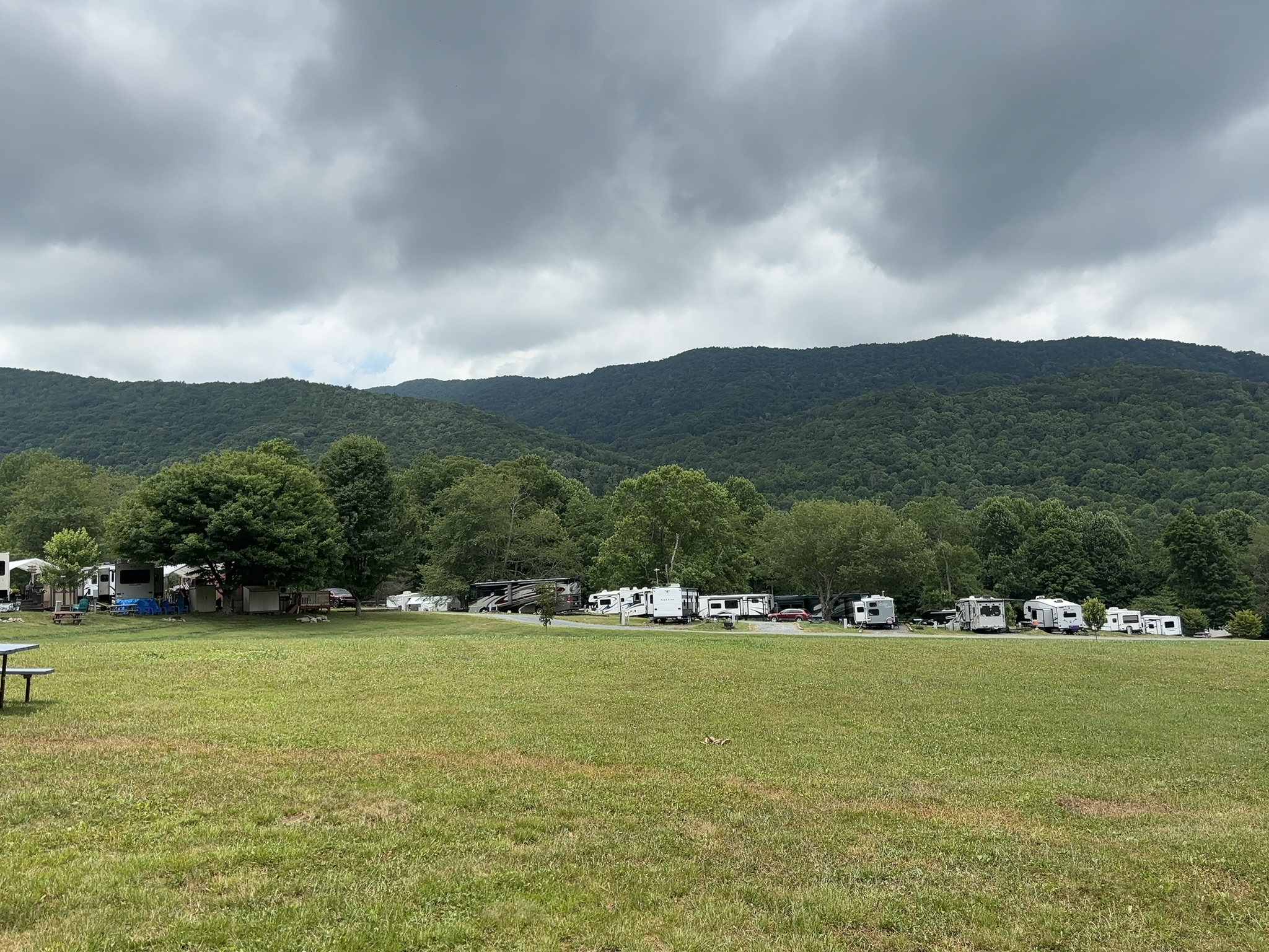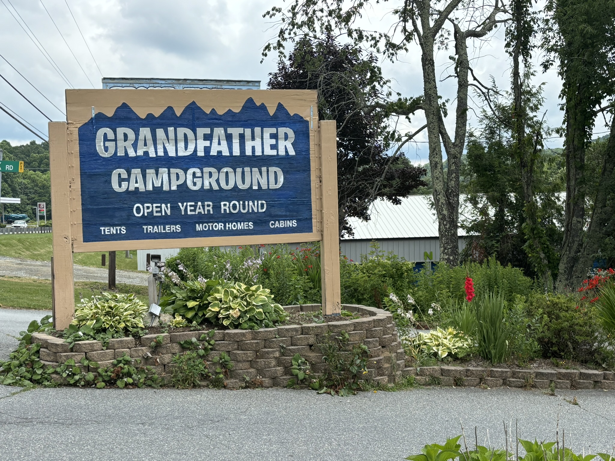 After about 8 hours, we made it to Banner Elk and got hooked up at the Grandfather Campground. This was a large and very nice park with RV pads, tent areas, cabins and a large field for group camping and events. It is not associated with the Grandfather Mountain State Park, and we soon discovered there are many businesses and other things with Grandfather in the name.