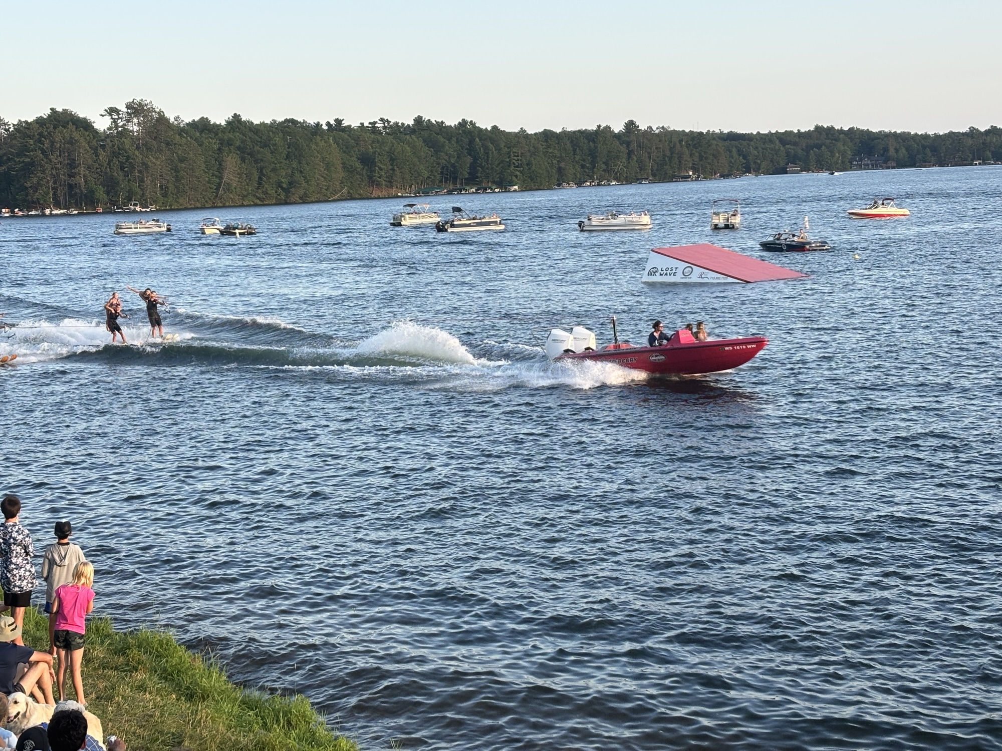 The next day we headed back into Wisconsin to Minocqua to meet our friends Deb & Chuck who we met sailing in the 2012 in the San Blas Islands in Panama. We had last gotten together in 2018 when we sailed in the Apostle Islands. They came out to the campground to see the RV and then we all went into town for pizza at Alexander’s Pizza. Another small world story, our friend Carmen from Guatemala knows the owner so we passed on a hello from her. Good pizza too! A short walk near the lake and we caught the end of a water ski show.