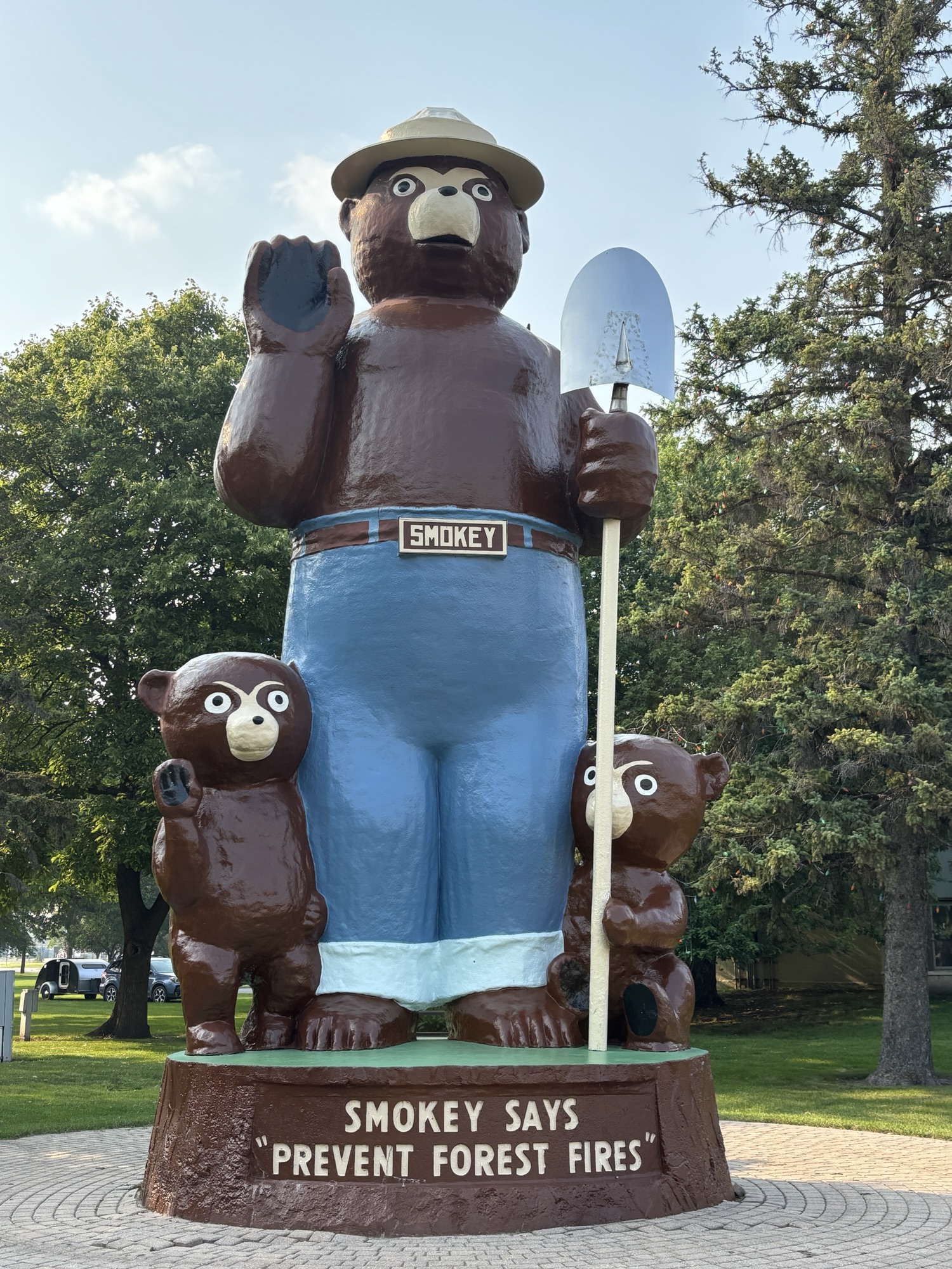 We headed out to Rainy Lake Visitor Center of the Voyageurs National Park and got my National Parks passport stamped. We took a short walk to stretch our legs. We actually had to use our bug head nets, which was one of the reasons it was a short walk! Then a quick stop to see the Voyageur statue. It turns out there was quite a controversy over the creation of the National Park and some of those that were against it had a giant statue built and placed on some of the land that was in question as part of their protest. And then the last stop for the day was at Smokey the Bear Park in downtown.