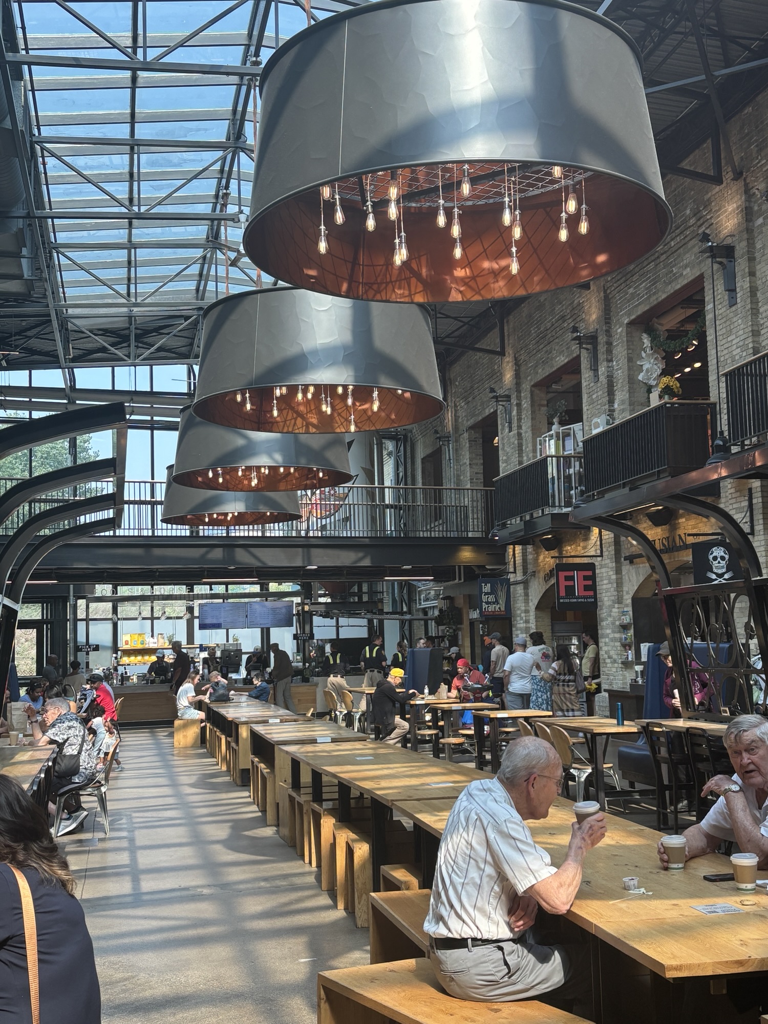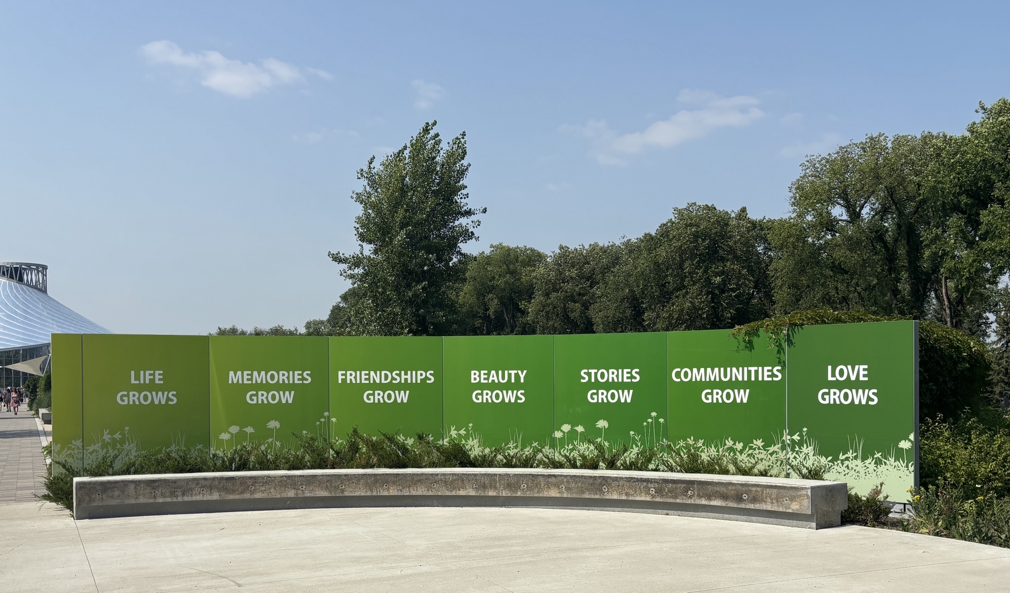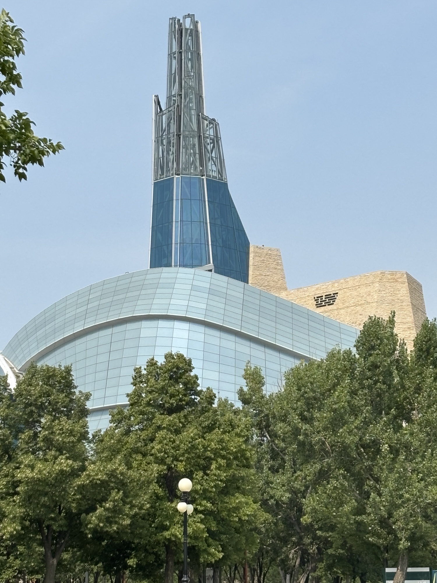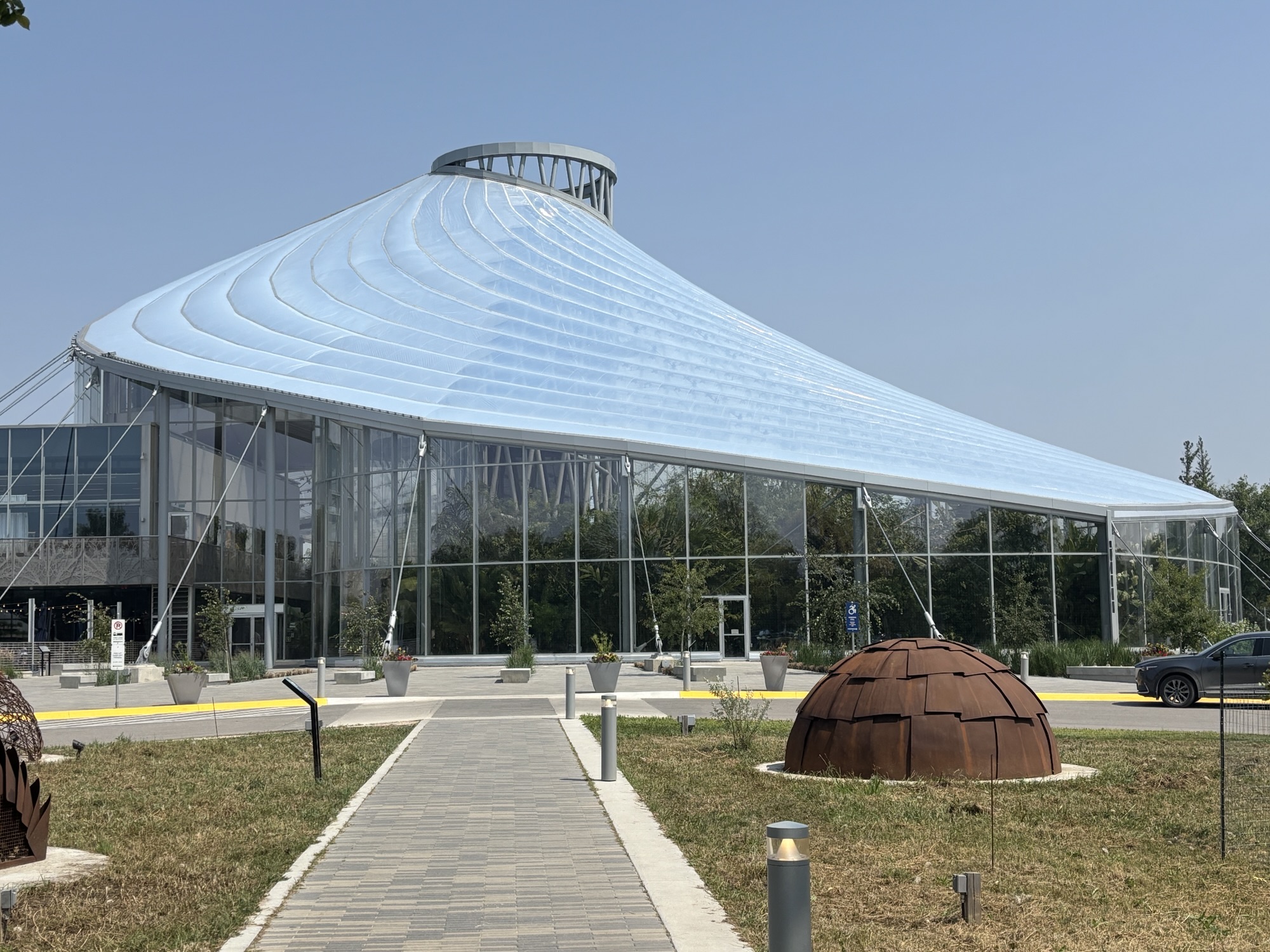 Then we headed to the Forks downtown. This is a Canadian National Park area downtown where the two rivers come together. The Assiniboine and the Red Rivers. This forms the Fork. It is a market and nice walking area that has some interesting displays like the Oodena Celebration Circle. It is described as a “naked eye observatory” which is a series of structures that have star sighting features that pinpoint stars in certain constellations at specific times of the year. And highlights their significance to the region’s history. There is the Canadian Museum for Human Rights which we did not have time to visit, but the architecture was fascinating.