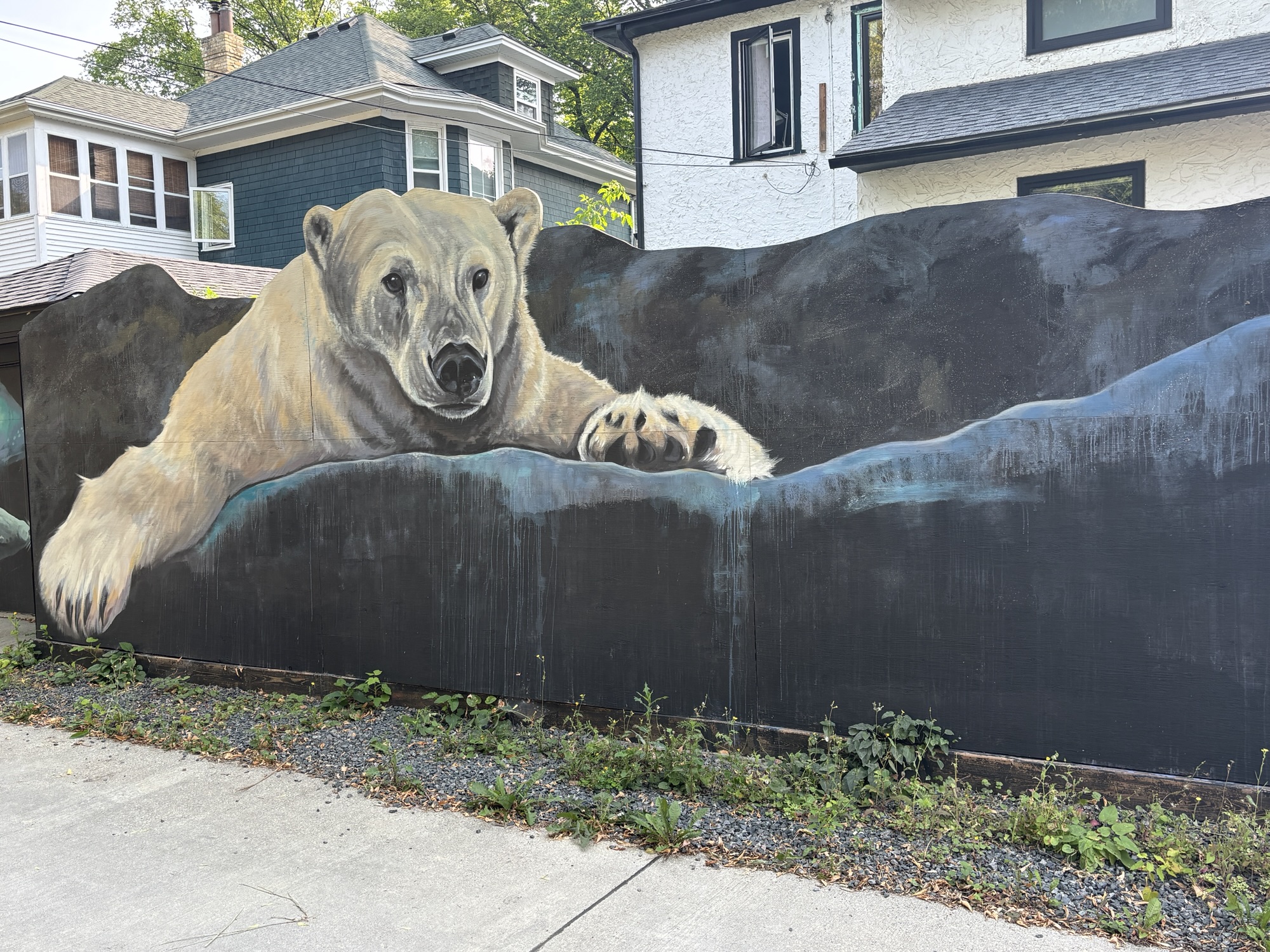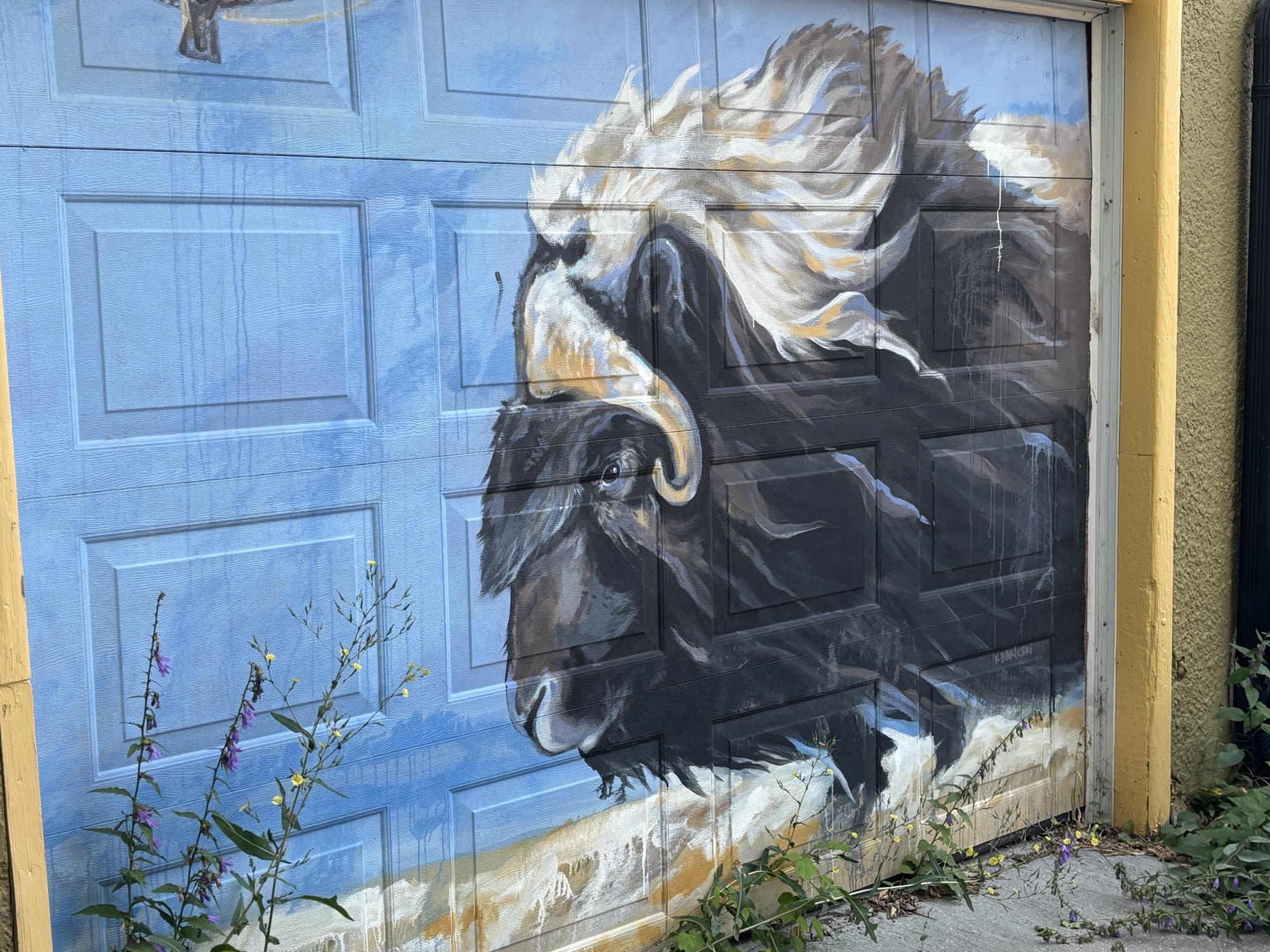 Our plans for the next day were the Mint and the Forks! But first Gail wanted to find the “Back Alley Arctic” painted alley way in the older part of downtown. Local artists had painted arctic scenes and animals on the garage doors on both sides of the alley. Most were by Kal Barteski and we were both impressed by her work. Just finding it was a bit of a lucky turn as Gail saw a small polar bear painted on one corner of the alley fence. We took a chance, turned and there it was. And we were glad to find it. A hidden gem!