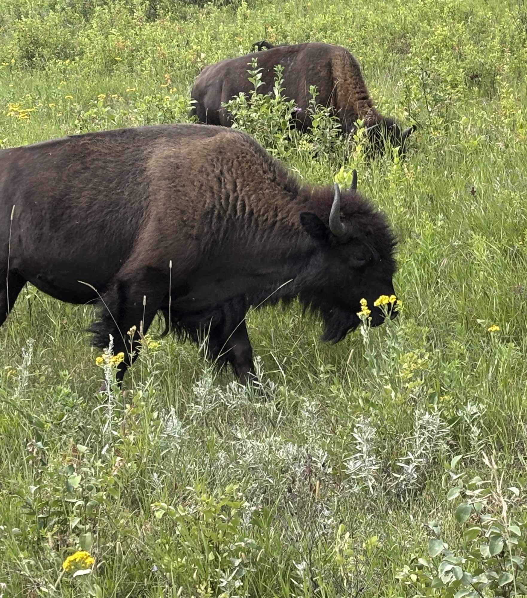 But the signage to find the campground was confusing and it was very busy so there was about a 30 minute wait once we got in line to enter the campground! We were only there one night but took the time to go see the Buffalo enclosure and did get to see several before they scooted off into the trees. And we went for a walk in the village along the lake. A busy national park.