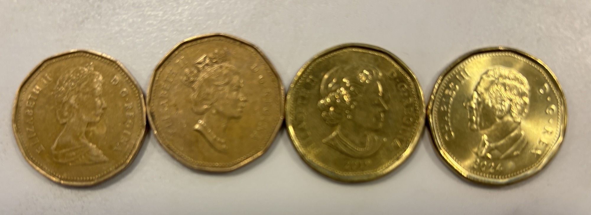 There were so many stories and facts about the shape, the materials, the features, and the images. There is not enough space to mention them all here. Three of the most interesting facts are that 1) due to her longevity, there were 4 different images of Queen Elizabeth as she matured used on Canadian coins. 2) the image on the new King Charles does not show him with a crown as is traditional. He chose this to honor his mother and his grandfather, King George VI, who was actually the first to not have a crown in his coin. And 3) Each new monarch faces the opposite direction from the previous one. (We have Loonies with 3 of the Queen Elizabeth images and 1 of King Charles.)
