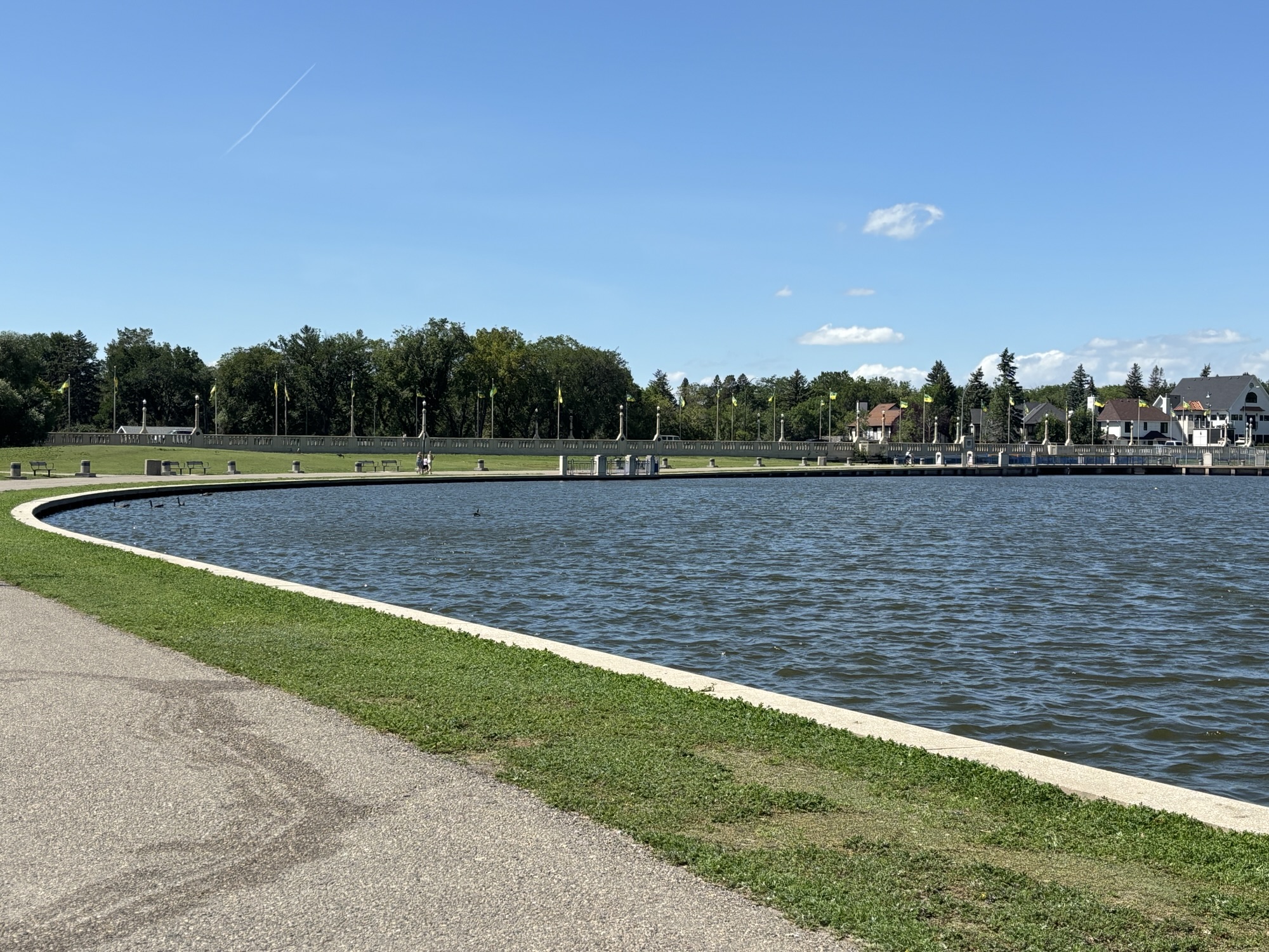 There is a Queen Victoria Garden in front, and it is between the legislative building and Wascana Lake. It is part of Wascana Center – over 2200 acre park. It is one of the largest municipal parks in the world (almost 3 times the size of Central Park in NYC). We walked through the park and had lunch at the Bar Willow Eatery on the Lake. A really beautiful scene.