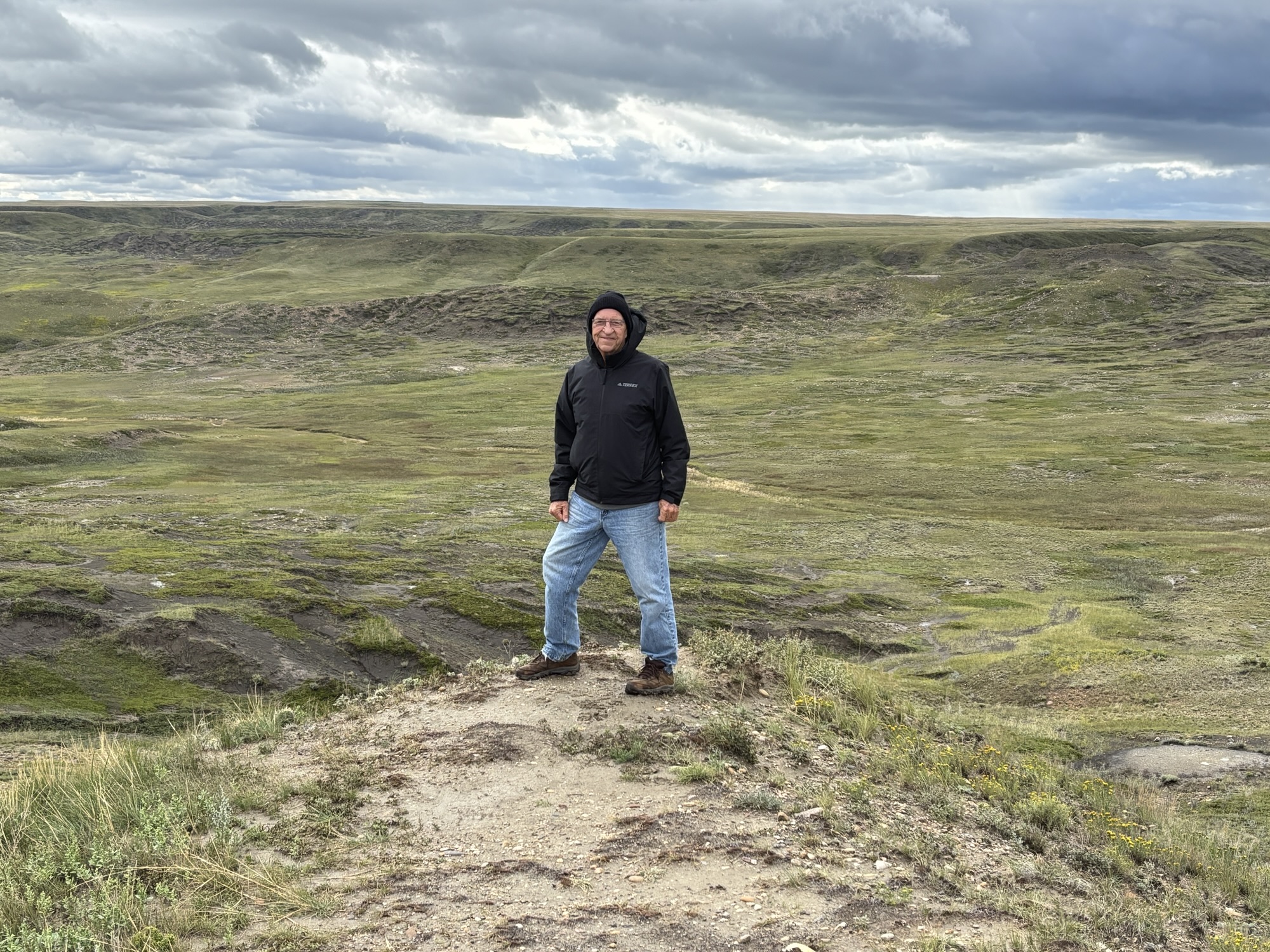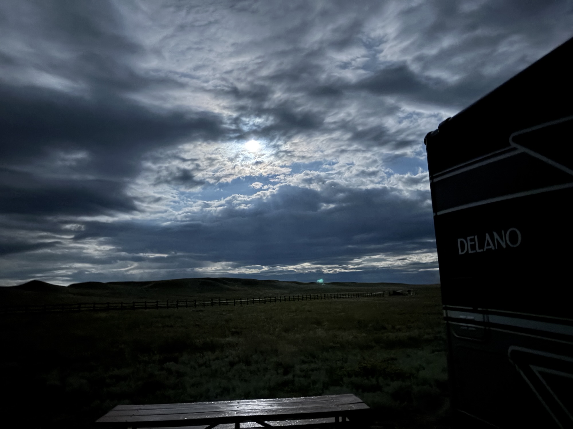 The next day we drove due south to Grasslands National Park on the border with Montana. I had hoped for a dark night with clear skies ever since I made the reservation. As you might imagine there is not much light around the park to affect the stars. But we had a cloudy night with almost a full moon to boot! Not good for stargazing but still a cool place to stay.