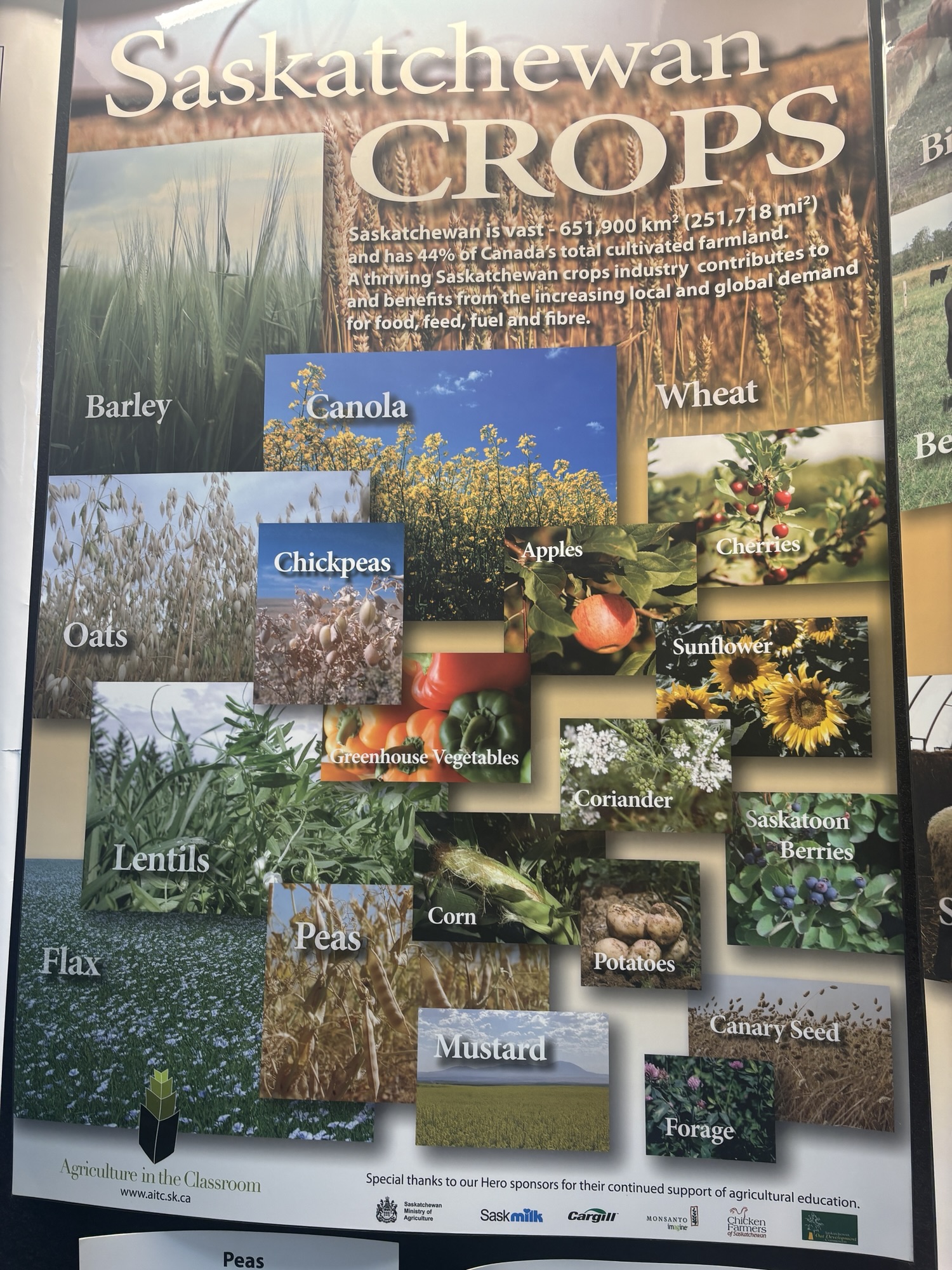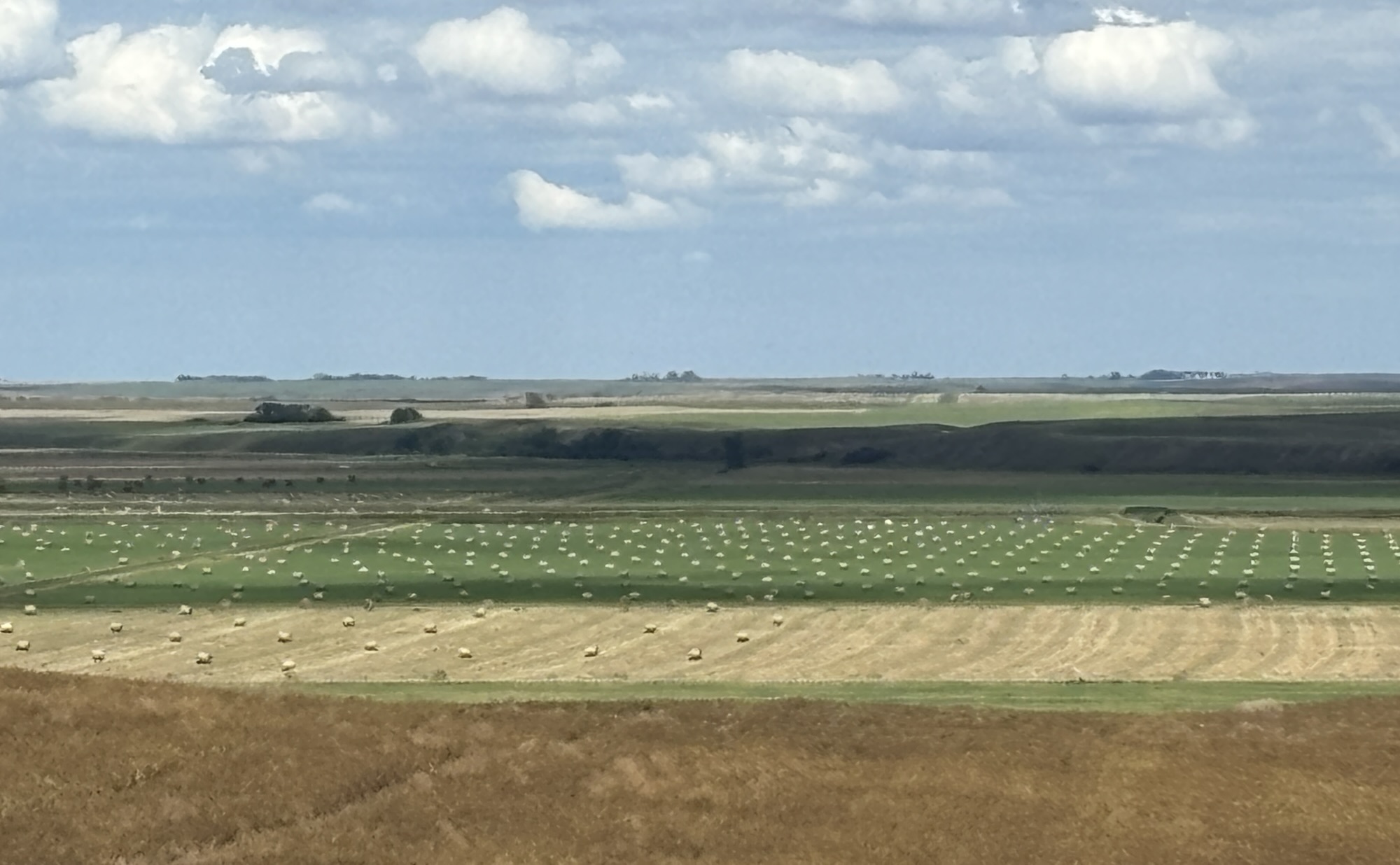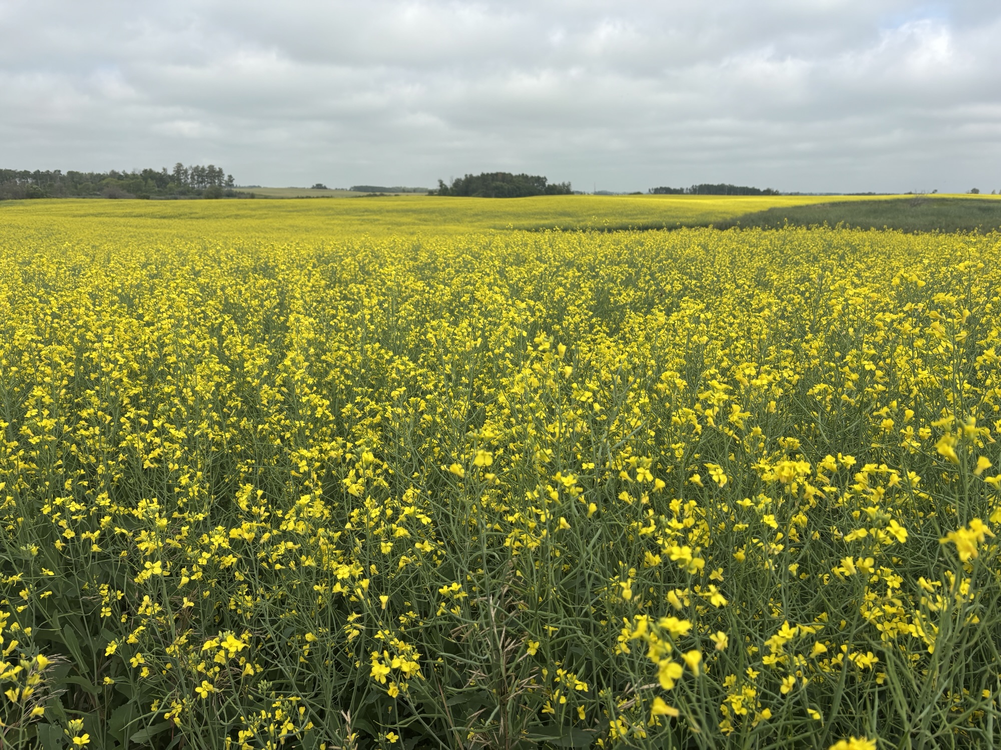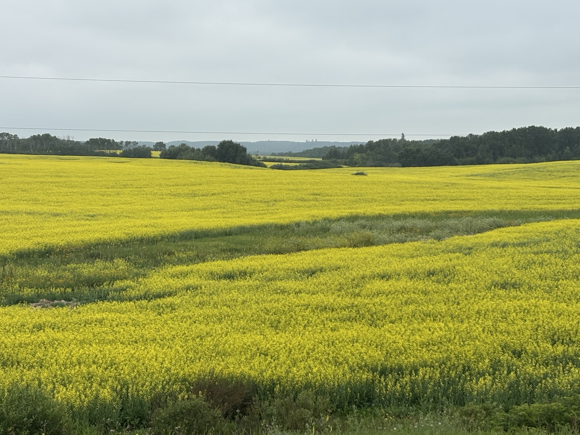 From Riding Mountain, we had one of our longest drives of the trip through the remaining western part of Manitoba and into Saskatchewan. There were straight stretches of highway and continuous fields (and I mean continuous!) of farming on both sides the highway and as far as the horizon! We didn’t know what was growing but were curious enough to do some googling and had a very interesting discovery.