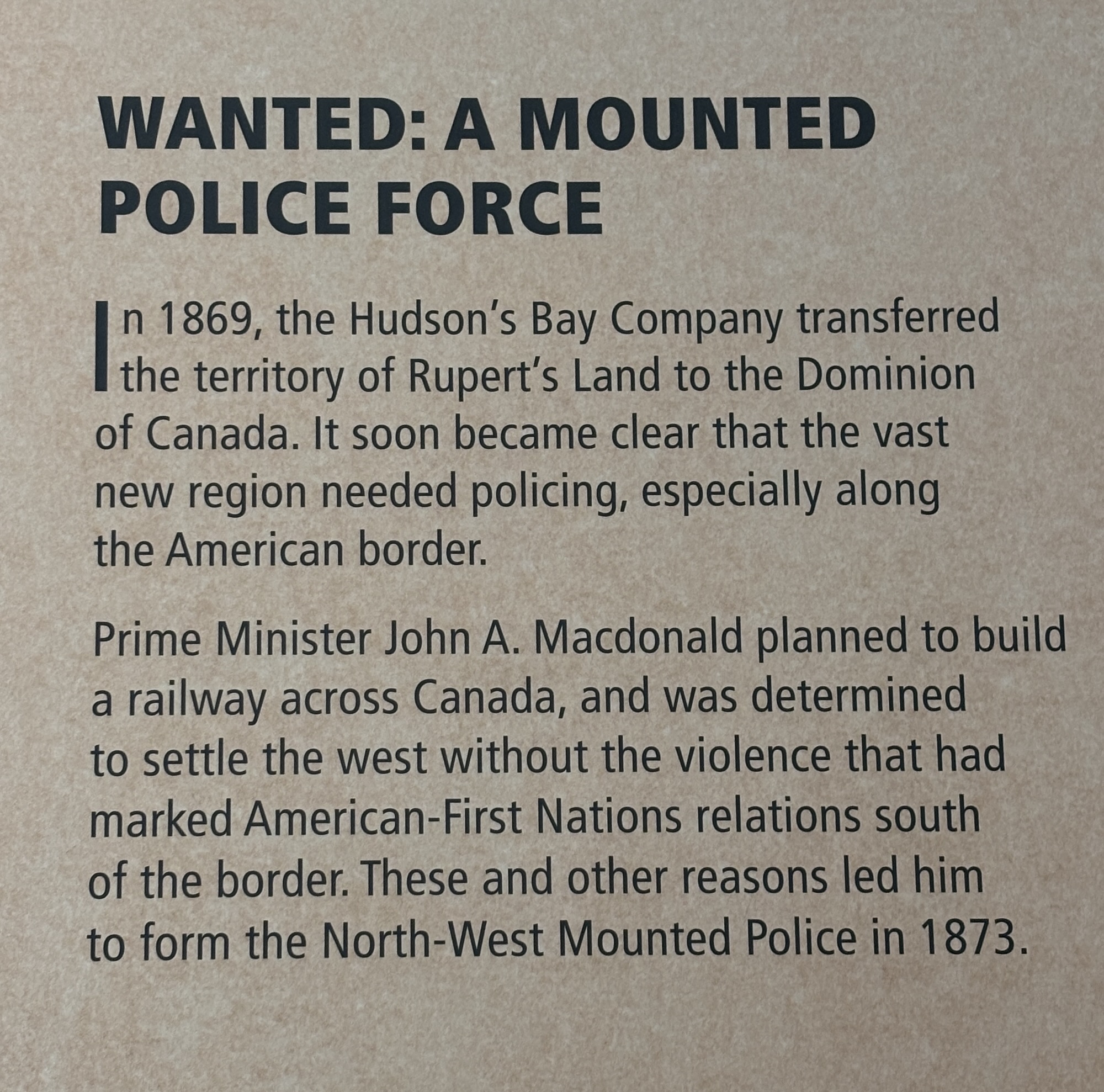 The Royal Canadian Mounted Police (RMPC) began in the Northwest Territories of Canada as the Northwest Mounted Police. The museum tells their story from their beginning in 1873 through to the current day. They have over 20,000 officers throughout Canada and all of them go through a 6-month training at the facility in Regina. Larger municipalities have their local police, but in addition to being the national police force, the RCMP also act as the local police in many remote areas.