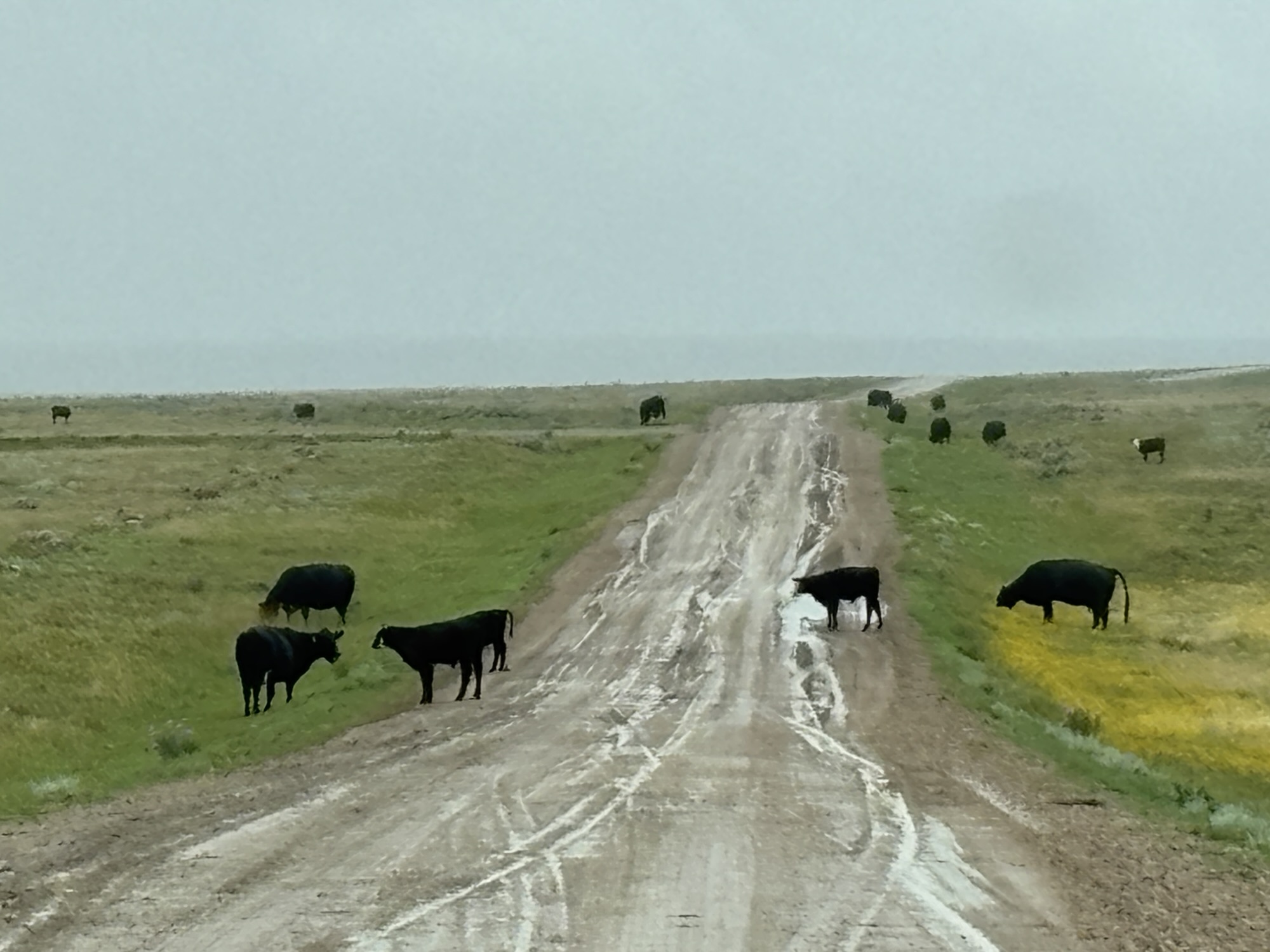 That evening we stumbled on a talk given by one of the park rangers. She discussed more about the Bison and other animals in the park. The Bison are critical to the grasslands as the grass needs to be grazed so it regrows. One reason we may not have seen any bison, is that they have had more rain than usual and the Bison have not had to move down toward the road from the more protected areas. There are also cattle used in the park to graze the land. As we were entering the park we ran into a few!