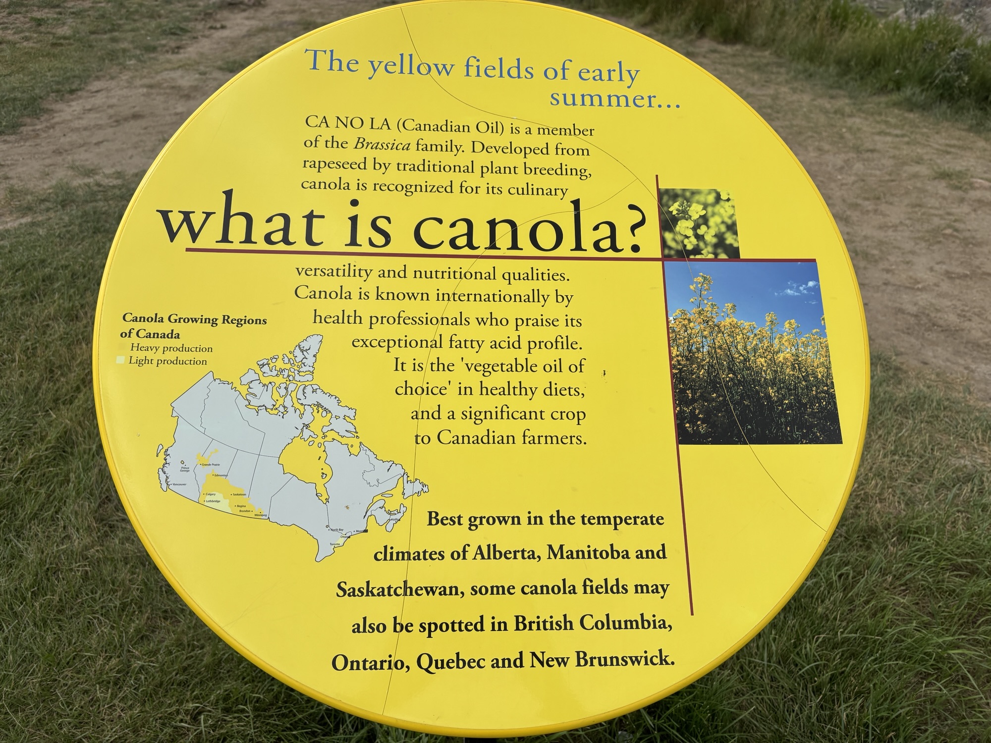 Interestingly, we learned that canola is the source of Canola Oil that we know today and comes from a strain of rapeseed that was bred specially to be healthier for cooking. It was developed as a purely Canadian product when the rapeseed market (which had primarily been used for lubricating oils) softened after World War II. The common word we use today is a combination of “Can-o-la” and stands for “Canadian oil, low acid”. It’s a very interesting story. And we would see these fields for miles on into Alberta intermixed with other crops!