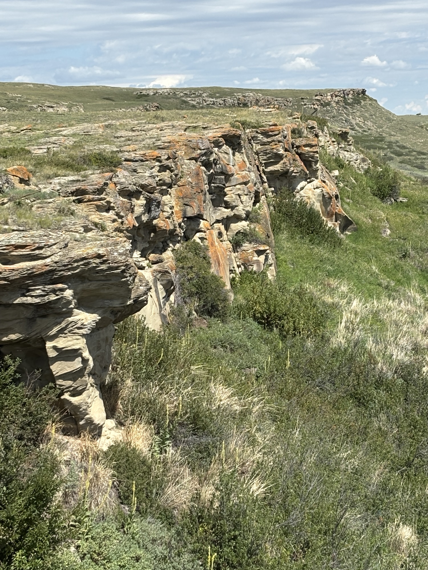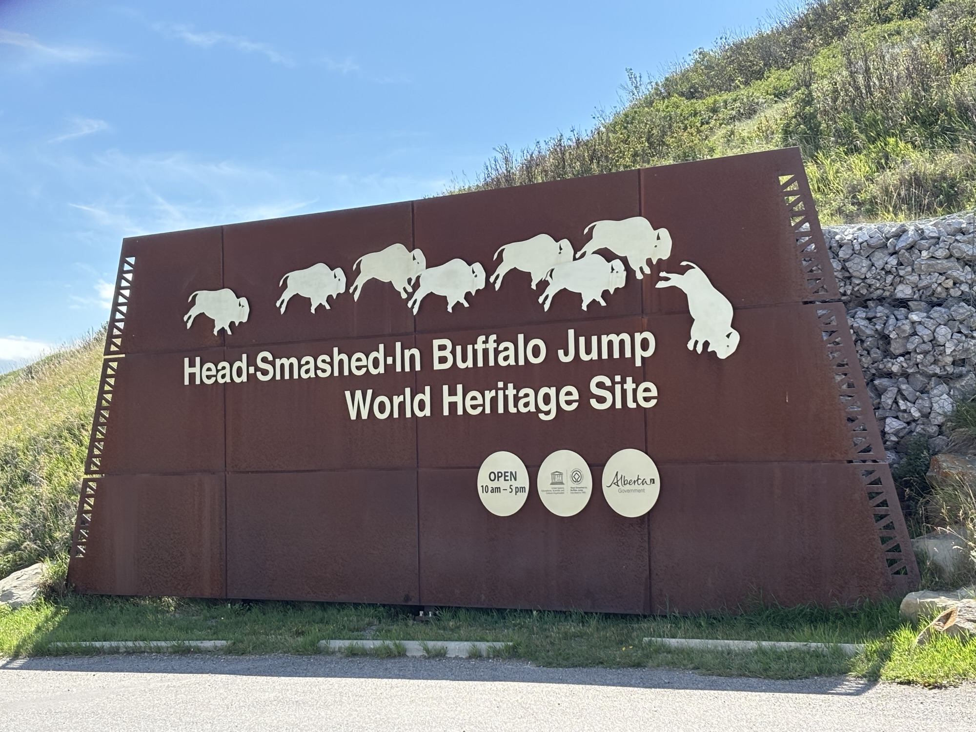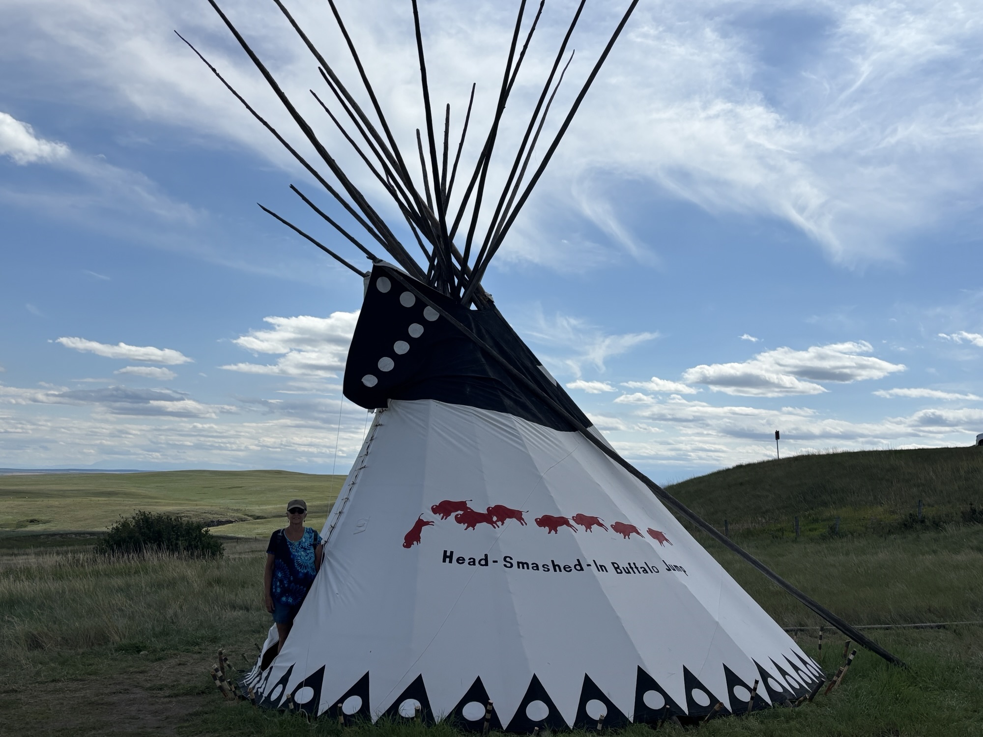 The stop in Lethbridge was to visit the Head-Smashed-In Buffalo Jump, another UNESCO site. The center tells the story of how the indigenous people used the site for communal bison hunts. Archaeologists have found evidence of hunts beginning 6000 years ago making this site one of the oldest, largest and best preserved buffalo jumps in North America. Before horses and guns, the indigenous people herded buffalo off a cliff, and the results provided them with both meat and hides for the winters. They also used the bones to make tools, beads, etc. The Interpretive Center does an excellent job of telling the story and there is a short walk through the area also.