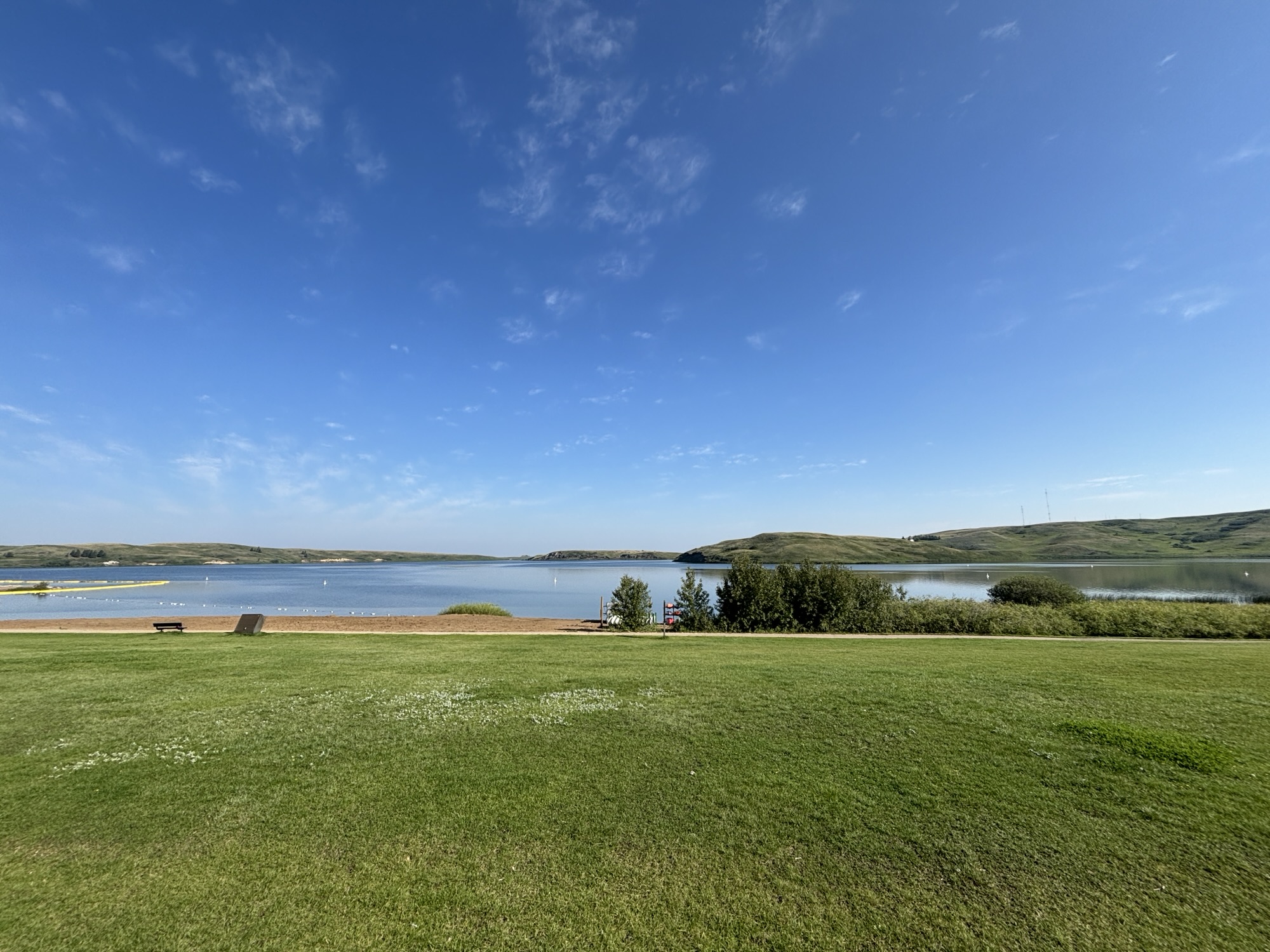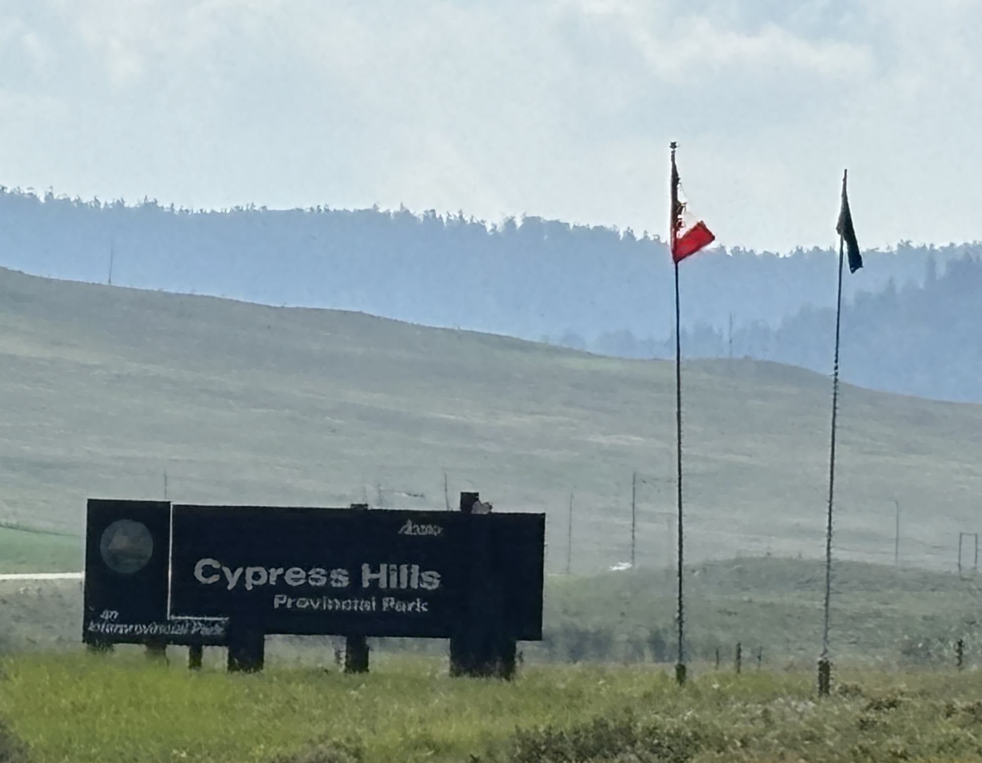 Our destination was Cypress Hill Interprovincial Park in Alberta. This is an interesting park because it crosses the two provinces. As the girl at the park office said, we are like stepchildren who don’t talk to each other. We got to the park, but the signage was very confusing and there were about 10 different campgrounds and RV parking areas. We got turned around, missed the turn, and had to back track. We even called the office and got directions and were still confused. But we finally found our spot and relaxed. It was in a nice area and had full hooks again. But the Jeep had a dead battery, and our portable battery backup came in handy again. Lesson learned, she has added checking the lights to her checklist when she puts the Jeep in neutral to get it ready to tow!
