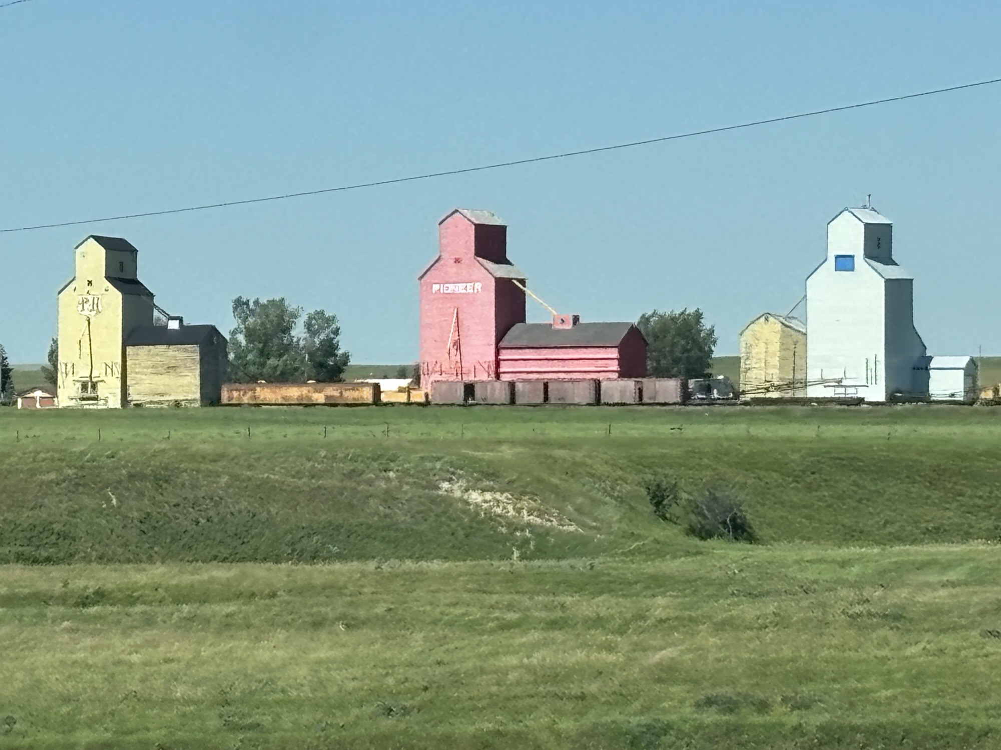 Leaving Grasslands, there was one very steep hill that I wasn’t sure I could make towing the Jeep especially with the road still very muddy and slick! So, Gail followed me in the Jeep, and even though it got a bit iffy a couple of times the RV did great! We made it back to the visitor center in Val Marie and hooked up ready to head west again.