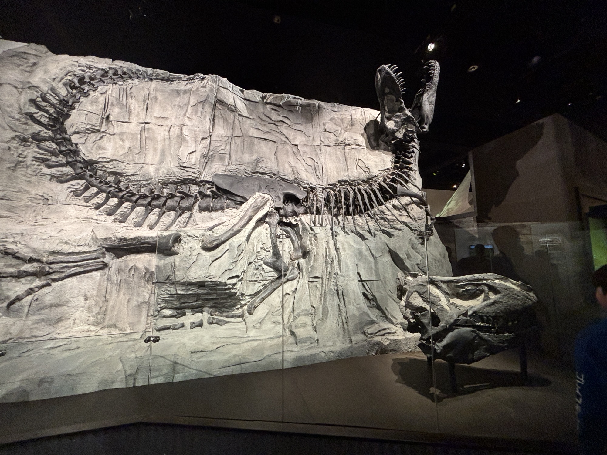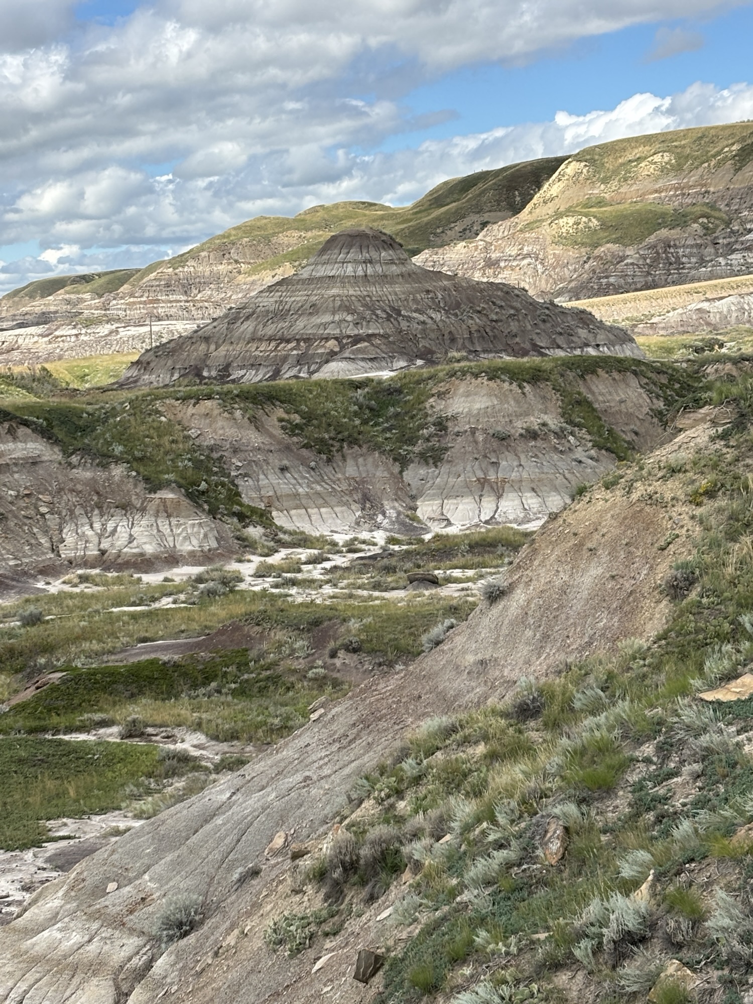 The next day was our dinosaur day. The Royal Tyrell Museum is Canada’s only museum dedicated exclusively to the study of ancient life. While it talks about all phases of life on earth, it focuses on the Mesozoic, Triassic and Jurassic eras when dinosaurs were alive. It has one of the world’s largest displays of dinosaurs. Many of the fossils have been found in the nearby area. It is very educational. There is also a short, guided walk with more views of the terrain and more hoodoos.