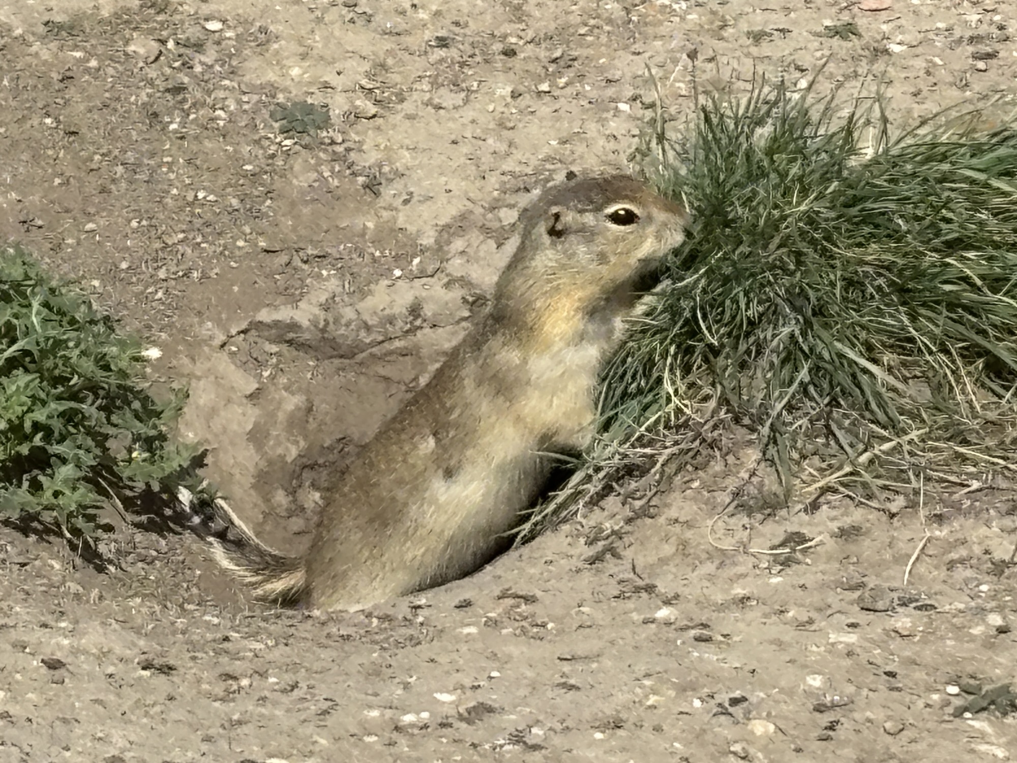 We drove down the road to Horse Thief Canyon. Again, more views and prairie dog holes! Gail tripped in one and fell. Luckily just a few scrapes. She was rewarded with a close-up picture of one of the culprits.