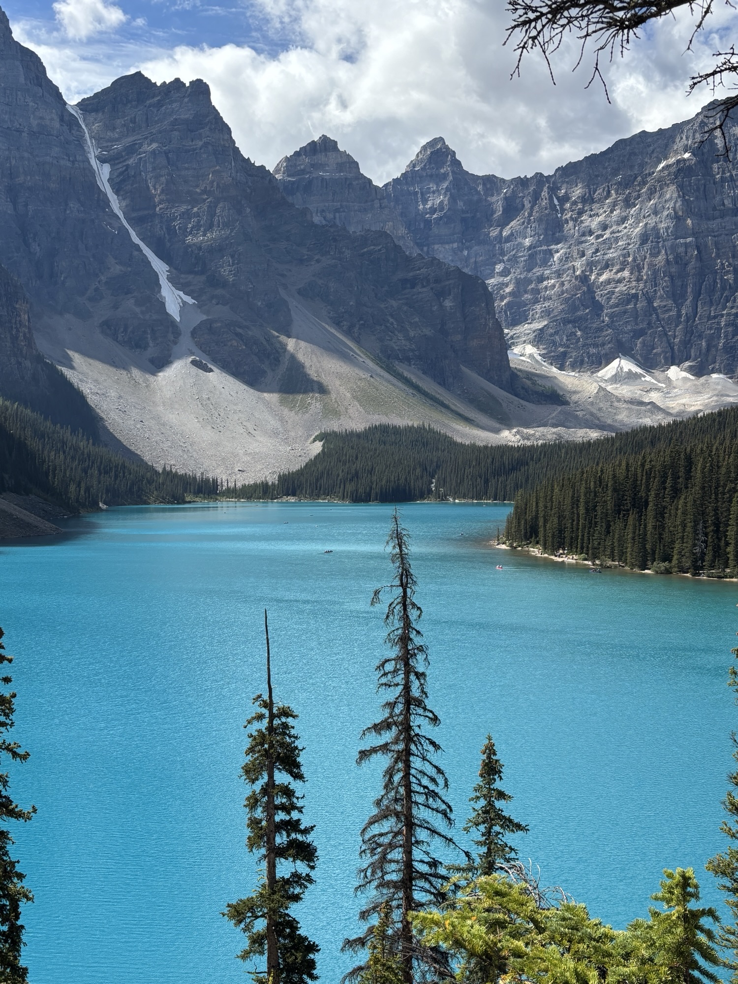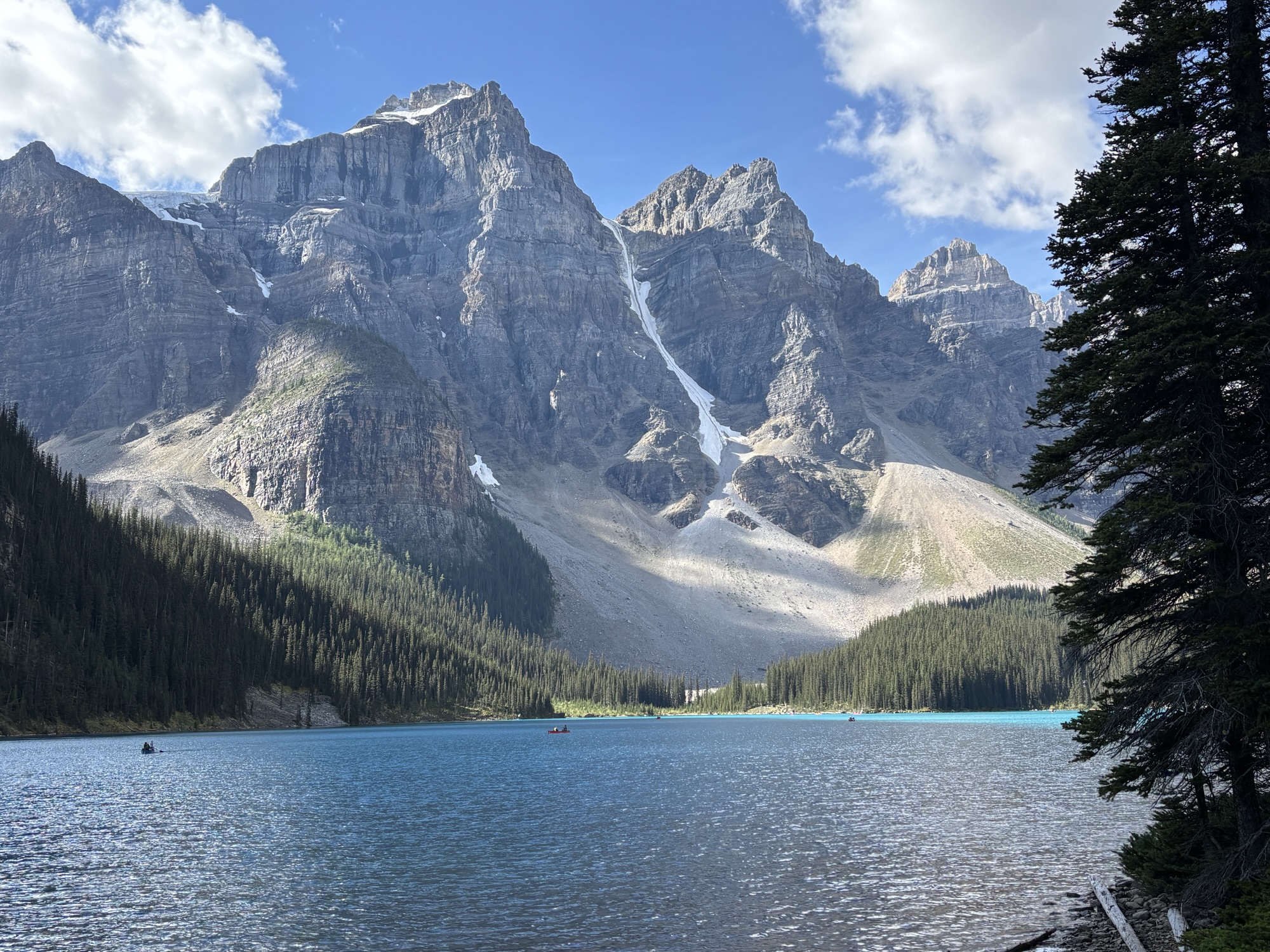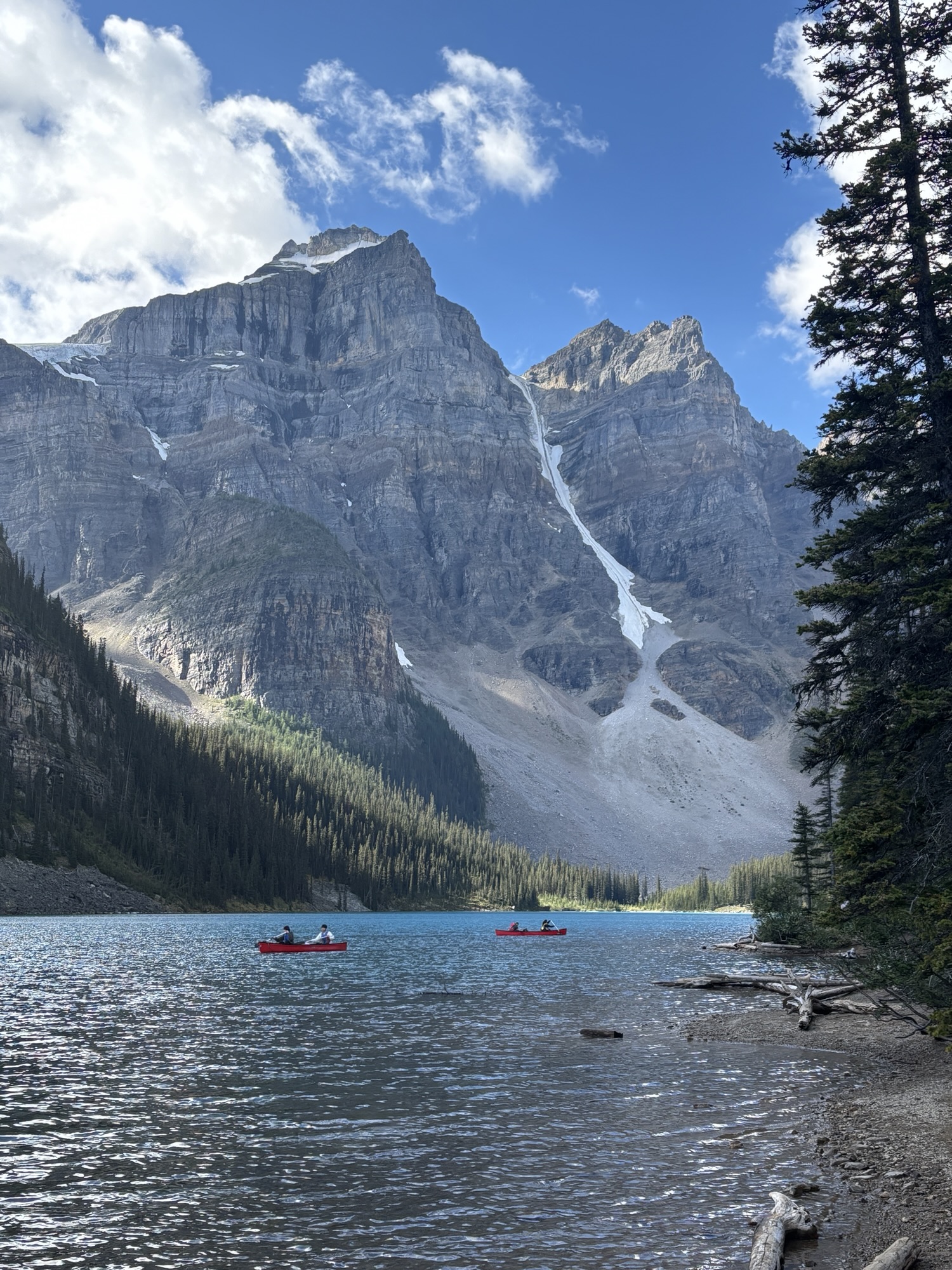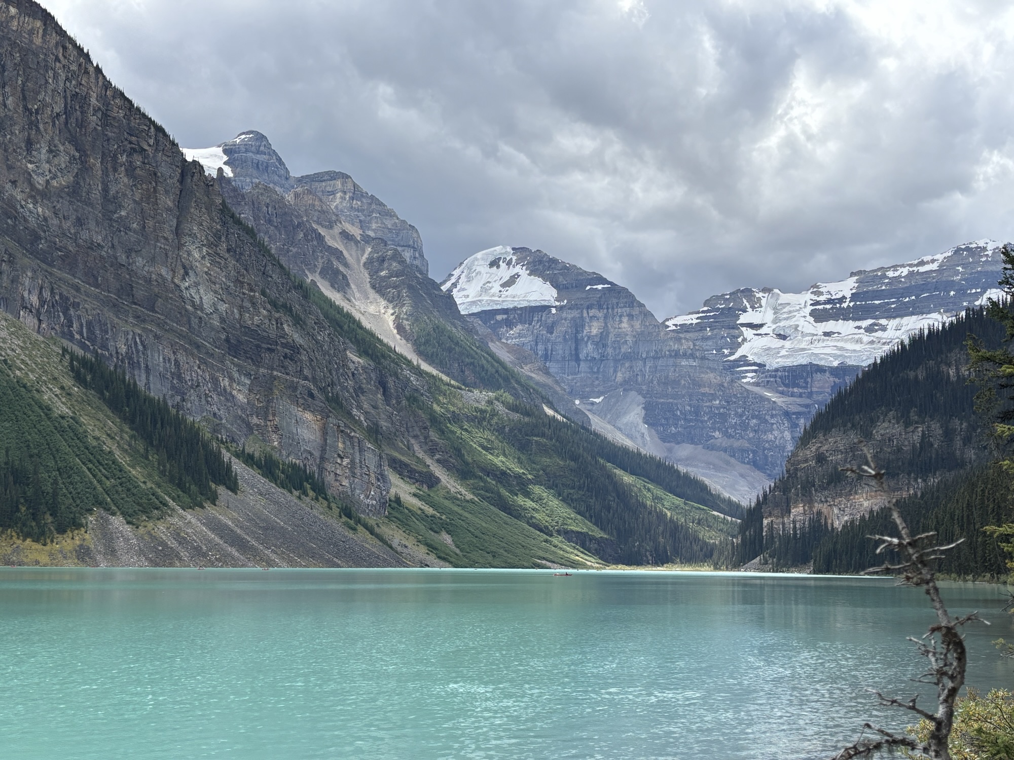 The other main feature at the entrance is the Fairmont Chateau Hotel. But the real attraction of the lake is the color of the water and the majesty of the glacier at the other end! The view is majestic!