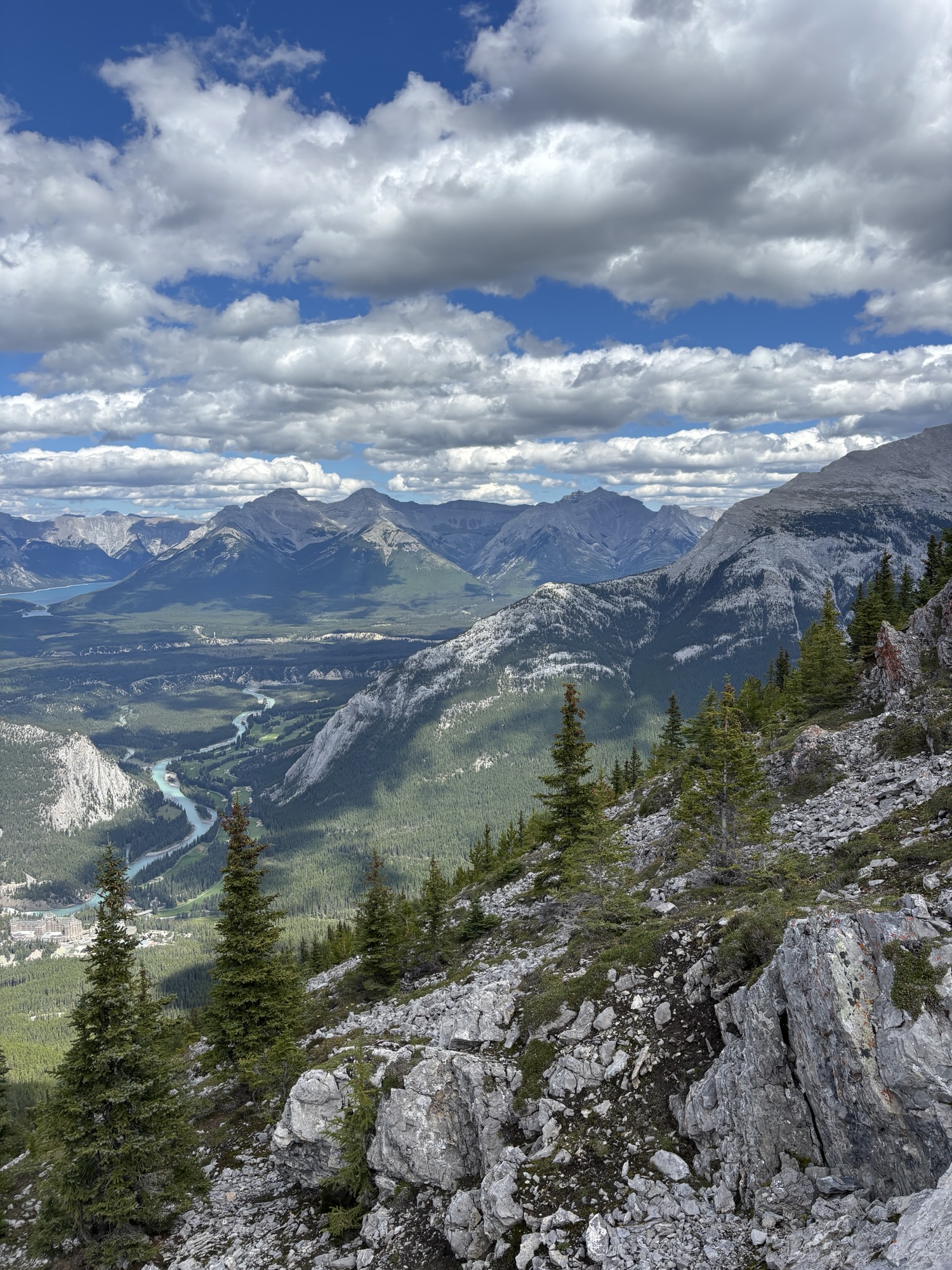 The view at the top includes a panorama deck around the gondola station with 3 levels and with souvenir shops and food courts. It was very crowded! We hiked up a very nice path with some stairs to the summit of the mountain and the weather station at 7510 ft! The weather cooperated and the views were amazing. Or should I repeat myself and say “majestic”! Check out these shots!