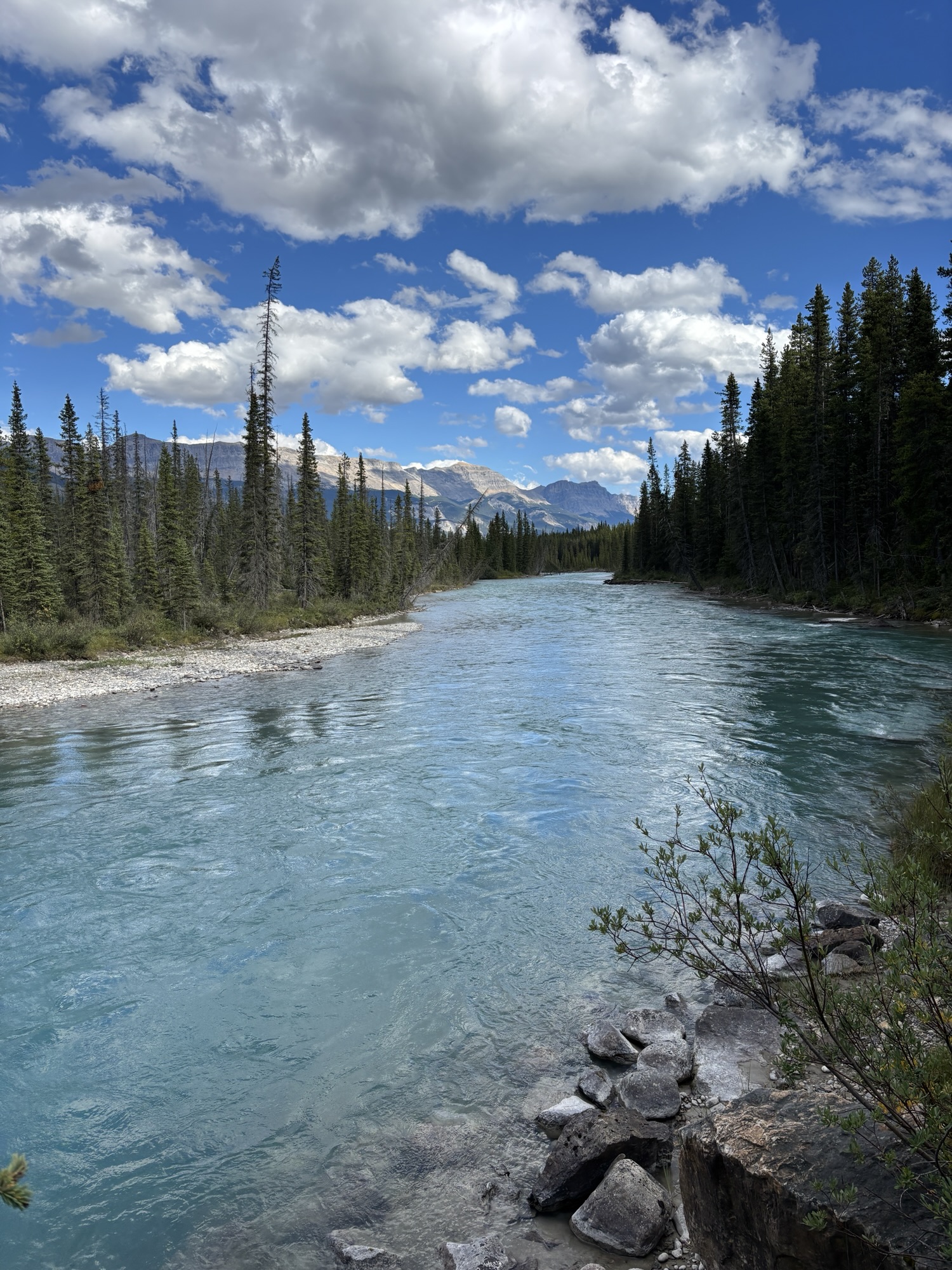 Lake Louise is very small and quiet compared to Banff. We went into the village to find out where the parking lot and the bus pickups were for our tours the next day and checked out a few of the stores. Then back to the RV for a walk along the Bow River to get in our steps for the day. Ready for our excursions to the lakes!